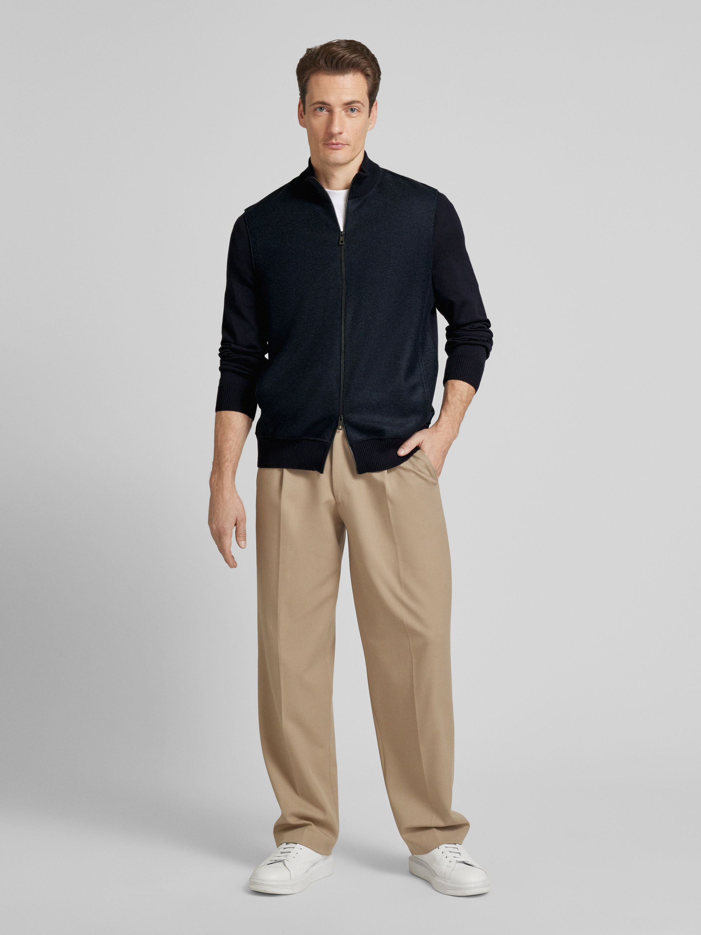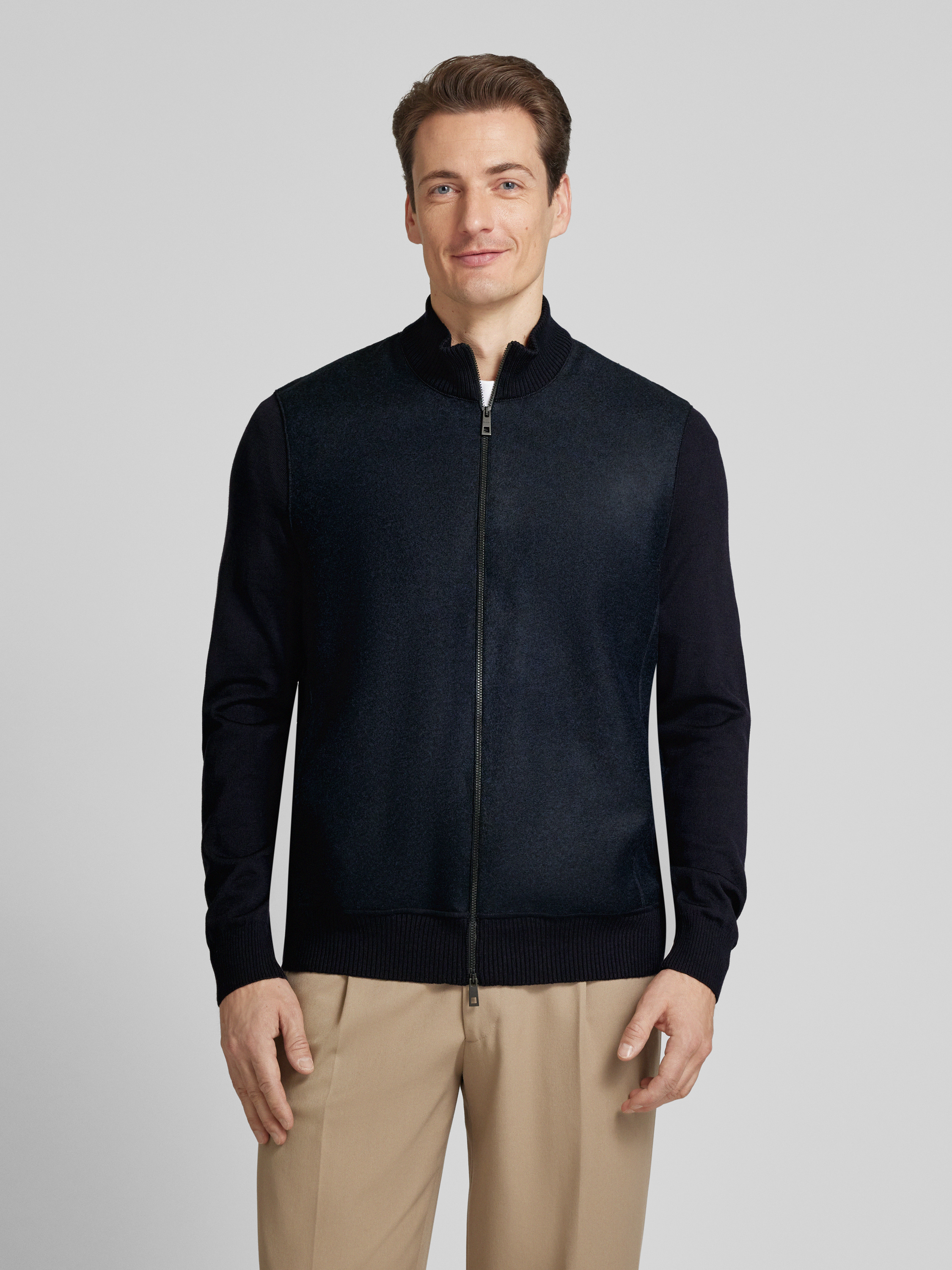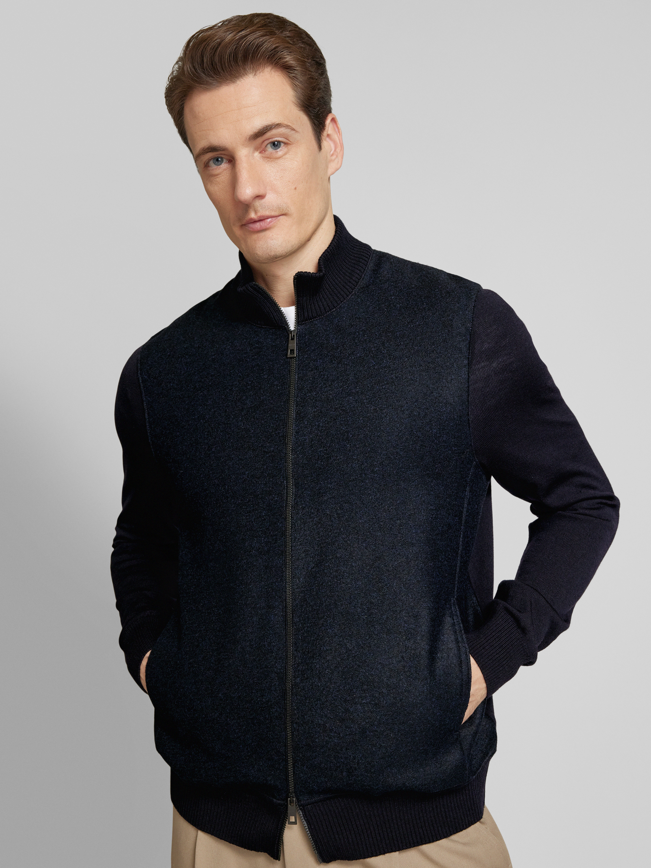 Die Herren Strickjacke von MAERZ Muenchen aus reiner Schurwolle kombiniert Komfort mit zeitlosem Stil. Der gerade Schnitt und der Stehkragen sorgen für eine angenehme Passform, während seitliche Eingrifftaschen praktische Funktionalität bieten. Ideal für kühlere Tage, hält sie wohlig warm.