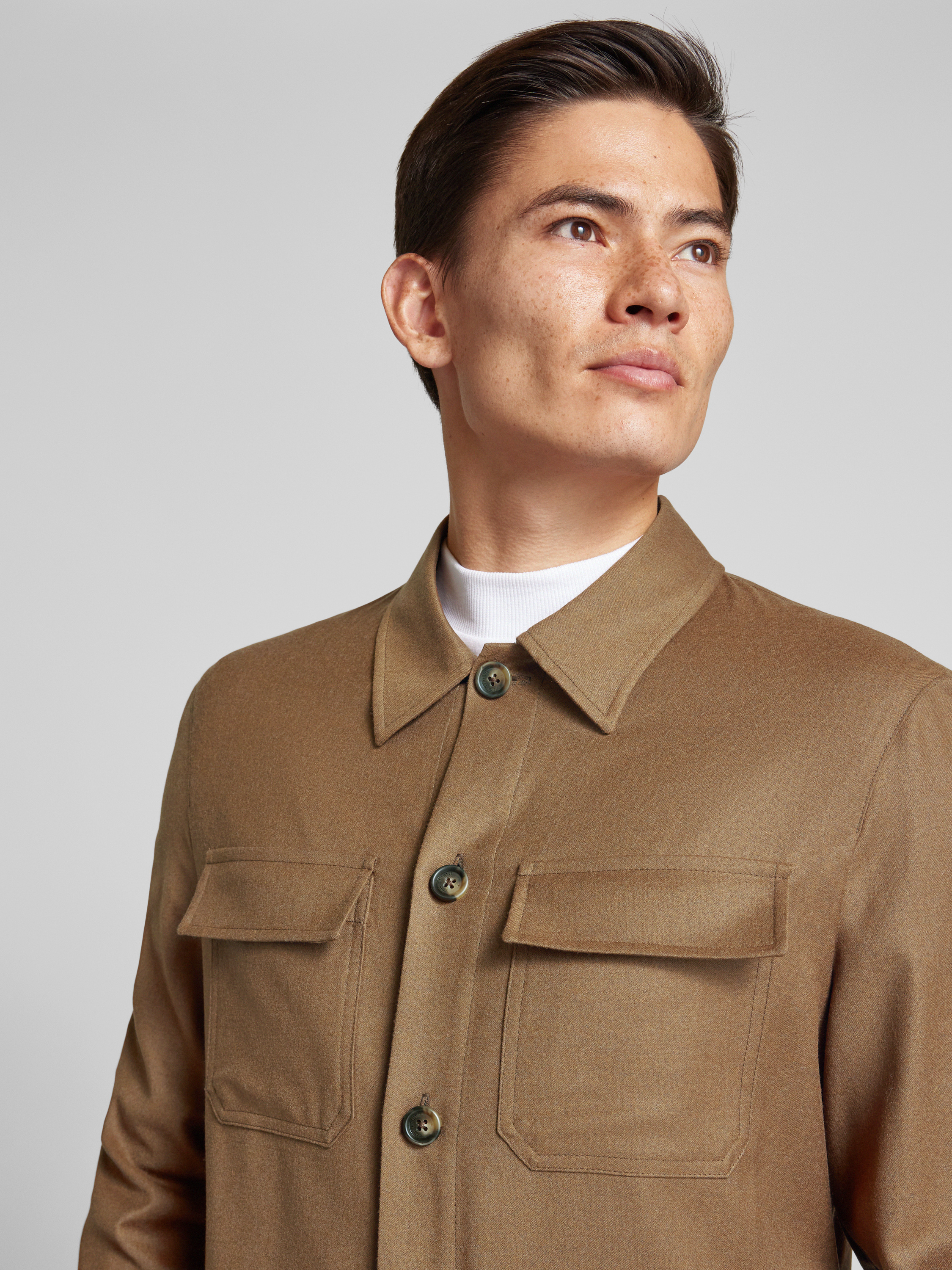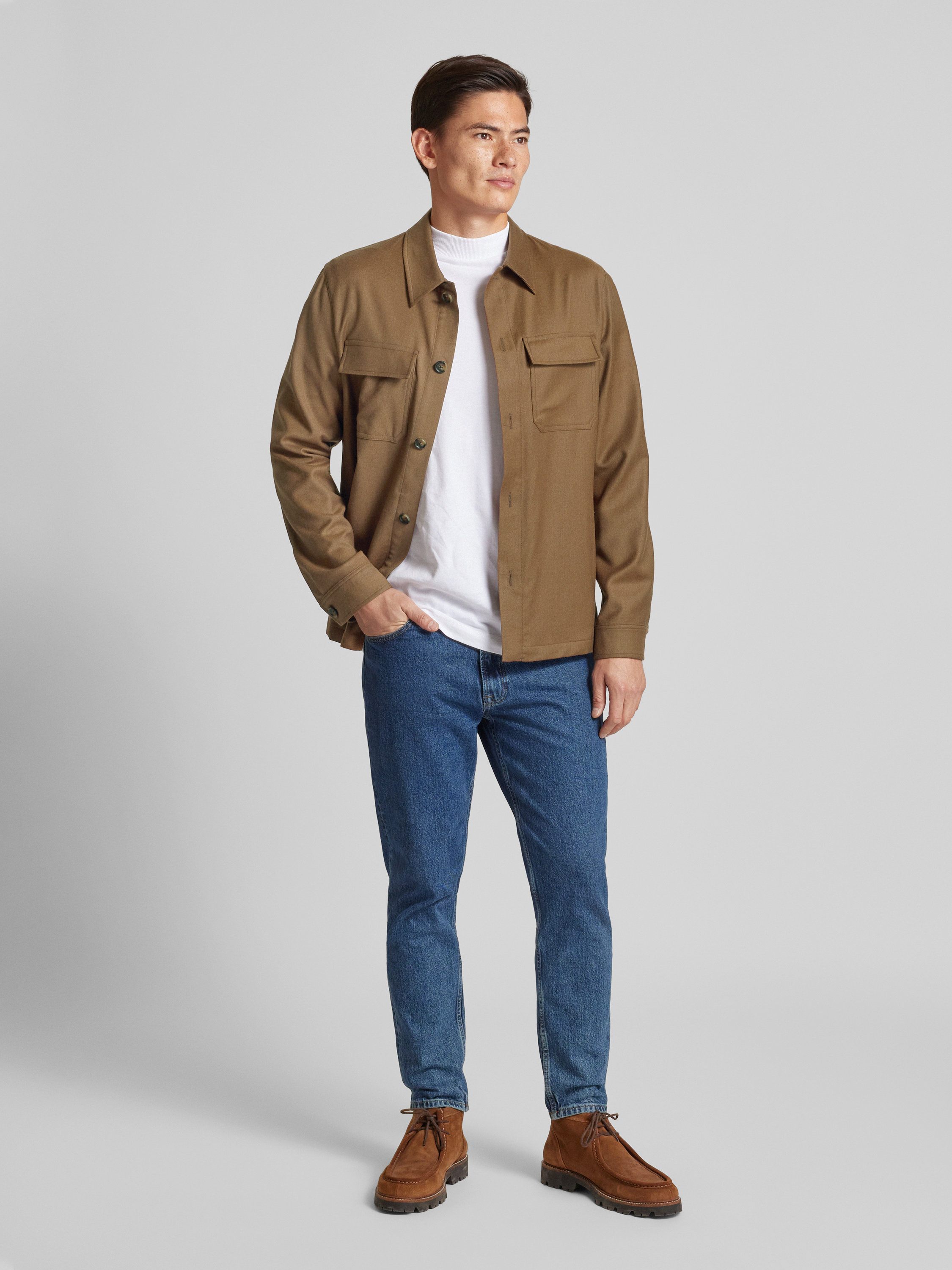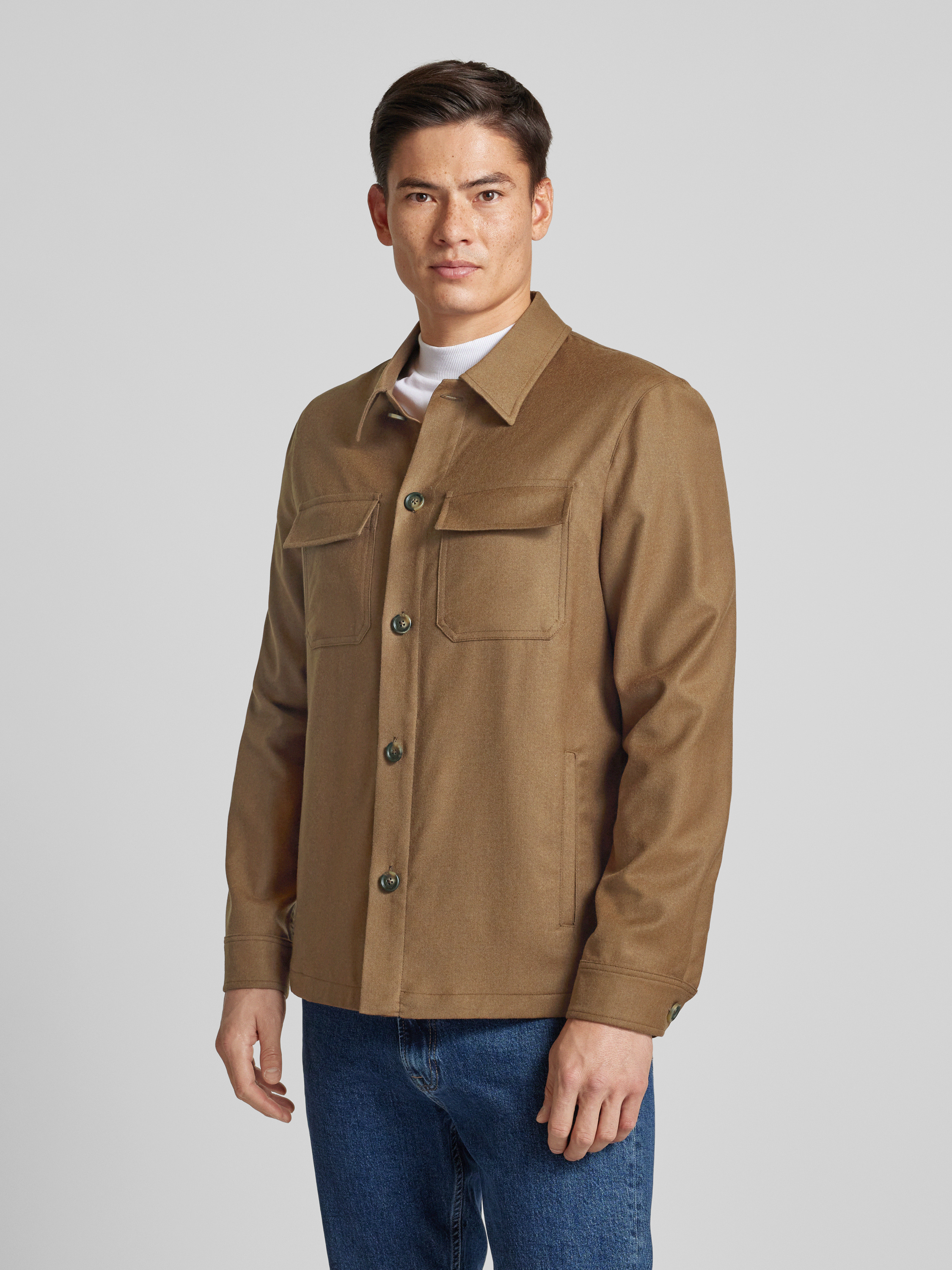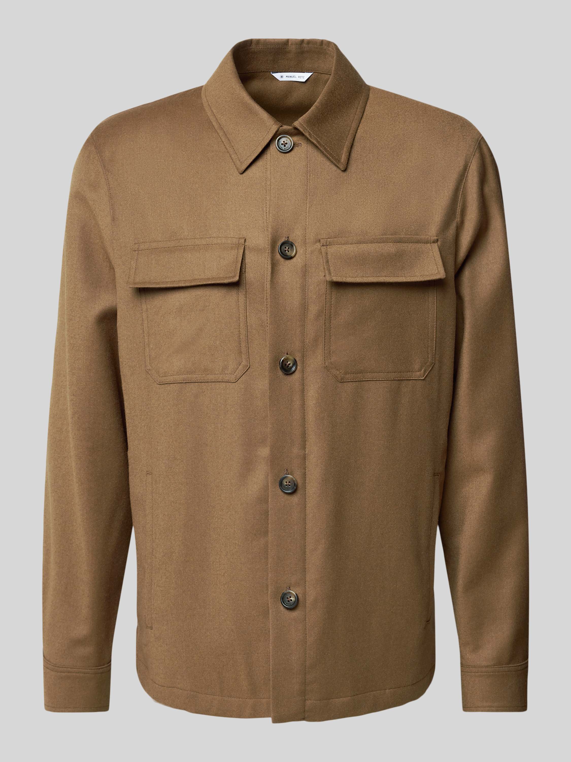 Manuel RitzRegular Fit Hemdjacke aus Schurwolle-Elasthan-Mix in mittelbraun