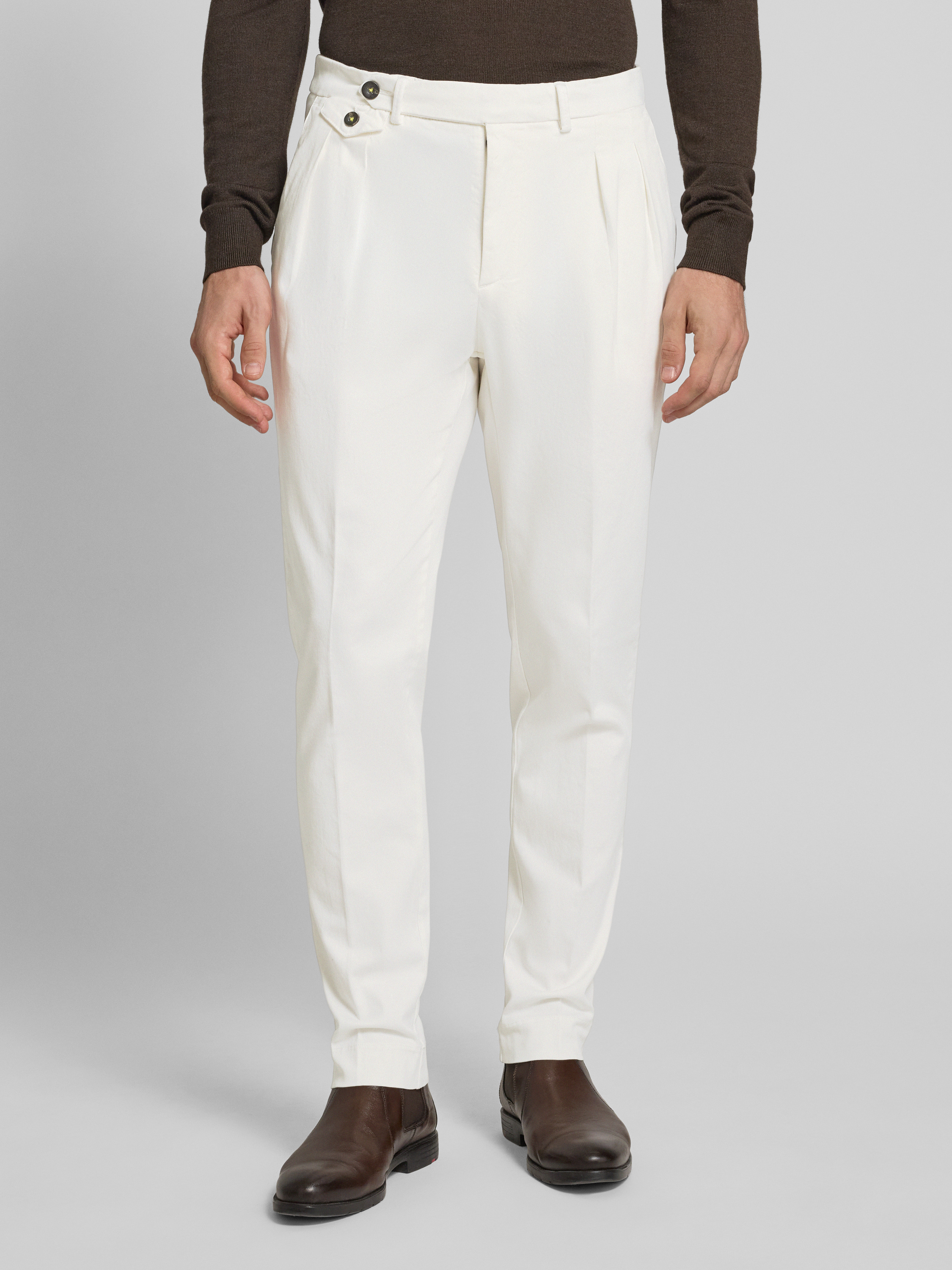 Die Herren Stoffhose von Manuel Ritz zeichnet sich durch einen lockeren Schnitt aus, der Bewegungsfreiheit im Alltag unterstützt. Dank des Baumwoll-Elasthan-Mix bleibt das Material angenehm auf der Haut und sorgt für eine dezente Formstabilität. Bundfalten verleihen dem Modell eine klassische Note und lassen sich vielseitig kombinieren.