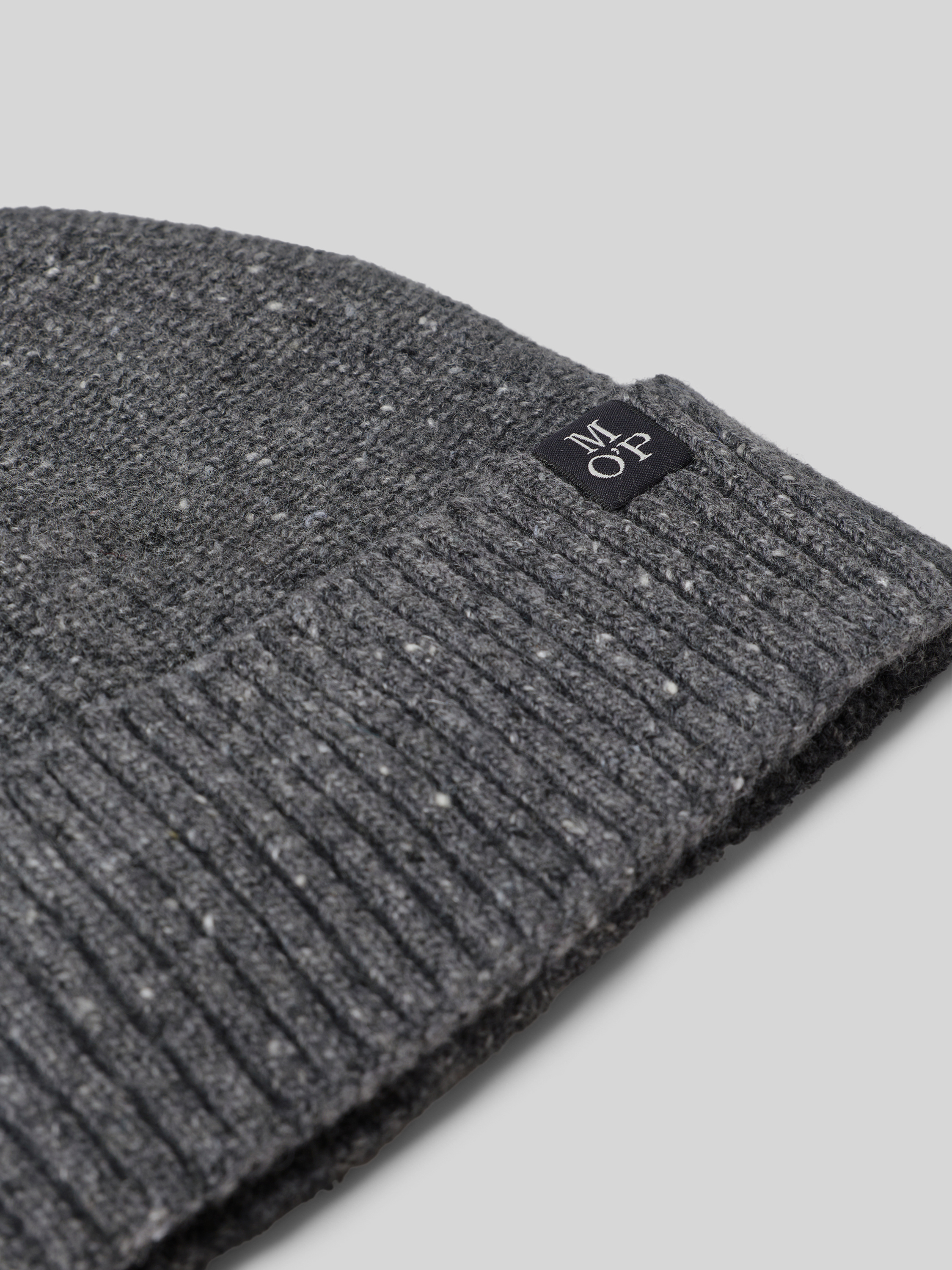 Die Herren Mütze von Marc O’Polo zeigt sich in Melange-Optik und erhält durch den Label-Patch am Umschlag einen dezenten Akzent. Der Woll-Mix sorgt gemeinsam mit dem Rippstrick für ein angenehmes Tragegefühl und hält zuverlässig warm. So eignet sich das Modell für entspannte Spaziergänge an kühlen Tagen.