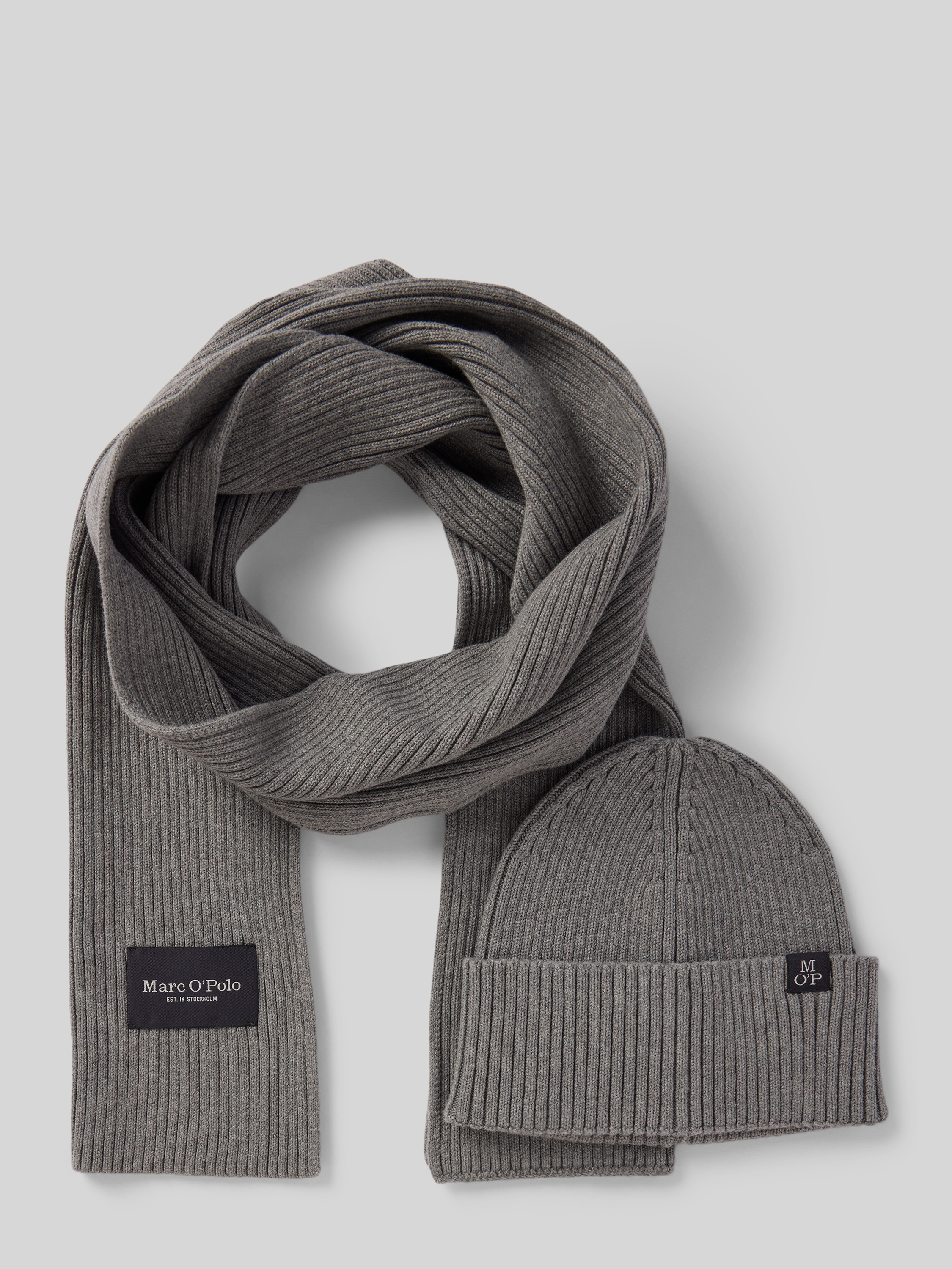 Marc O'PoloMütze und Schal im Set aus reiner Baumwolle in mittelgrau melange