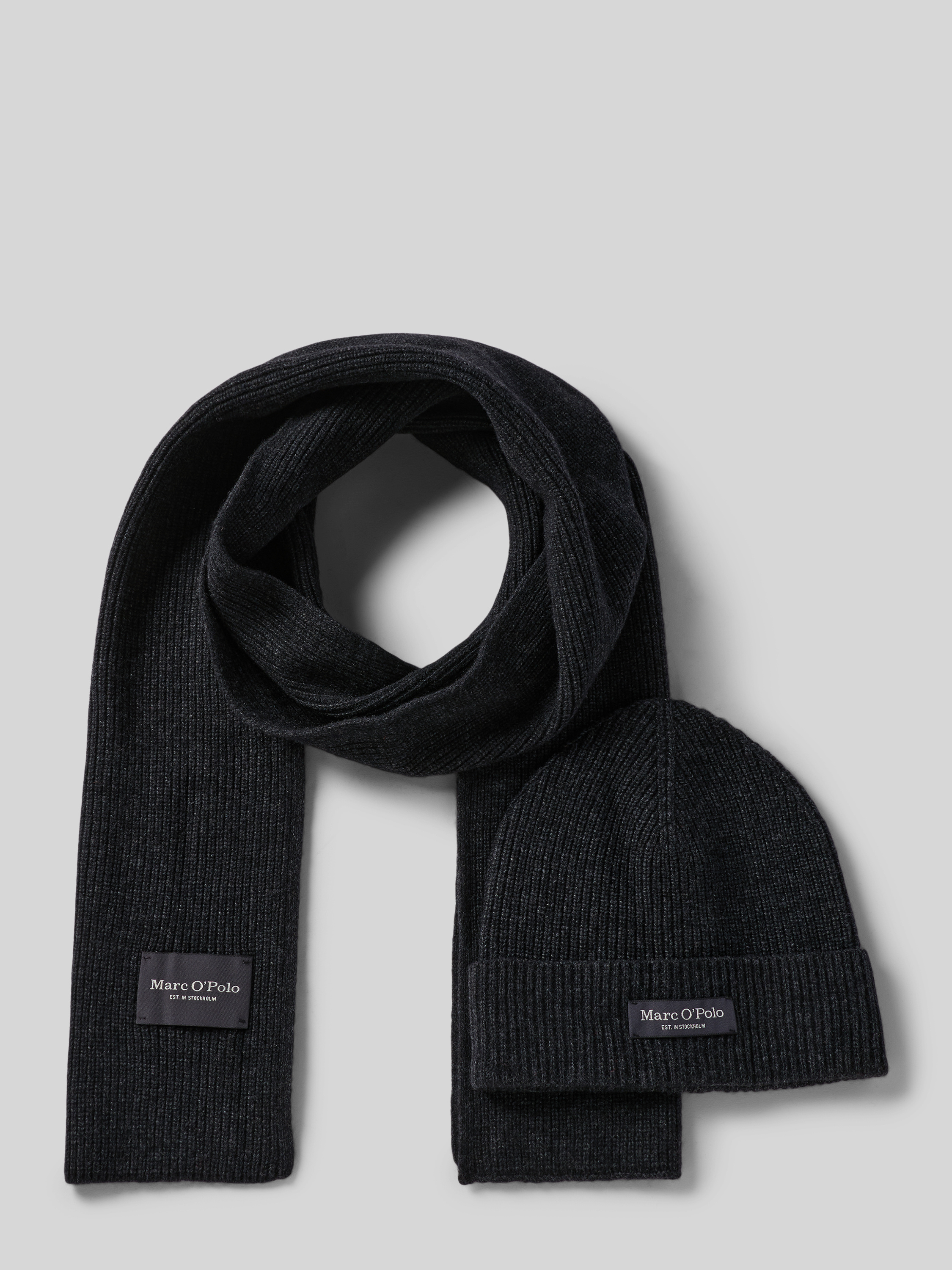 Das Herren Set von Marc O’Polo kombiniert Mütze und Schal in einer melierten Optik, die durch den Label-Patch dezent akzentuiert wird. Der breite Umschlag der Mütze sorgt für angenehmen Sitz, während der Schurwoll-Mix im Rippstrick an kühleren Tagen zuverlässig wärmt. So bleibt man flexibel, wenn sich das Wetter unbeständig zeigt.