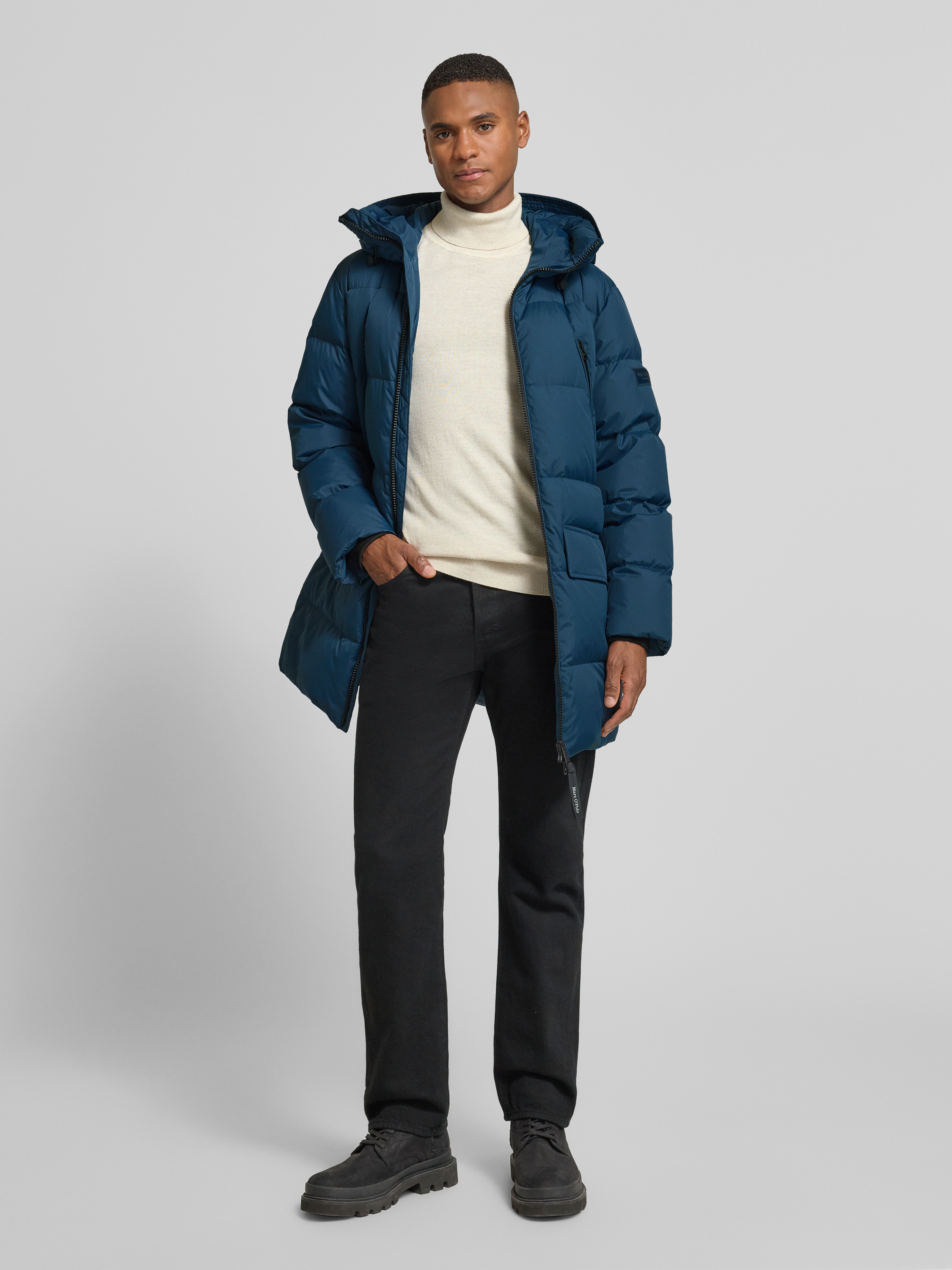 Der Herrenmantel von Marc O'Polo kombiniert eine komfortable Regular Fit Passform mit der wärmenden Eigenschaft von Daunen. Die Kapuze mit Tunnelzug schützt zuverlässig bei wechselhaftem Wetter, während praktische Taschen für Übersicht sorgen. Dezente Details runden das funktionale Gesamtbild stimmig ab.