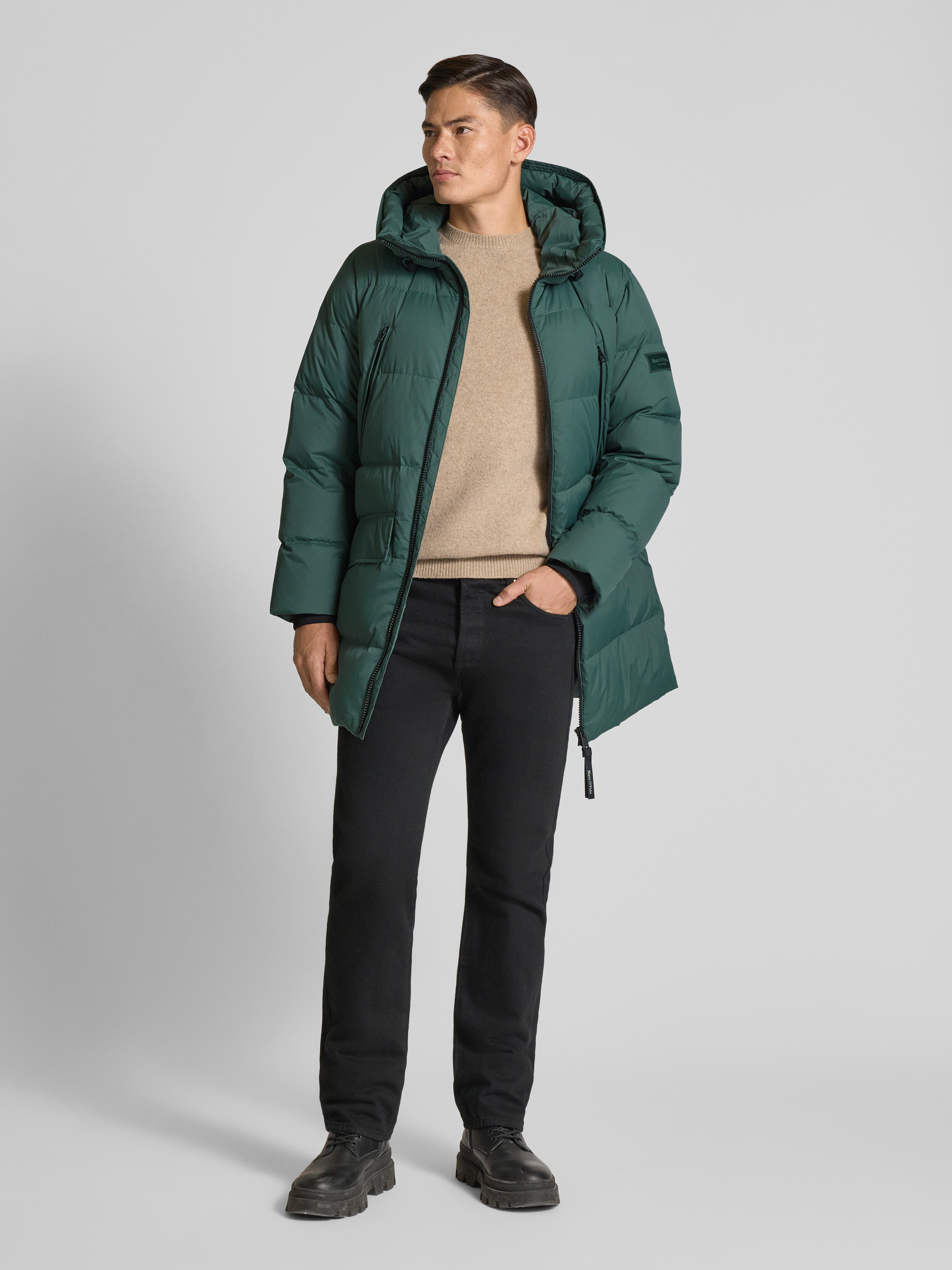 Der Herrenmantel von Marc O'Polo kombiniert eine komfortable Regular Fit Passform mit der wärmenden Eigenschaft von Daunen. Die Kapuze mit Tunnelzug schützt zuverlässig bei wechselhaftem Wetter, während praktische Taschen für Übersicht sorgen. Dezente Details runden das funktionale Gesamtbild stimmig ab.
