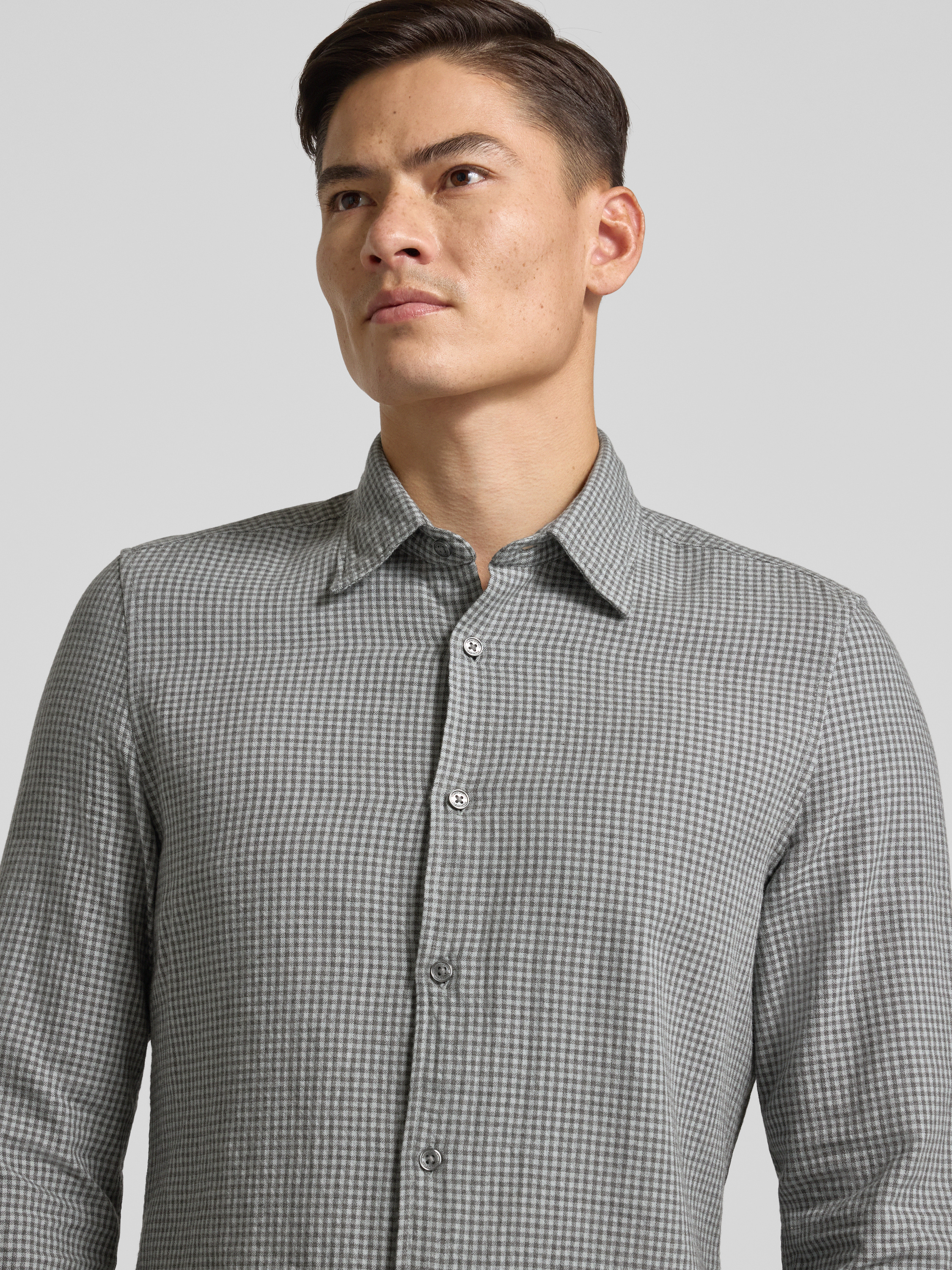Das Herren Freizeithemd von Marc O'Polo zeigt sich im Regular Fit und punktet mit einem markanten Pepita-Muster, das dem Allover-Muster eine klassische Note verleiht. Reine Baumwolle sorgt dabei für ein angenehmes Tragegefühl, während der Kentkragen und die langen Ärmel Alltag und Freizeit vielseitig begleiten. Dank leicht abgerundetem Rumpfabschluss bleibt Bewegungsfreiheit erhalten, sodass man sich in unterschiedlichen Situationen flexibel fühlt.