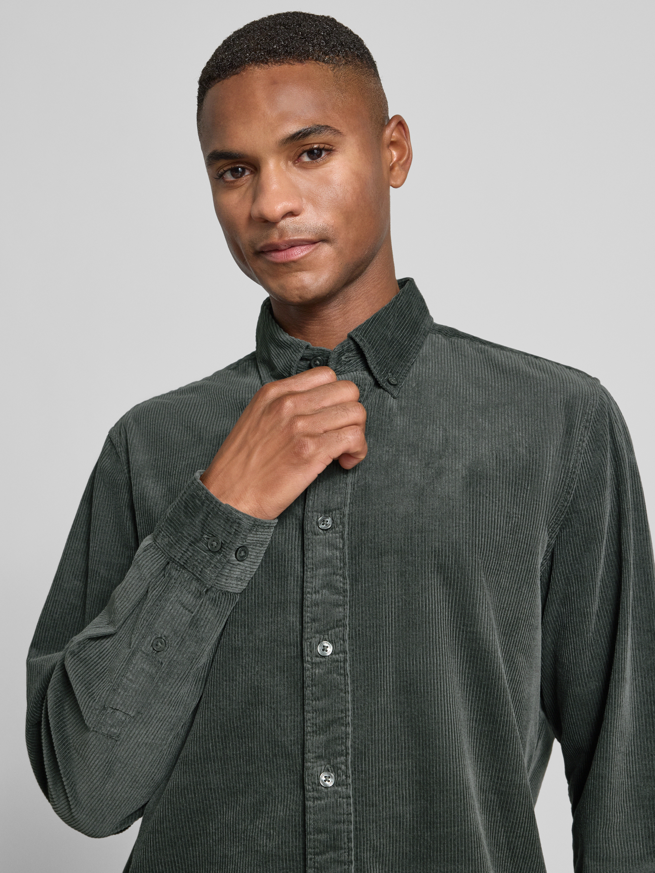 Das Herren Freizeithemd von Marc O'Polo zeigt sich im Regular-Fit und überzeugt durch seine angenehme Haptik dank reiner Baumwolle in Cord-Optik. Die unifarbene Gestaltung sorgt für vielseitige Kombinationsmöglichkeiten, während der Button-Down-Kragen sowie langärmelige Manschetten einen klassischen Akzent setzen. So eignet sich das Hemd für entspannte Anlässe und einen komfortablen Alltag.