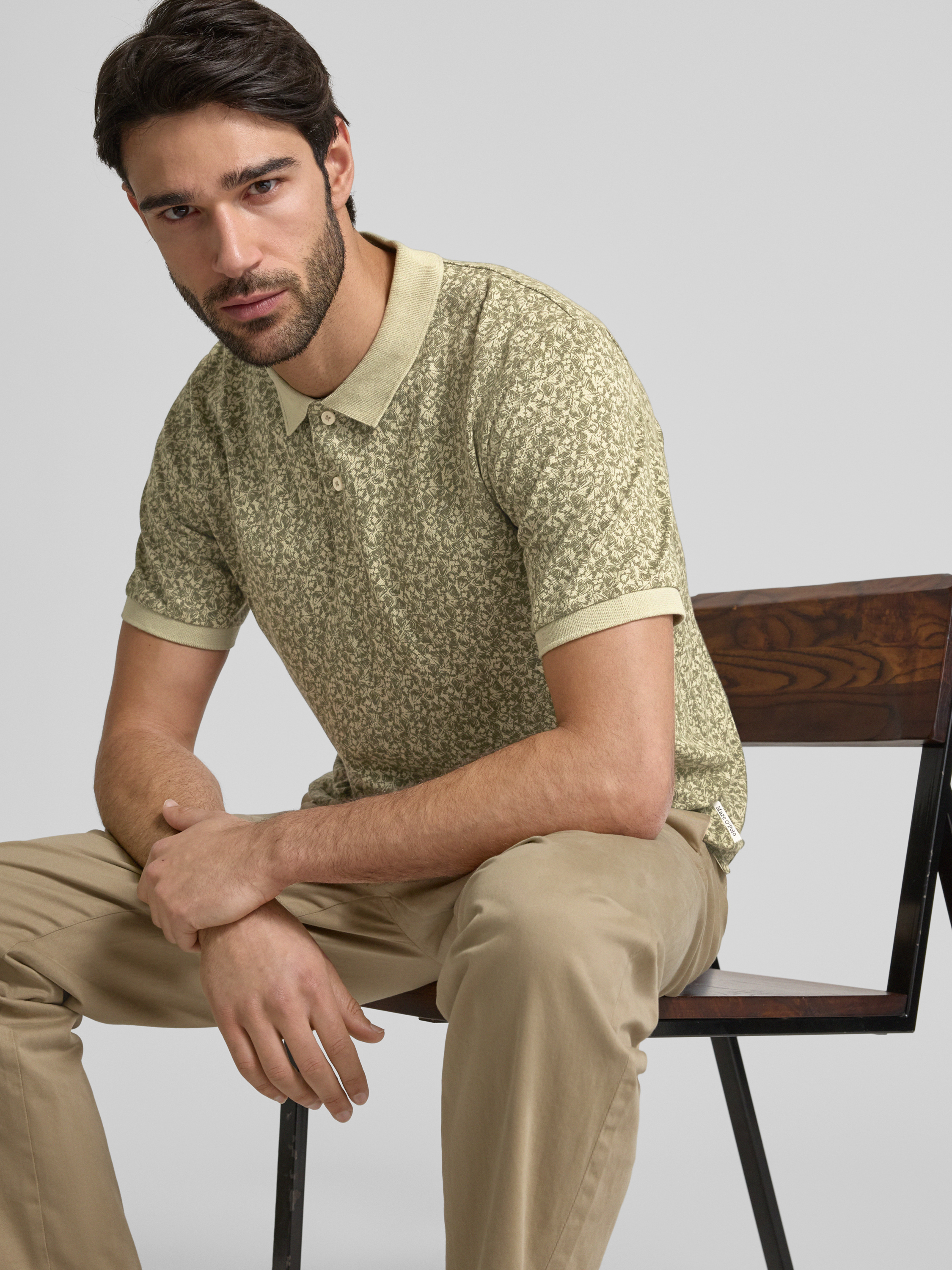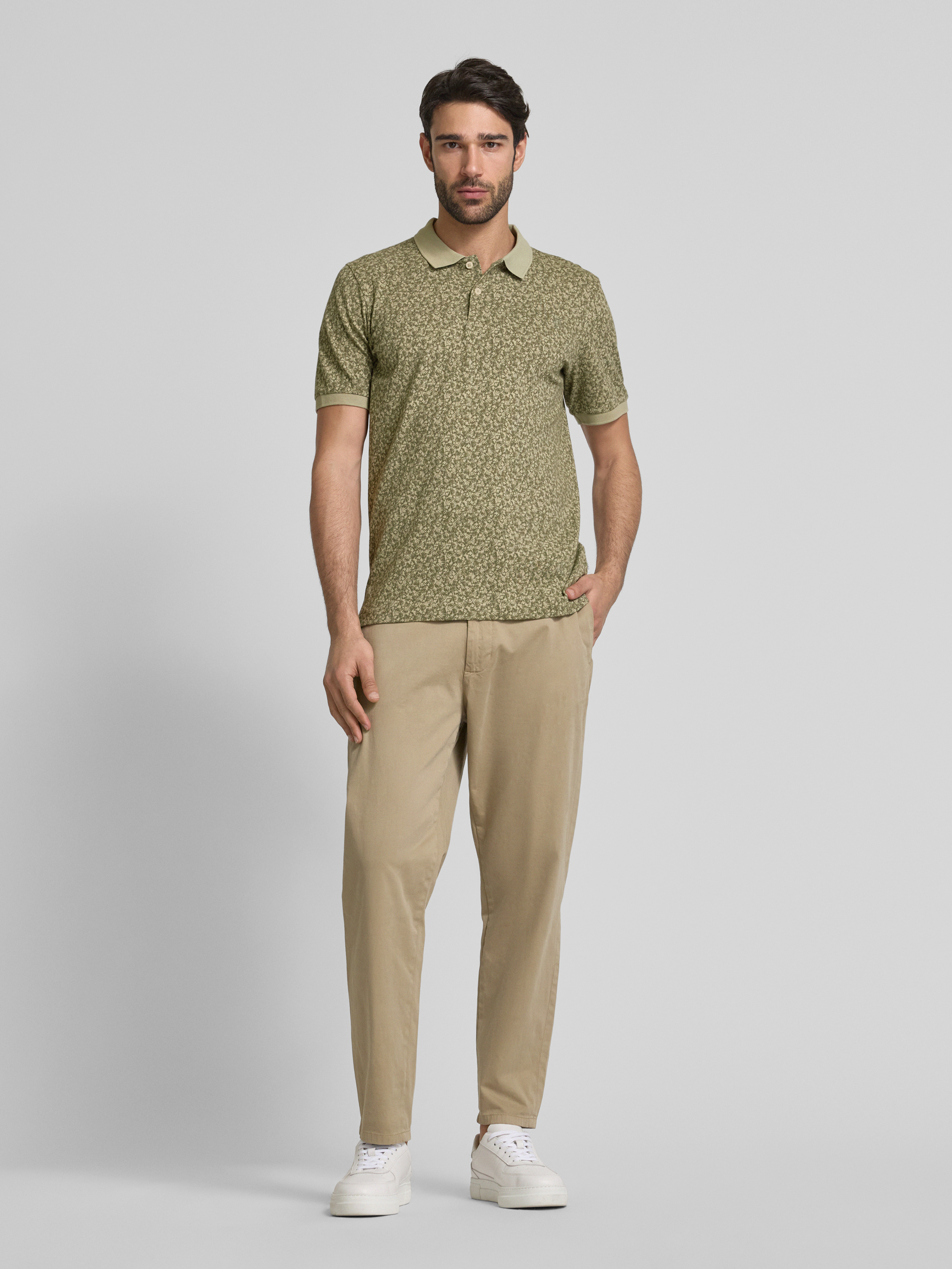 Das Herren Poloshirt von Marc O'Polo kombiniert einen klassischen Polokragen mit einem floralen Allover-Muster, das dem Regular Fit eine dynamische Note verleiht. Der Baumwoll-Elasthan-Mix sorgt für einen angenehmen Tragekomfort, während der Label Patch einen dezenten Akzent setzt. Kurze Ärmel und Seitenschlitze ergänzen das lässige Design und bieten Bewegungsfreiheit.