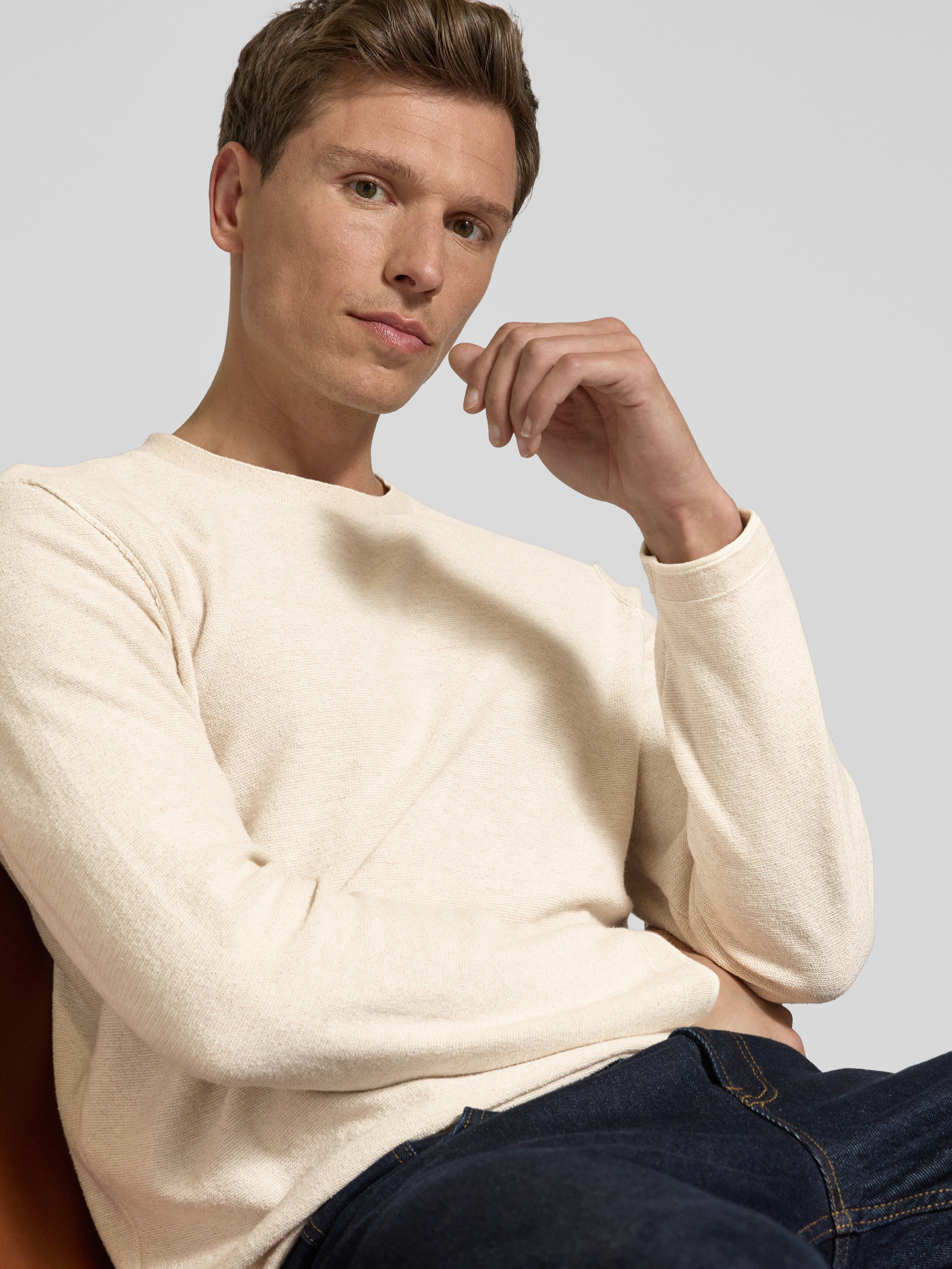 Marc O'PoloRegular Fit Strickpullover aus Baumwoll-Viskose-Leinen-Mix in beige