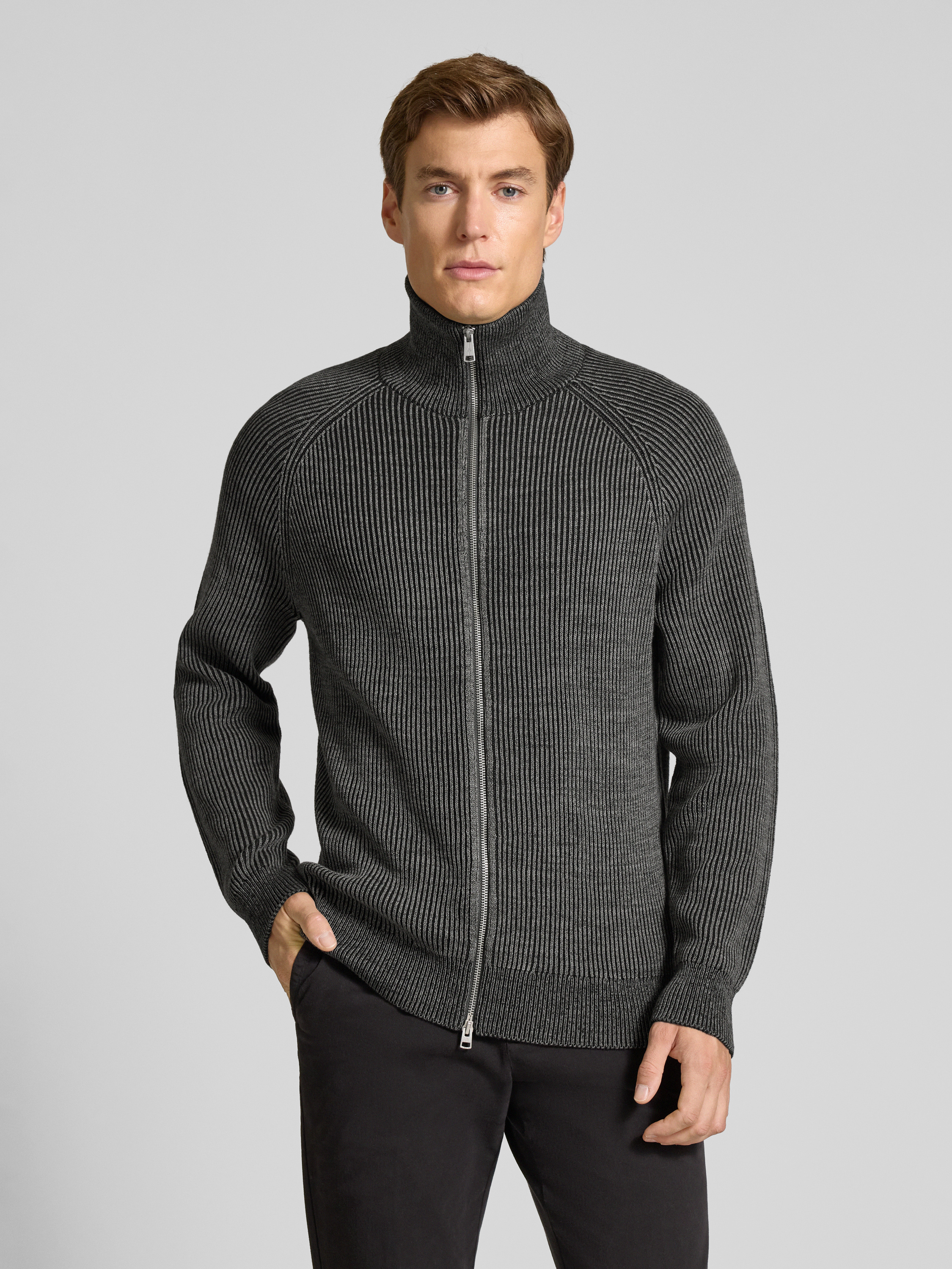 Die Herren Sweatjacke von Marc O'Polo fällt durch ihr markantes Allover-Muster und den klassischen Stehkragen auf. Der gerade Regular Fit und die Raglanärmel ermöglichen angenehme Bewegungsfreiheit, während die feine Strickverarbeitung aus einem Baumwoll-Mix einen bequemen Tragekomfort schafft. Das dezente Label Patch rundet den sportlich-lässigen Look ab.