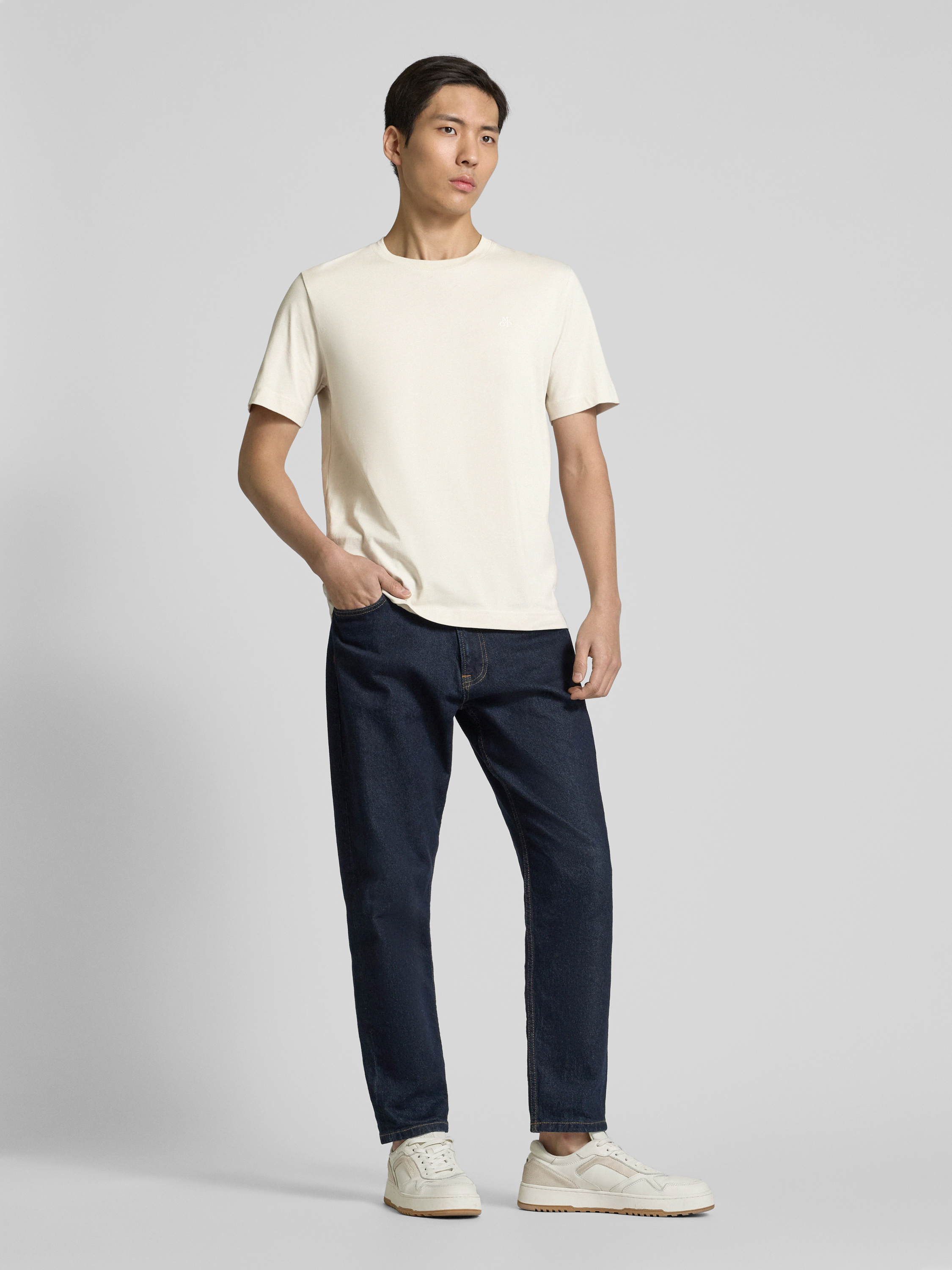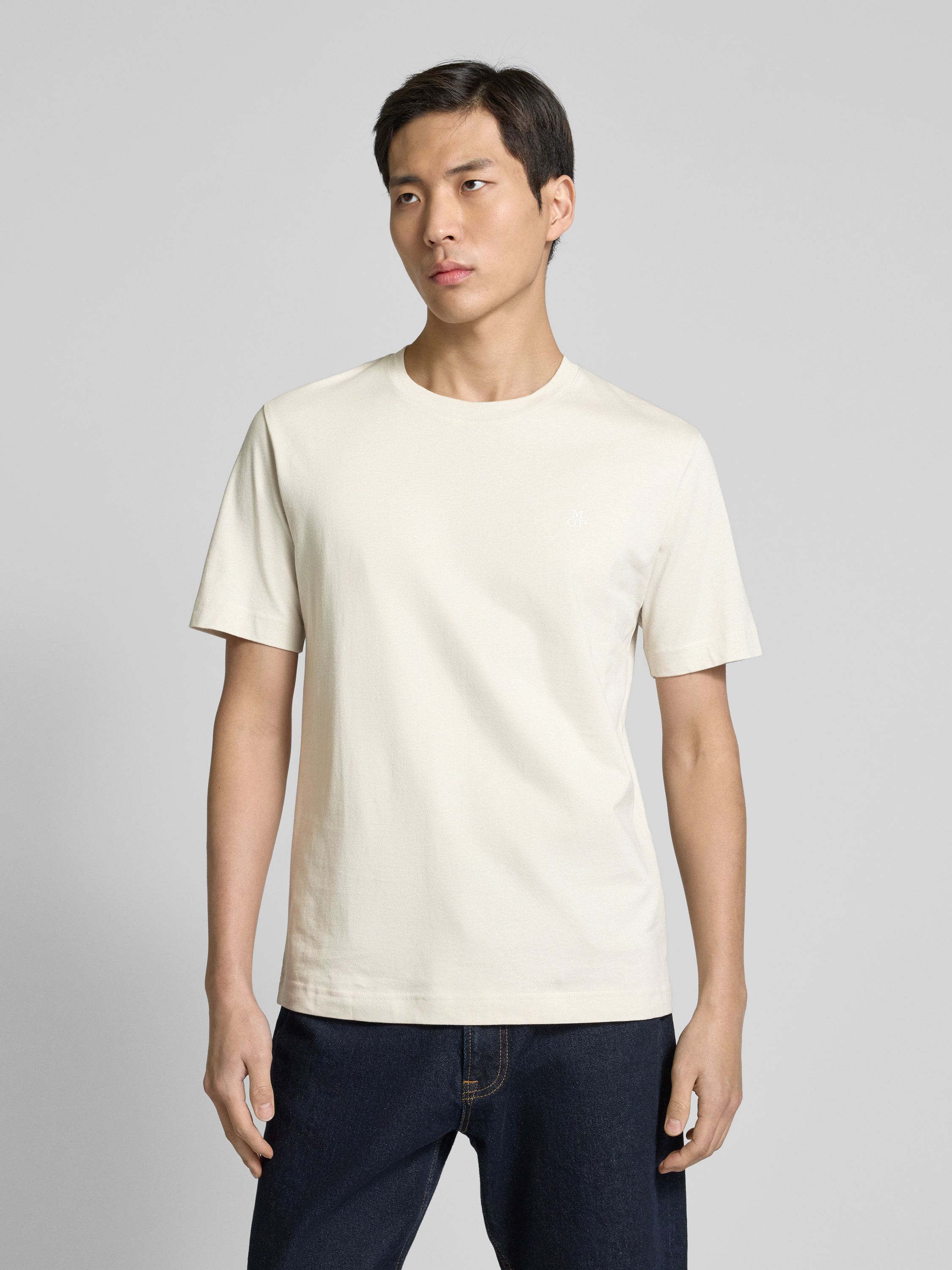 Marc O'PoloRegular Fit T-Shirt aus reiner Baumwolle mit Logo-Print in beige