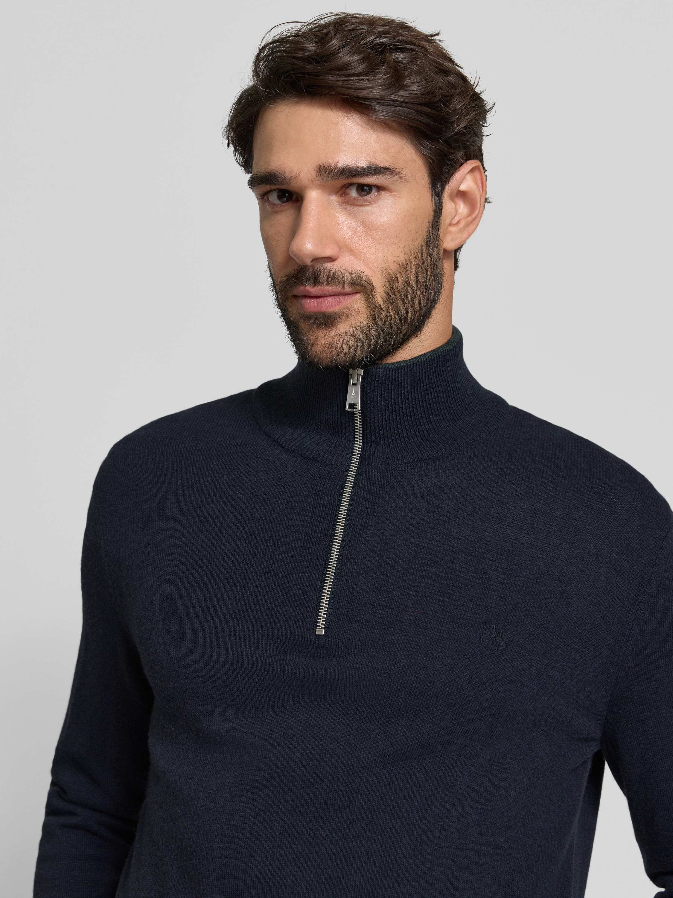 Der Herren Troyer von Marc O'Polo verbindet durch den Regular-Fit eine angenehme Passform mit zeitgemäßem Look. Der Baumwoll-Schurwoll-Mix im Strick sorgt für ein ausgewogenes Tragegefühl, das sich sowohl weich als auch formstabil zeigt. Dank der dezenten Melange-Optik entsteht ein vielseitiger Begleiter für unterschiedliche Anlässe.