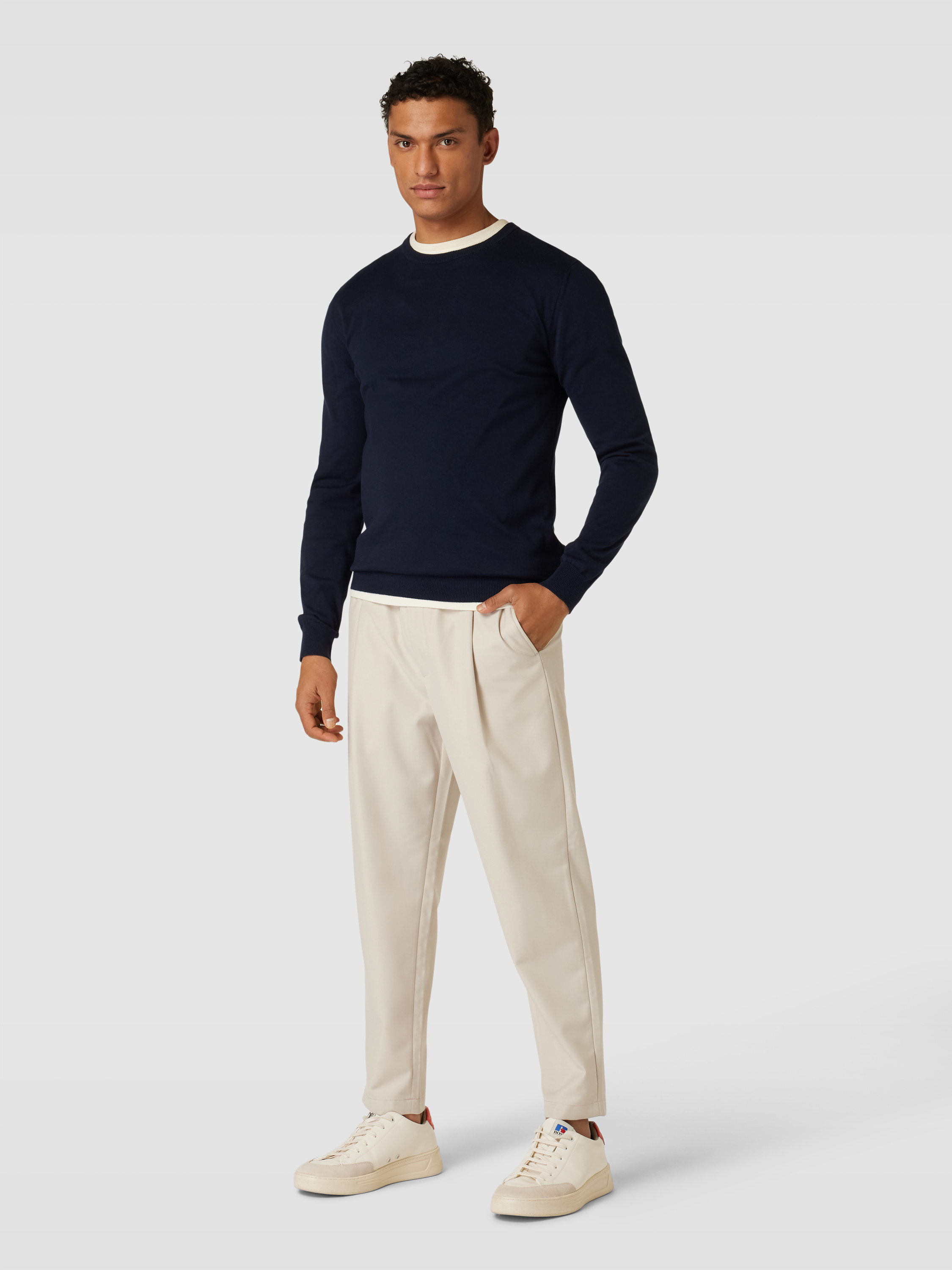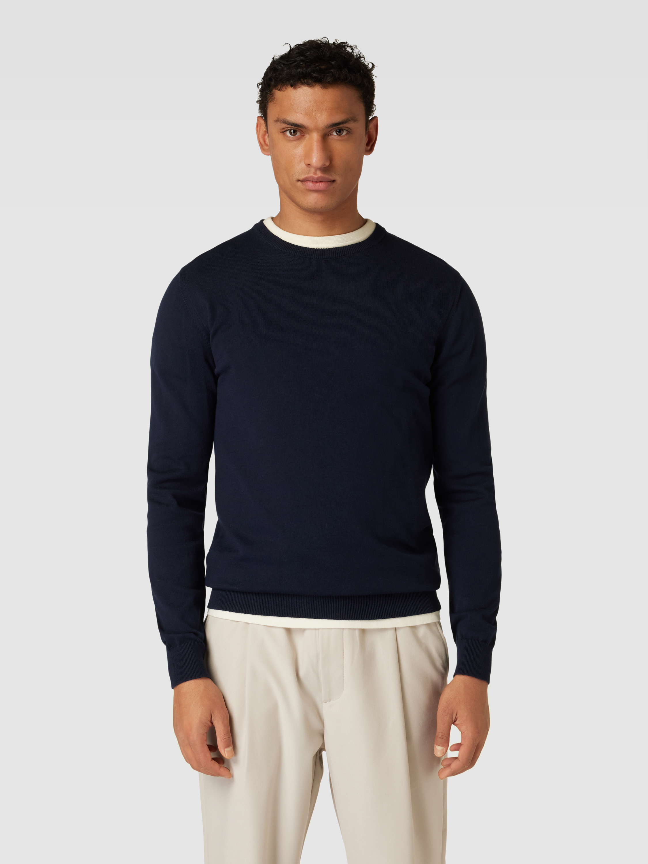 Strickpullover mit Rundhalsausschnitt in marine