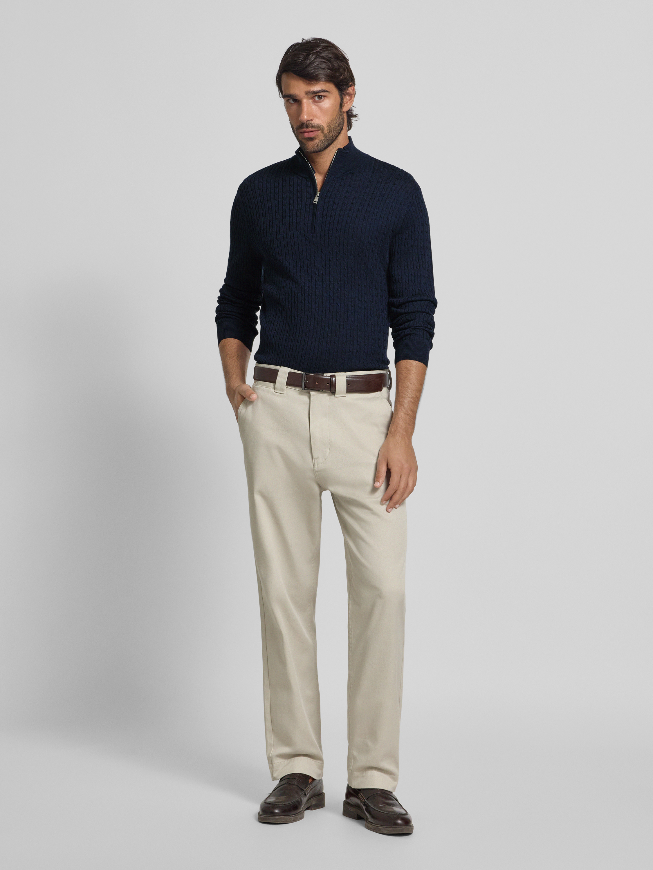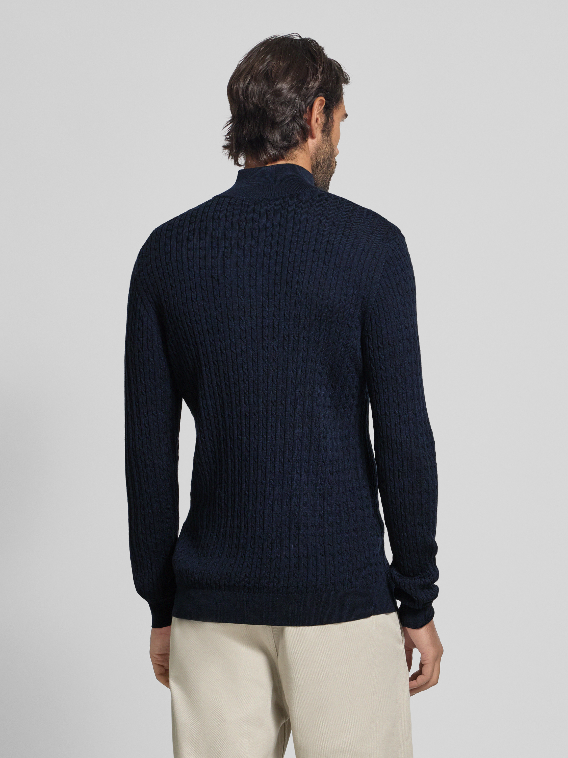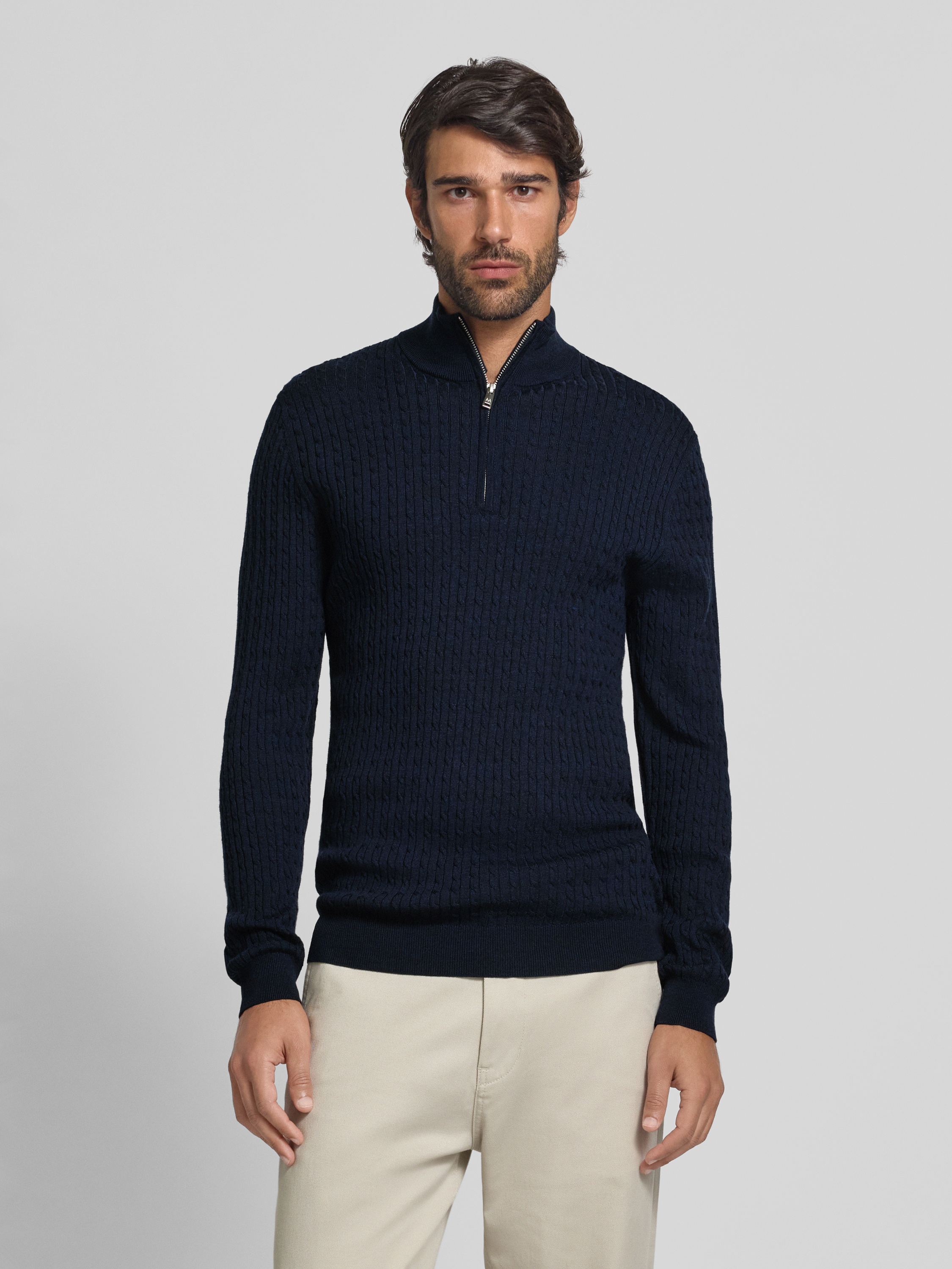 MatiniqueStrickpullover mit Troyer-Kragen Modell 'mason' in dunkelblau