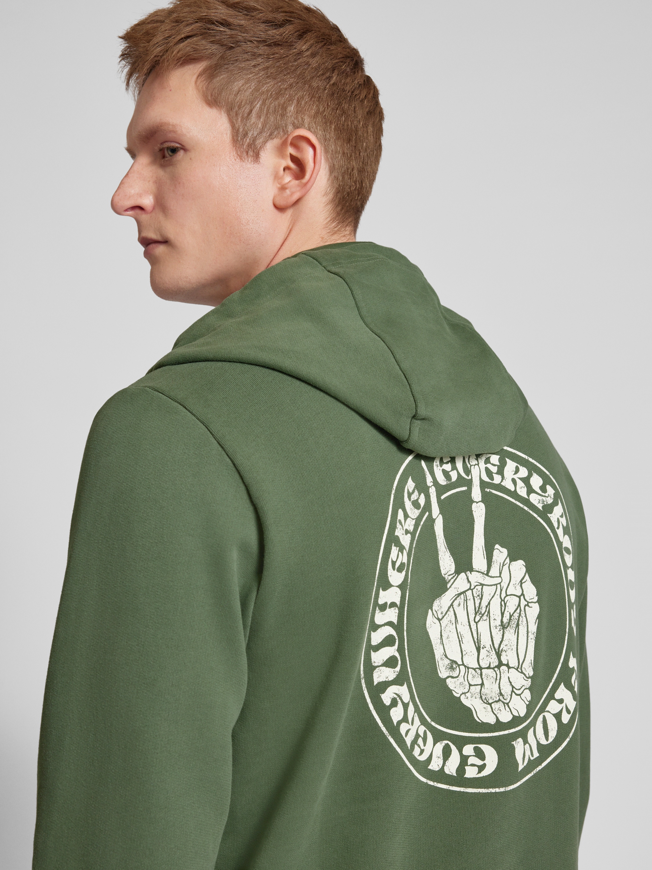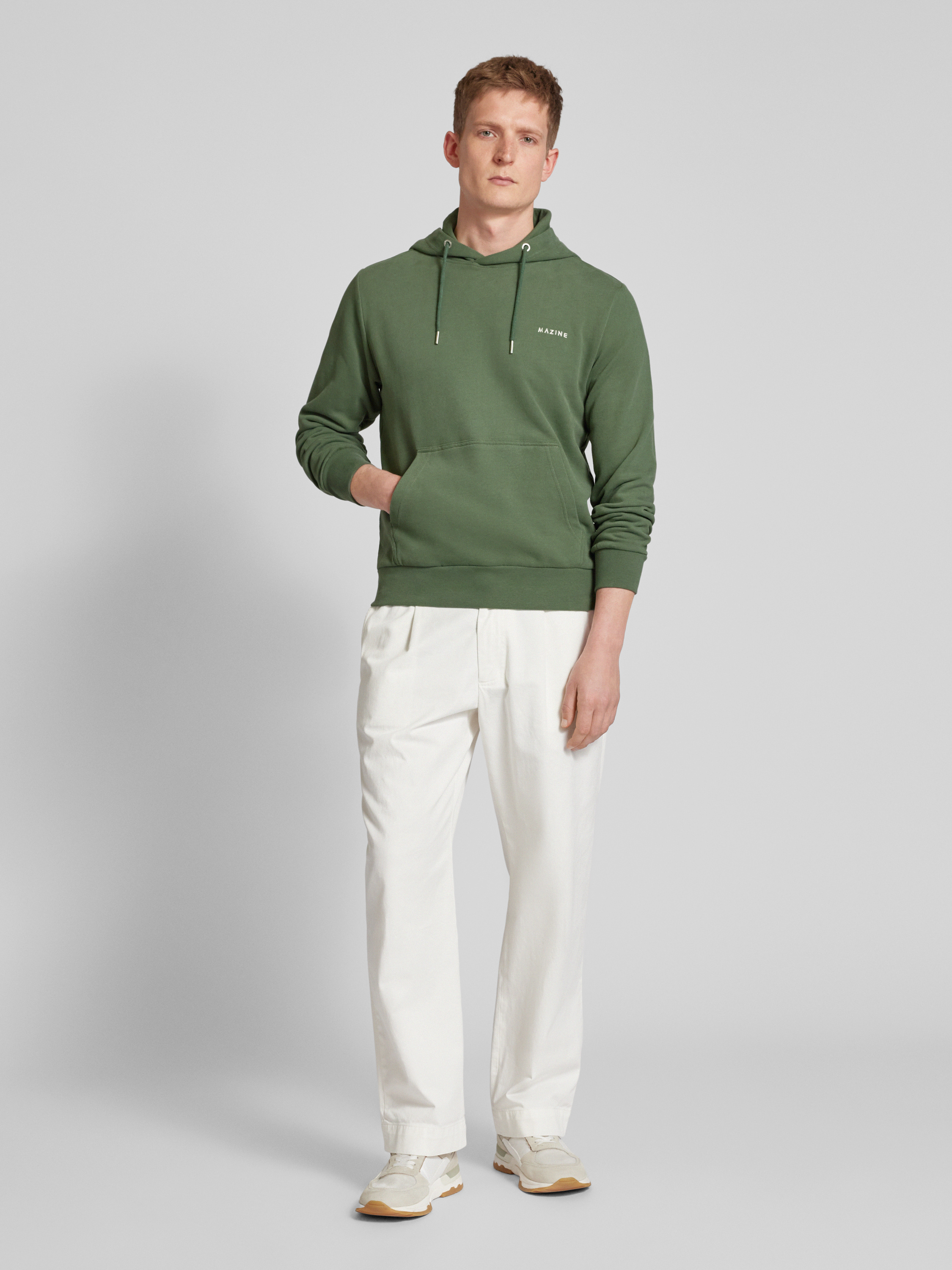 MazineHoodie mit Label-Stitching Modell 'Stundon' in gruen