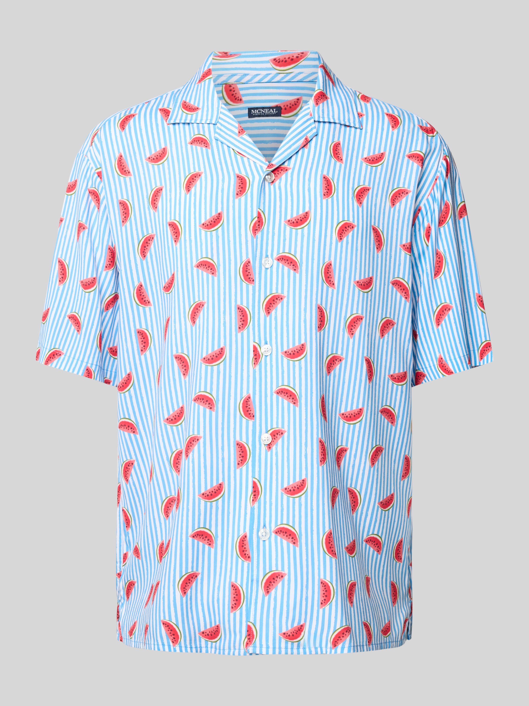 Das Freizeithemd von MCNEAL besteht aus reiner Viskose und bietet durch seinen lockeren Schnitt ein angenehmes Tragegefühl. Der Reverskragen verleiht dem kurzärmeligen Design eine lässige Note, während die Knopfleiste eine klassische Ergänzung darstellt. Ideal für entspannte Tage.