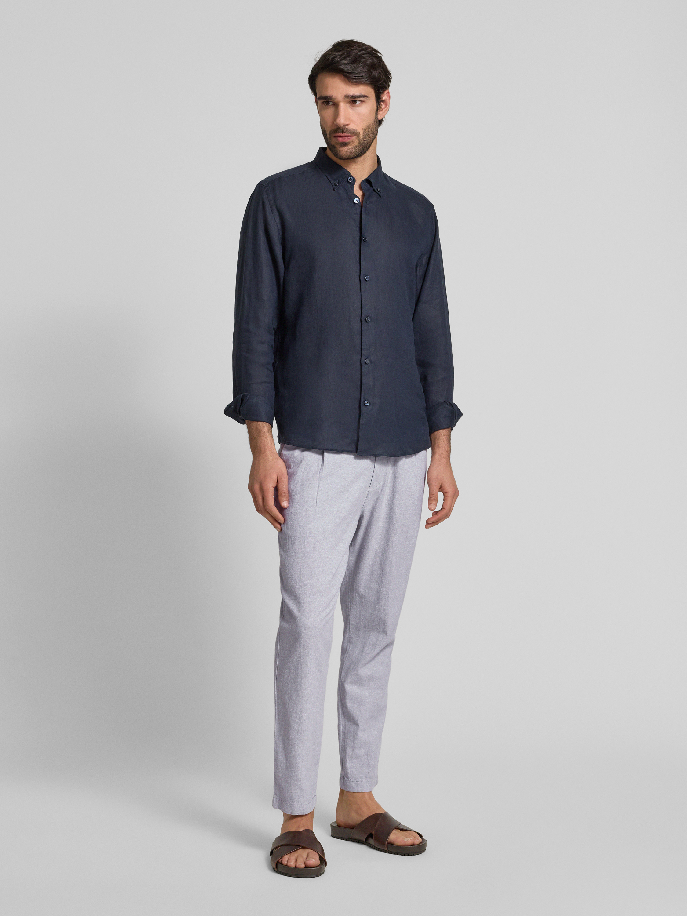 Die Herren Leinenhose von MCNEAL verbindet den natürlichen Komfort eines Leinen-Baumwoll-Mixes mit einem modernen Tapered Fit. Dank der weichen Struktur eignet sich die Hose ideal für warme Tage, während der elastische Bund für zusätzlichen Tragekomfort sorgt. Praktische Eingrifftaschen runden das durchdachte Design ab.