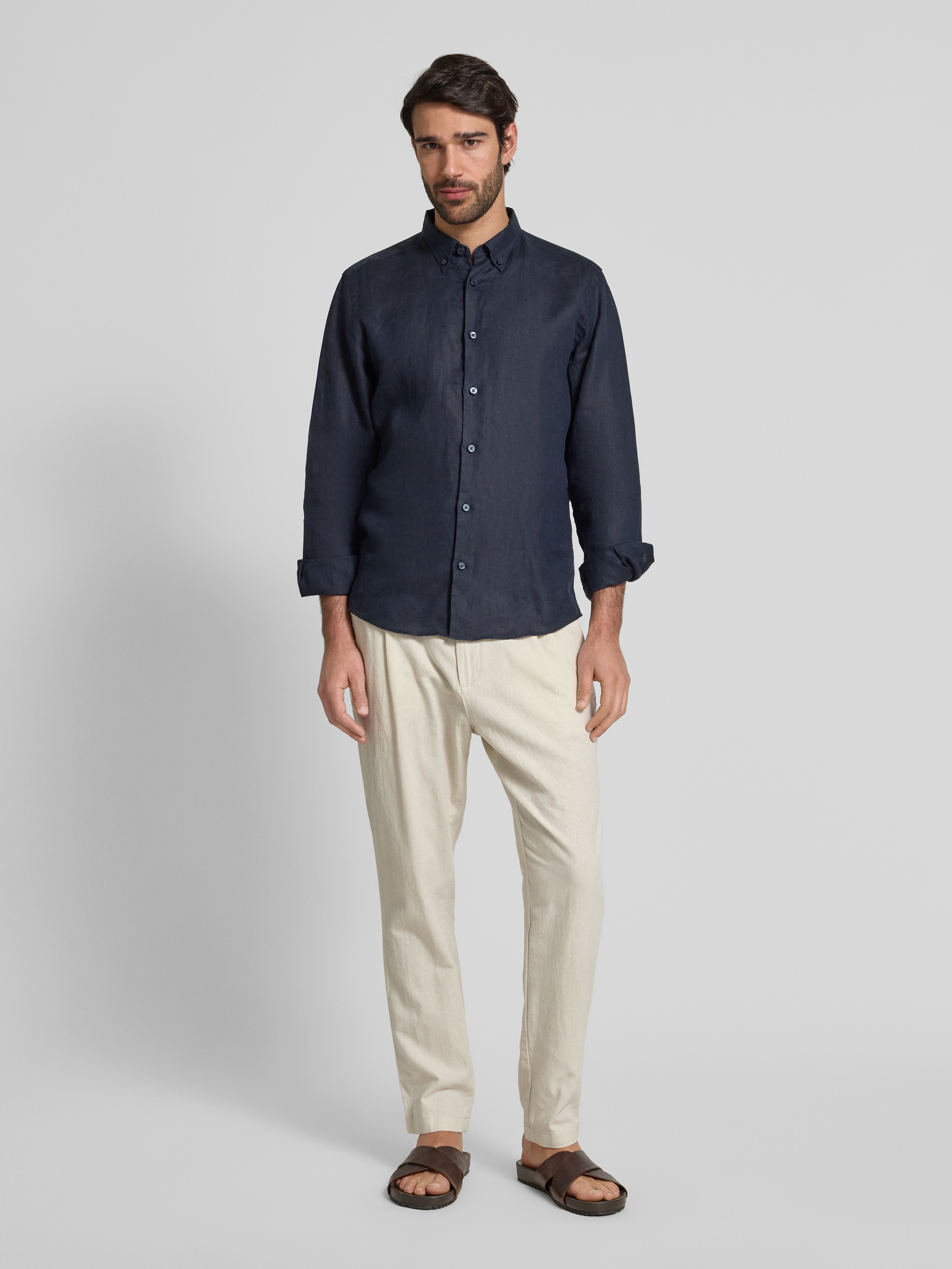 Die Herren Leinenhose von MCNEAL verbindet den natürlichen Komfort eines Leinen-Baumwoll-Mixes mit einem modernen Tapered Fit. Dank der weichen Struktur eignet sich die Hose ideal für warme Tage, während der elastische Bund für zusätzlichen Tragekomfort sorgt. Praktische Eingrifftaschen runden das durchdachte Design ab.