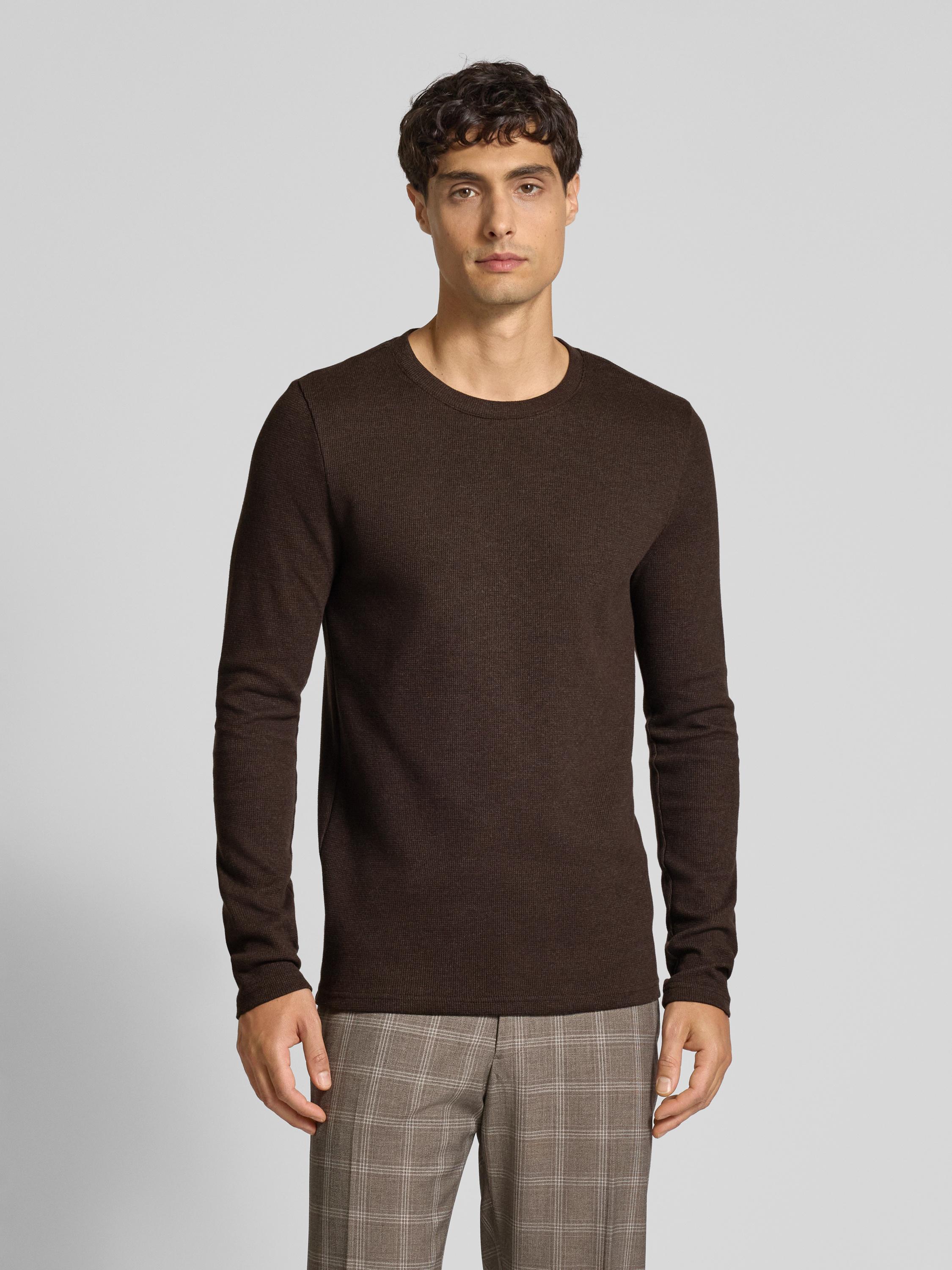 Der Herren Pullover von MCNEAL liegt durch seine körpernahe Passform angenehm am Körper und lässt sich unkompliziert zu verschiedenen Outfits kombinieren. Dank des Baumwoll-Mix mit Stretch-Anteil bleibt das Material formstabil und macht Bewegungen problemlos mit. Ein klassischer Rundhalsausschnitt rundet das zurückhaltende Design dezent ab.