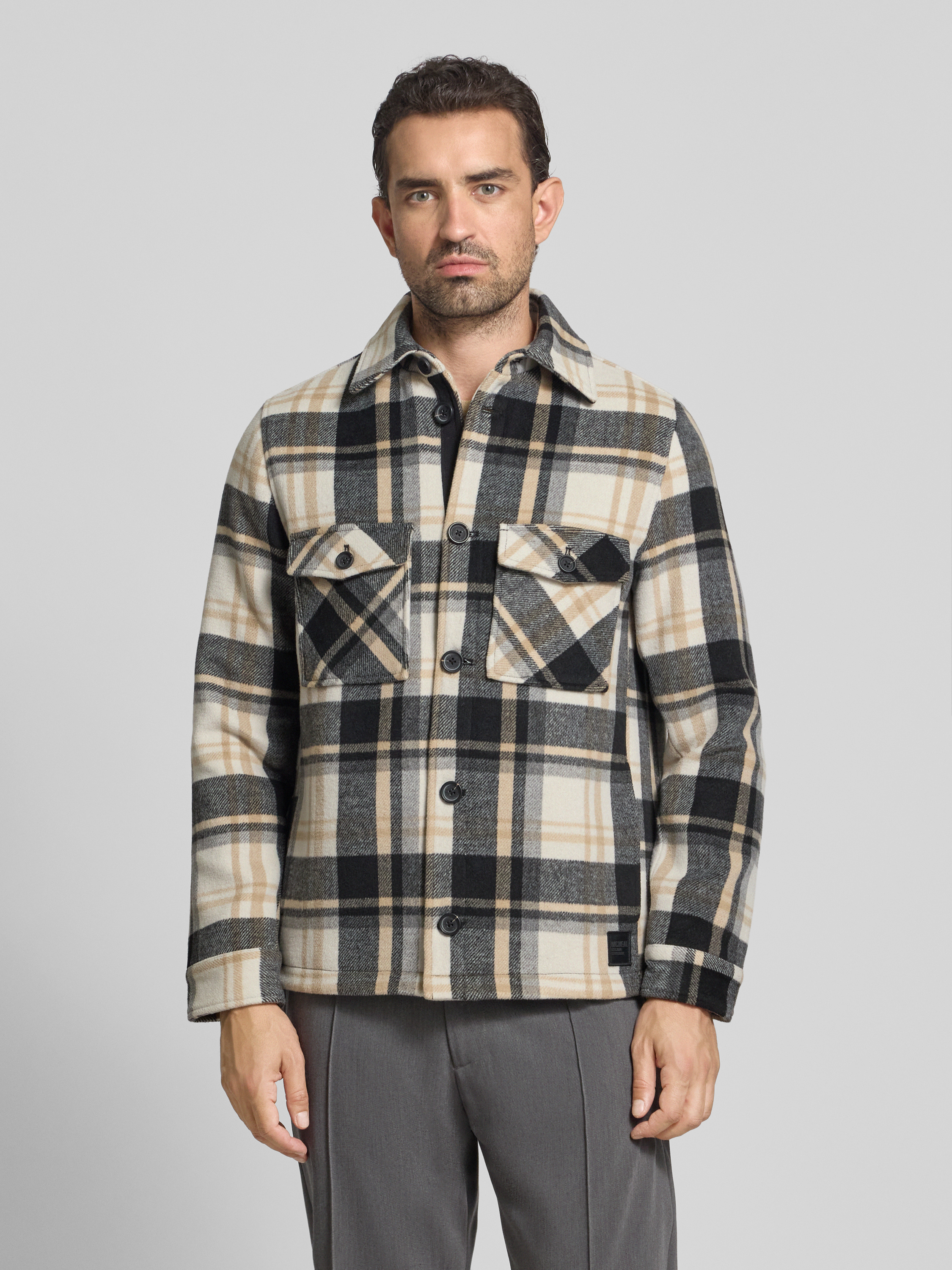Das Herrenmodell von MCNEAL verbindet klassischen Schnitt mit einem Woll-Anteil, wodurch die Regular Fit Hemdjacke mit Kentkragen angenehm auf der Haut liegt und leicht wärmt. Zwei Brusttaschen sorgen für Stauraum, während der zeitlose Kentkragen dem Look eine dezente Struktur verleiht. Alltagstauglich lässt sich das Modell vielseitig kombinieren.