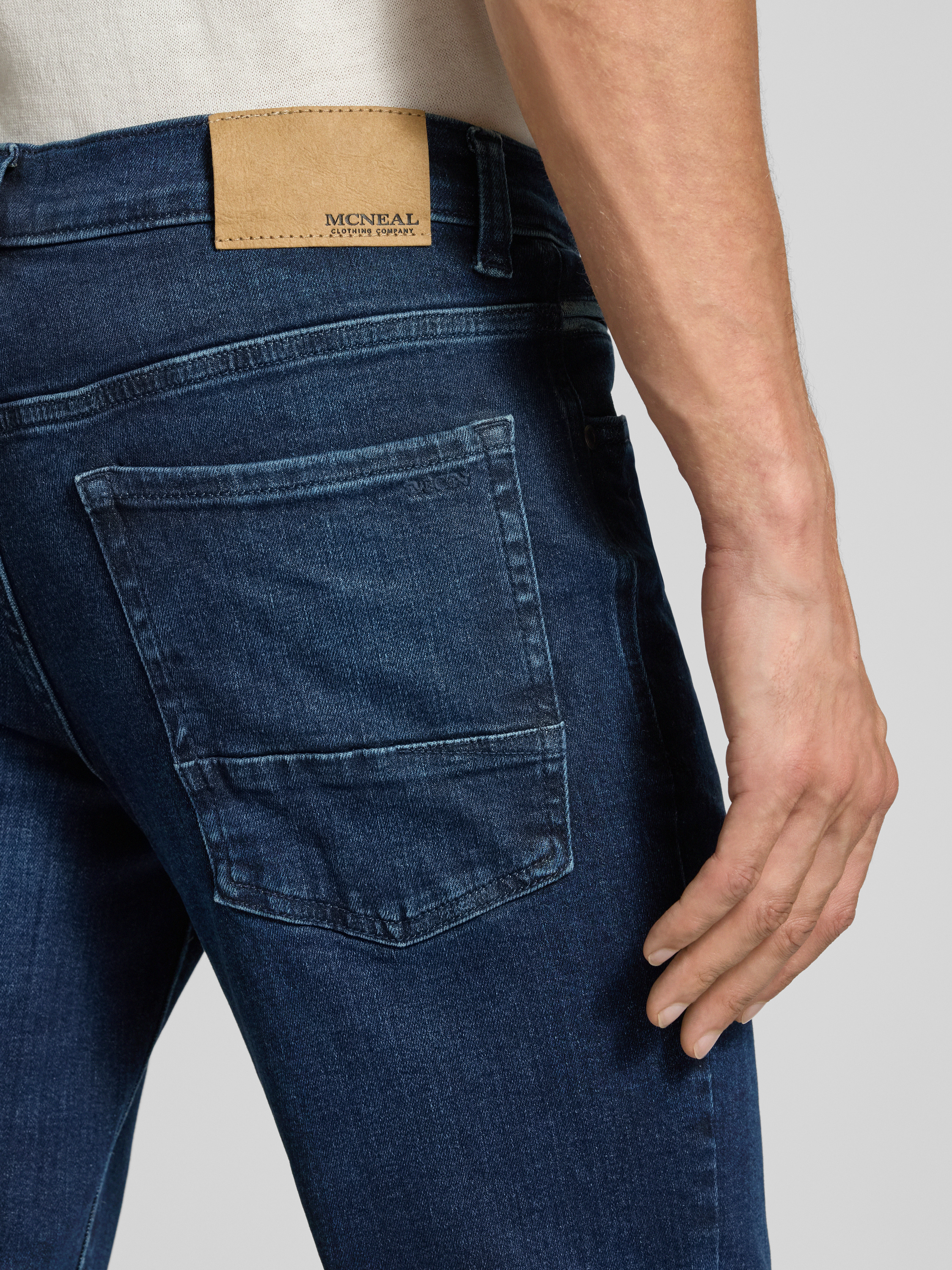 Die Herren Regular Fit Jeans im 5-Pocket-Design von MCNEAL setzt auf einen Baumwoll-Elasthan-Mix, der für angenehmen Tragekomfort sorgt. Durch die klassische Passform bleibt Bewegungsfreiheit erhalten, während das bewährte Five-Pocket-Stil praktisch im Alltag erscheint. So eignet sich die Jeans vielseitig für verschiedene Gelegenheiten.
