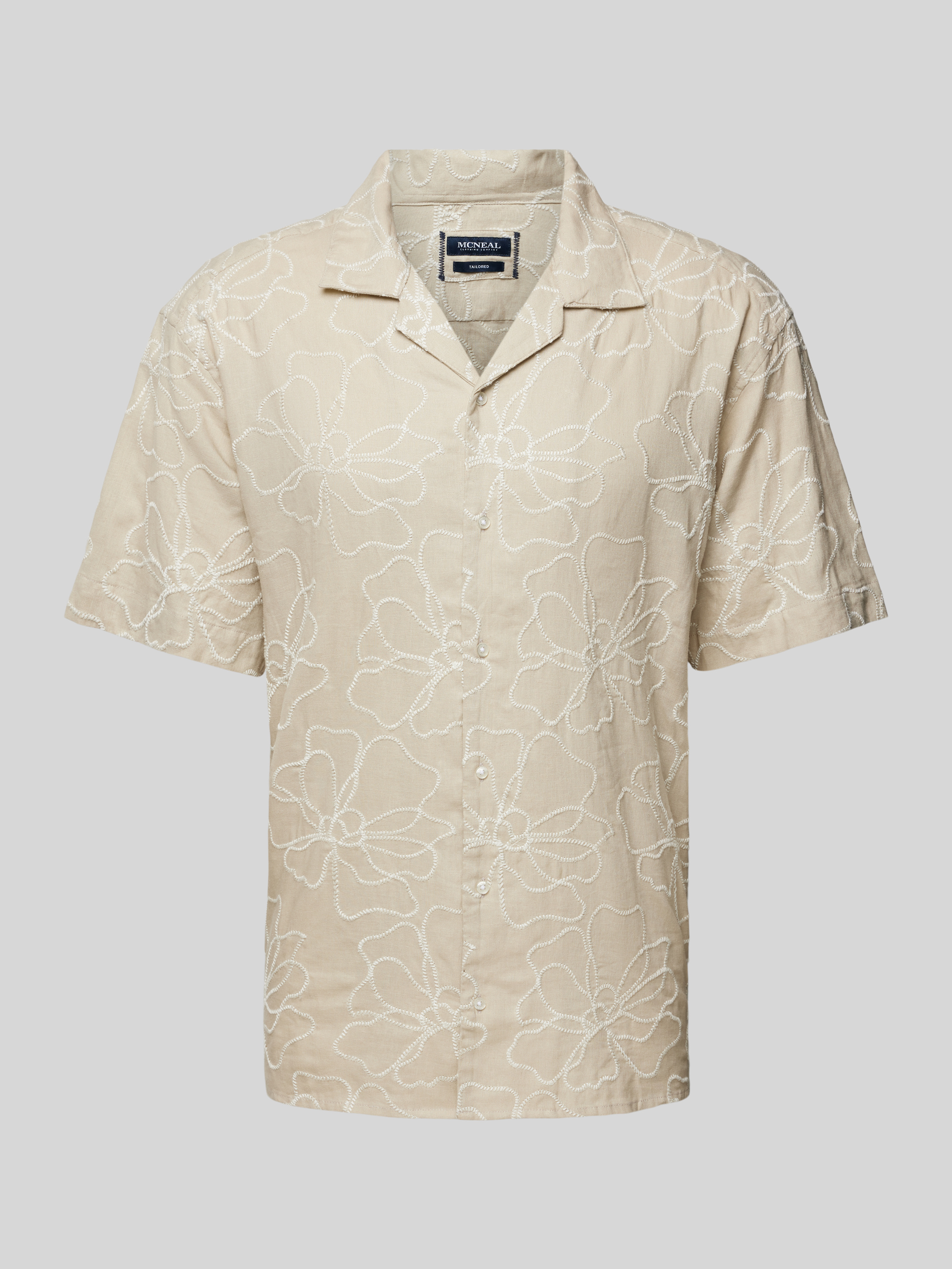 Das Leinenhemd von MCNEAL verbindet einen lässigen Regular Fit mit dem edlen Tragekomfort eines Leinen-Viskose-Mixes. Mit einem stilvollen Reverskragen und einem dezenten Motiv-Stitching eignet es sich ideal für sommerliche Tage. Die halblangen Ärmel runden das Gesamtbild harmonisch ab.
