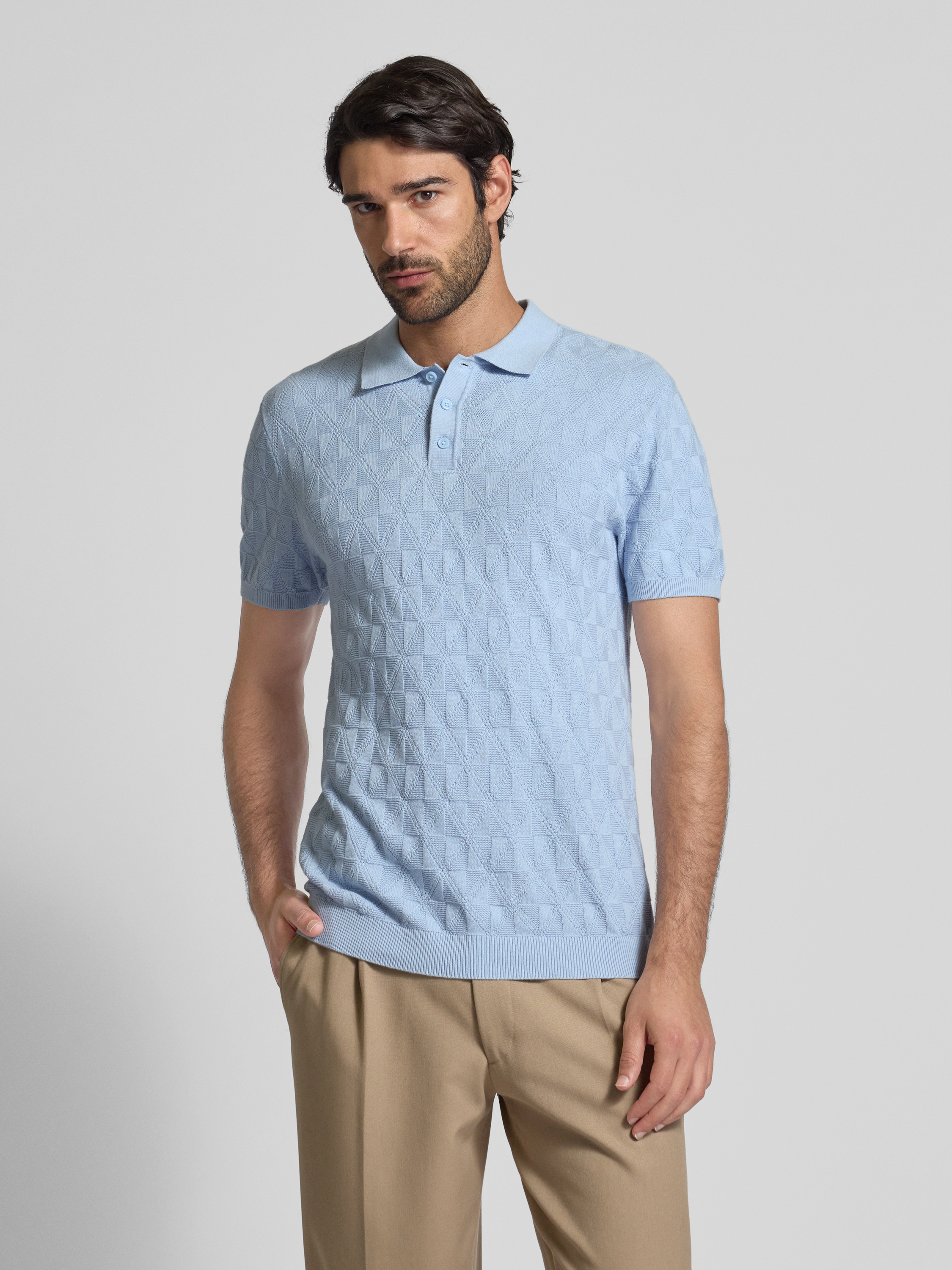 MCNEALRegular Fit Strickpolo mit Knopfleiste in hellblau