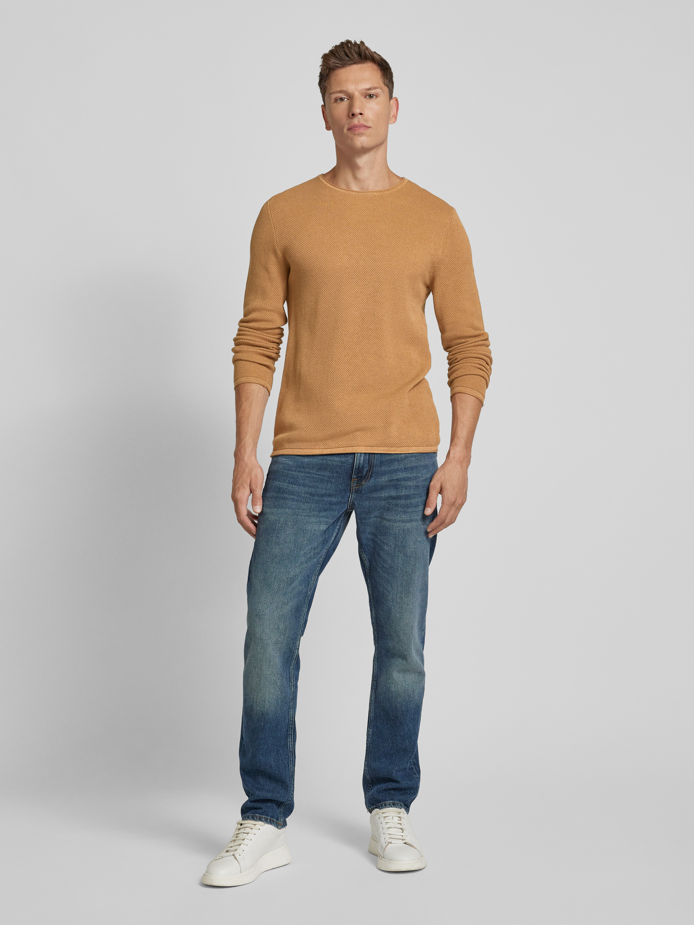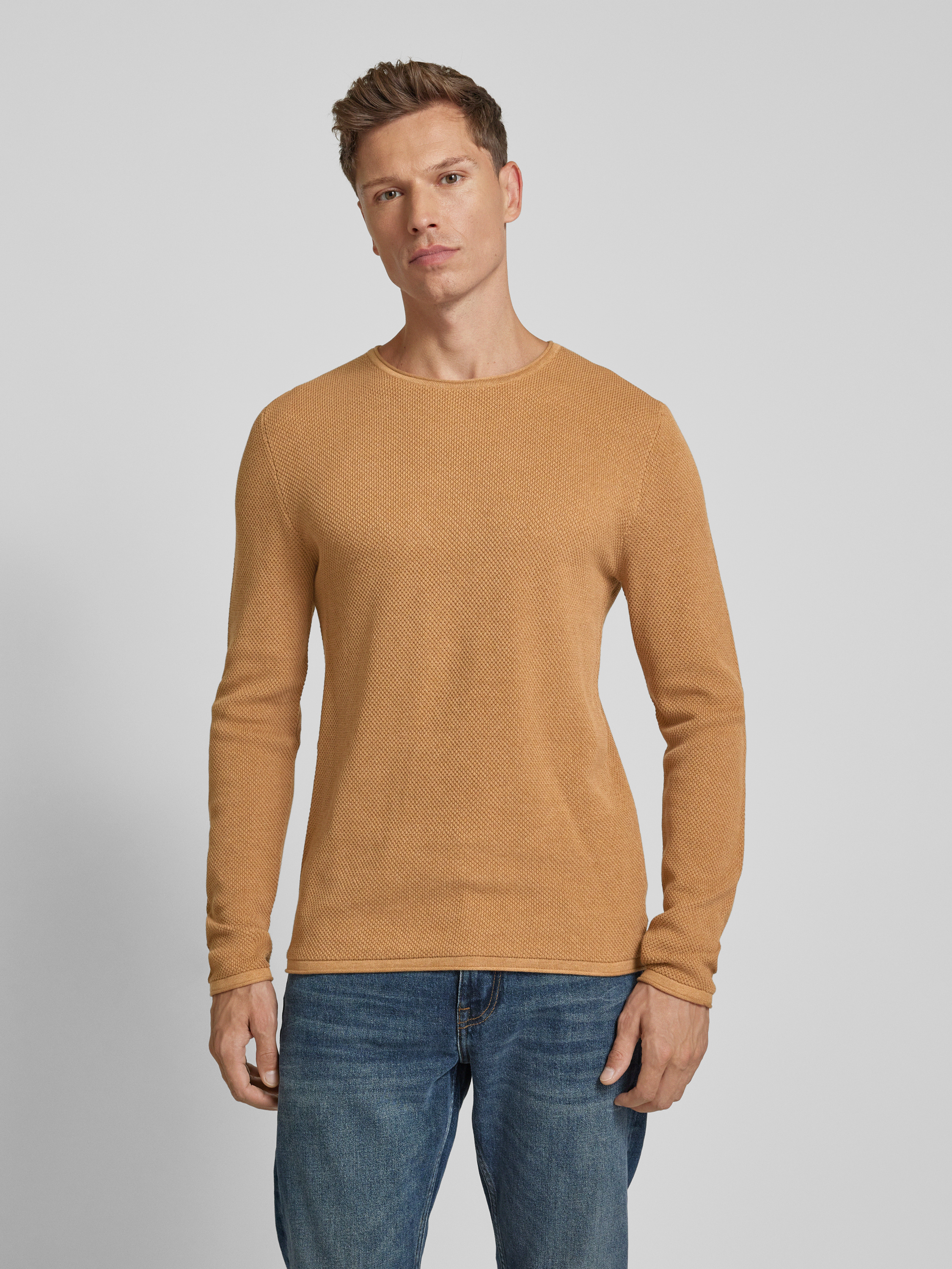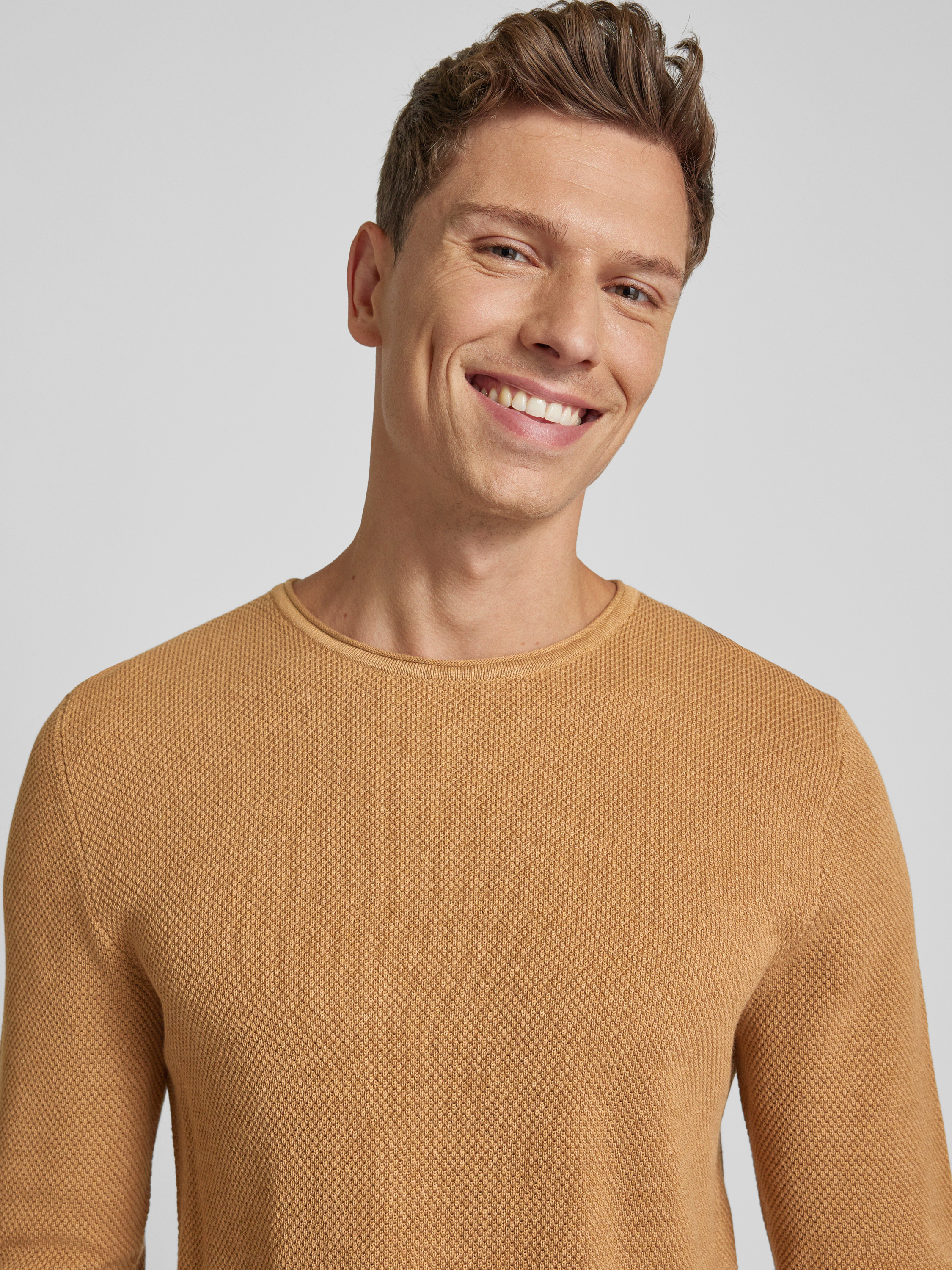 Der MCNEAL Strickpullover in Regular Fit vereint stilvolle Melange-Optik mit einem charmanten Strukturmuster. Die reine Baumwolle sorgt für angenehmen Tragekomfort, während der gerollte Rundhalsausschnitt und die gerollten Abschlüsse dem Design eine lässige Note verleihen. Ein vielseitiger Begleiter für unterschiedliche Anlässe.