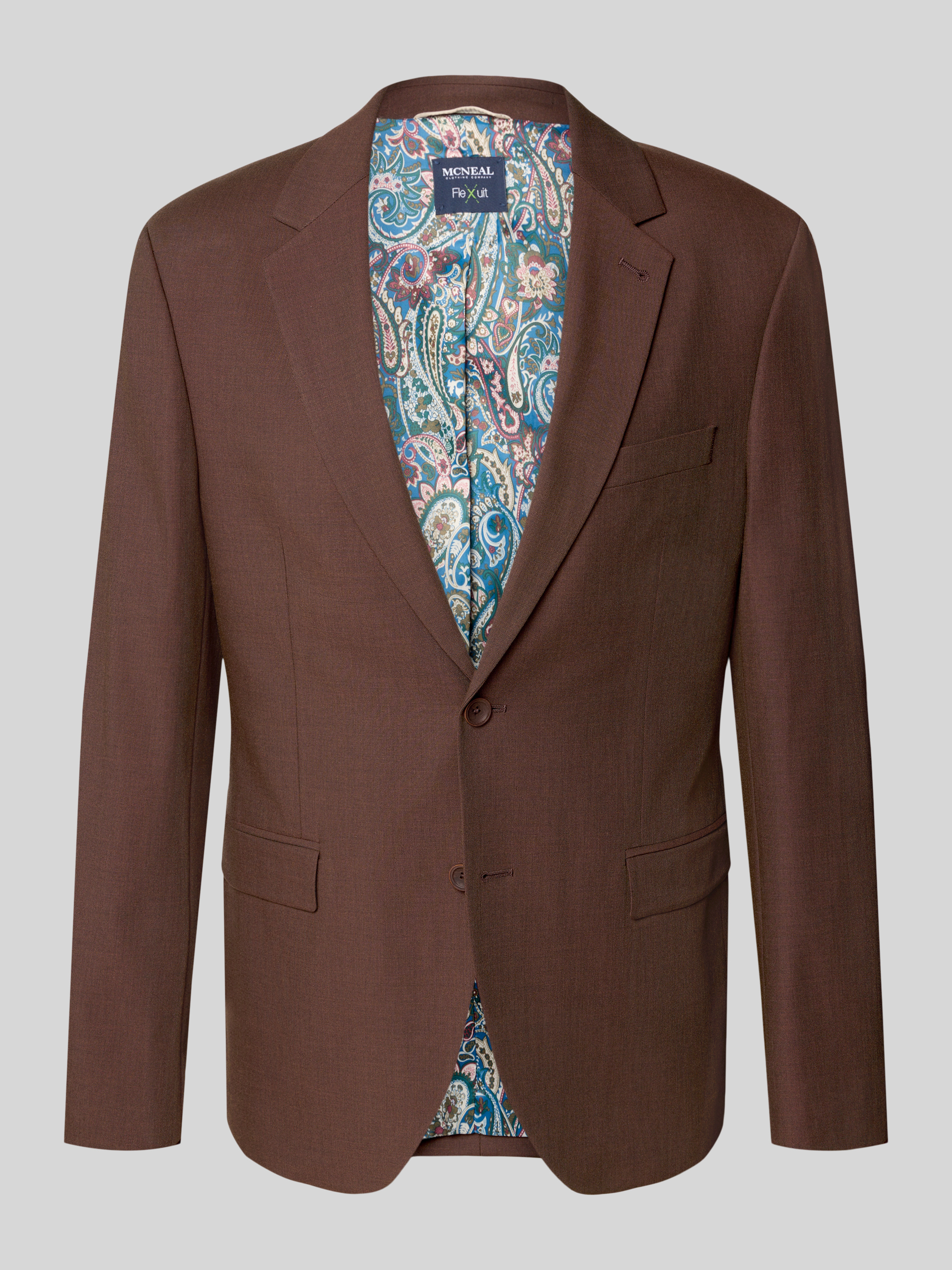 Das Slim Fit Sakko von MCNEAL kombiniert einen elastischen Material-Mix mit einem Viskose-Anteil, was eine komfortable Passform ermöglicht. Der Reverskragen und die Pattentaschen verleihen dem Sakko eine klassische Note. Ein florales Muster auf der Innenseite sorgt für einen dezenten, stilvollen Akzent.