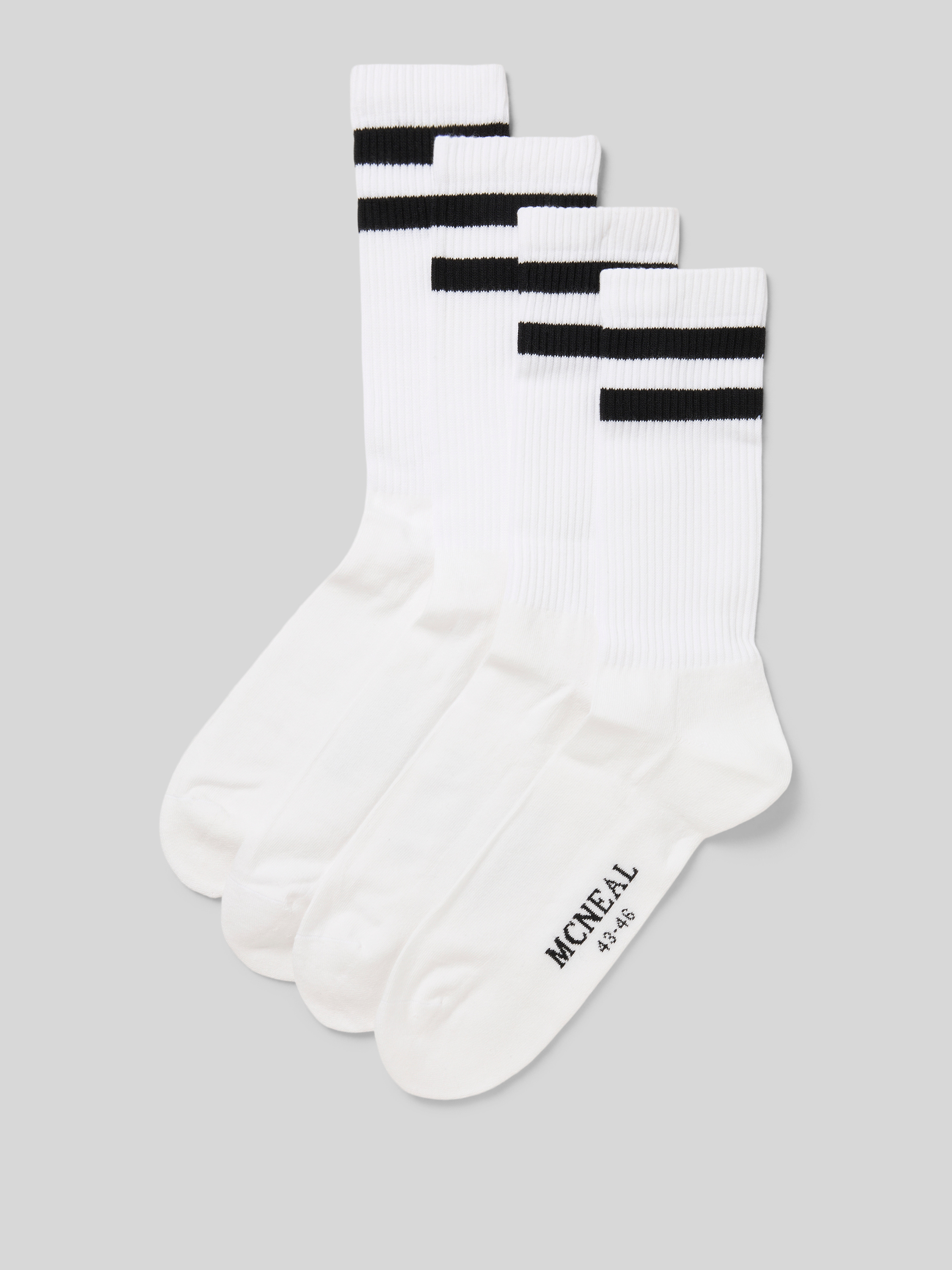 Die Socken von MCNEAL im 4er-Pack zeichnen sich durch ihren angenehmen Bio-Baumwoll-Mix mit Stretch-Anteil aus, wodurch sie sich bequem an den Fuß anpassen. Das dezente Label-Detail sorgt für eine moderne Note im Alltag. Dank der elastischen Bündchen bleibt der Sitz den ganzen Tag über zuverlässig.