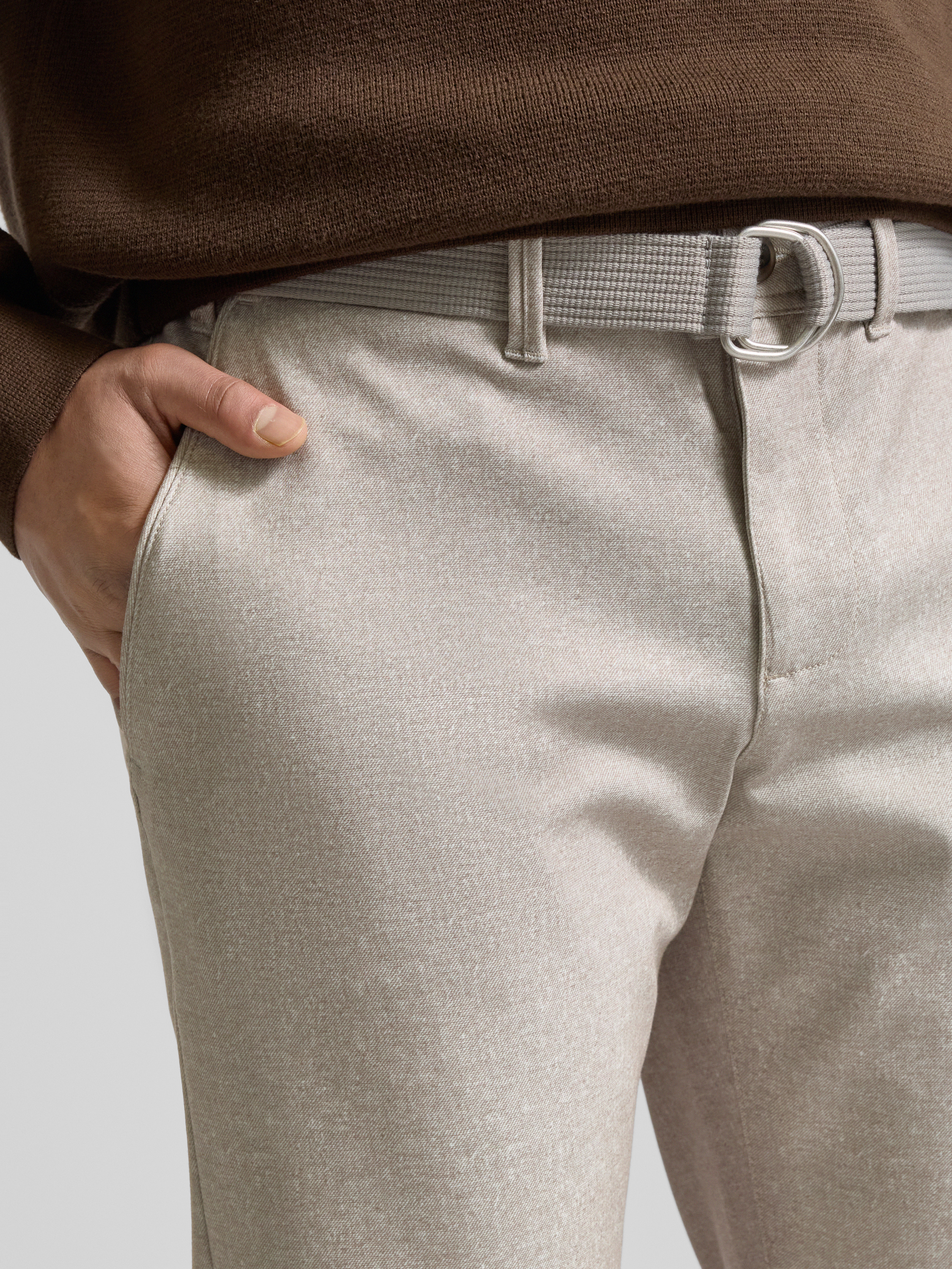 Die Stoffhose von MCNEAL kombiniert eine reguläre Passform mit der angenehmen Haptik reiner Baumwolle. Ein kontrastiver Gürtel mit D-Ring-Verschluss ergänzt den klassischen Look, während praktische Eingrifftaschen Funktionalität bieten. Diese Hose eignet sich ideal für entspannte wie auch formelle Anlässe.