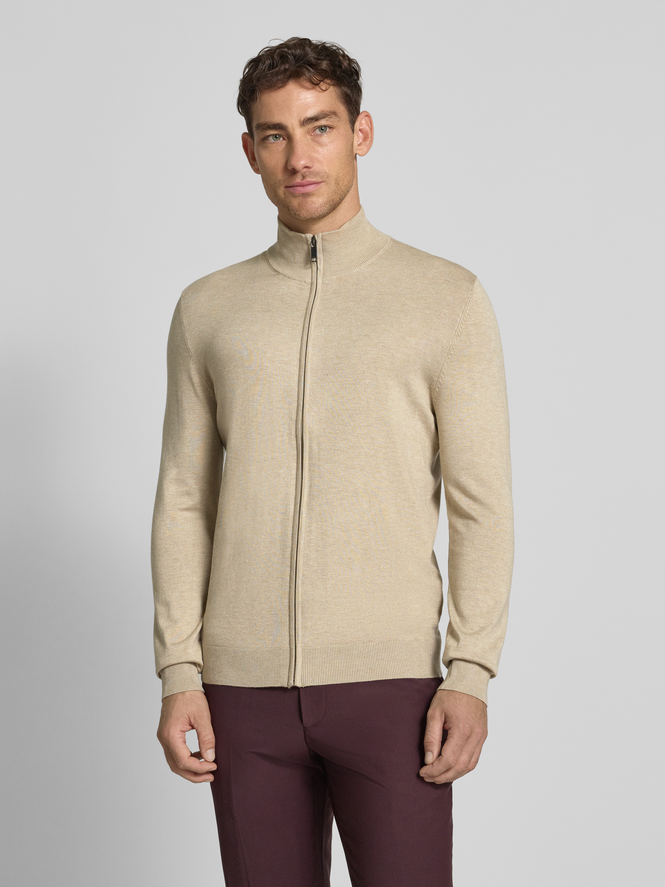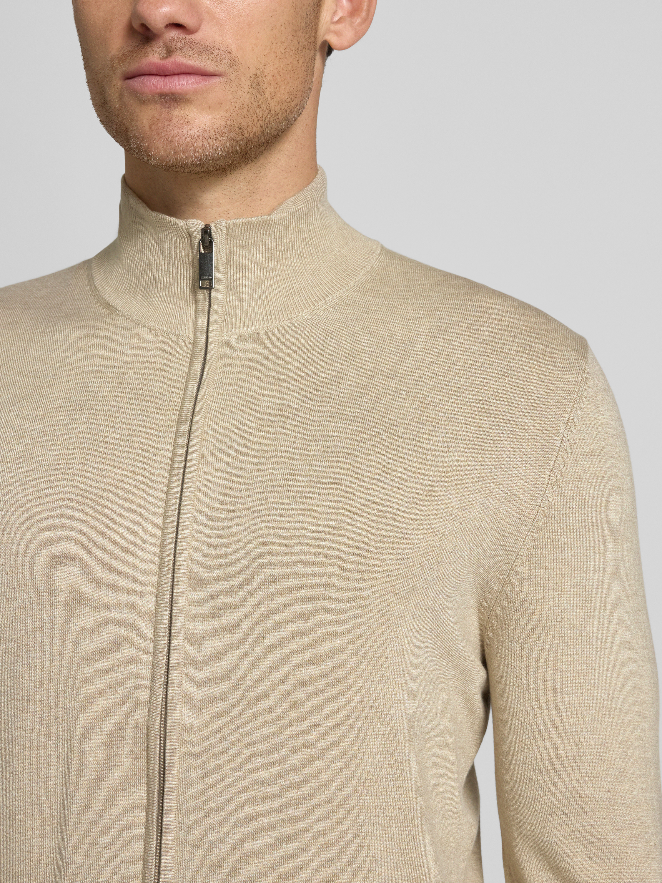 MCNEALStrickjacke aus Viskose-Mix mit Stehkragen in mud melange