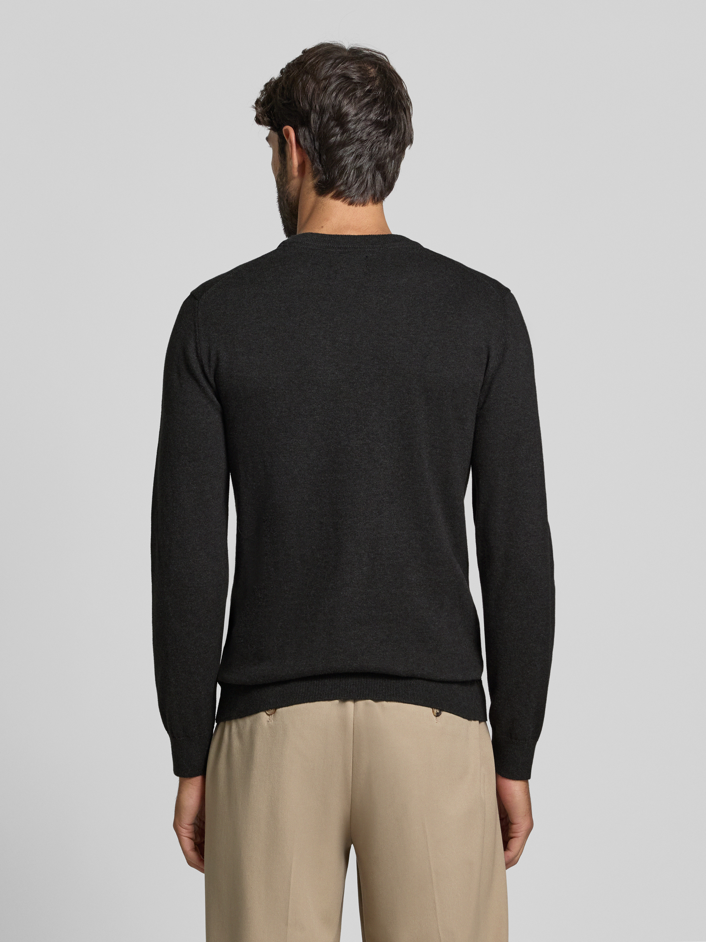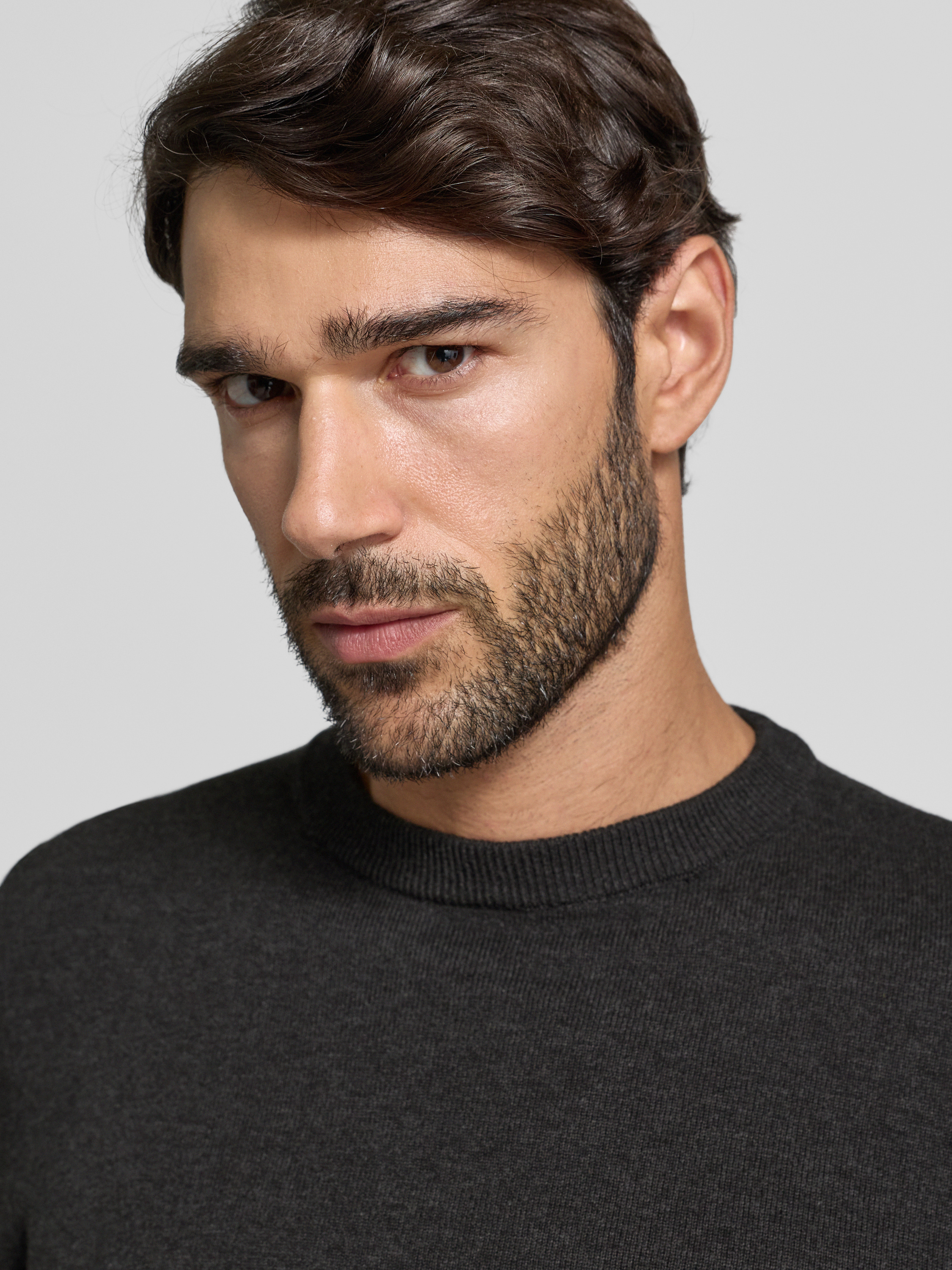 MCNEALStrickpullover aus Baumwoll-Kaschmir-Mix mit Rundhalsausschnitt in dunkelgrau melange