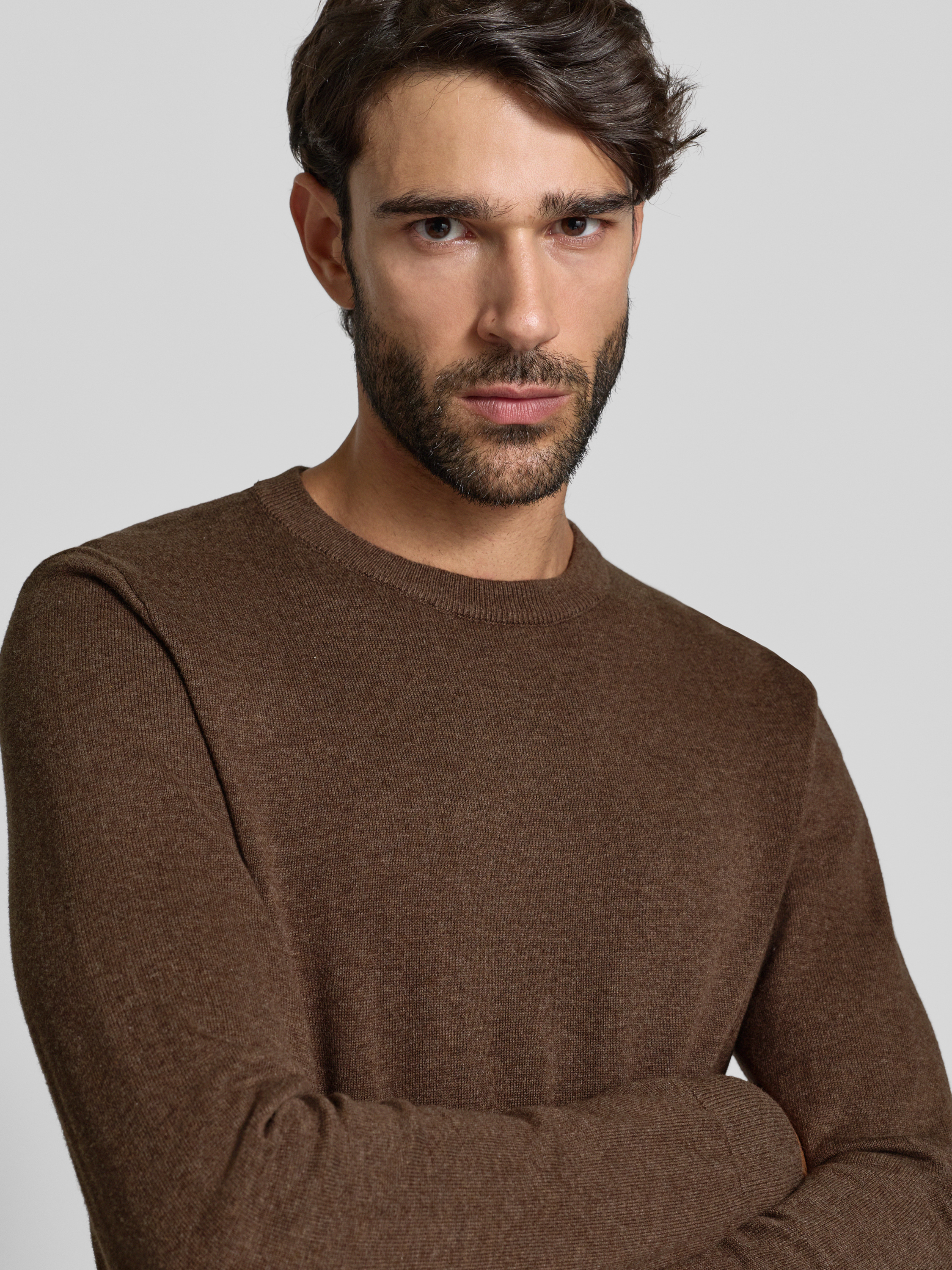 MCNEALStrickpullover aus Baumwoll-Kaschmir-Mix mit Rundhalsausschnitt in hellbraun melange