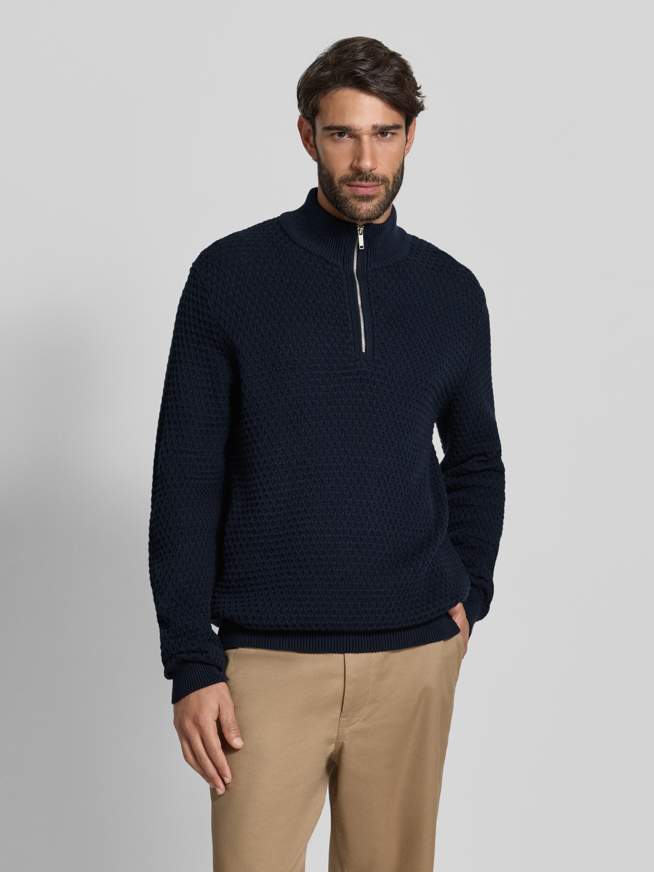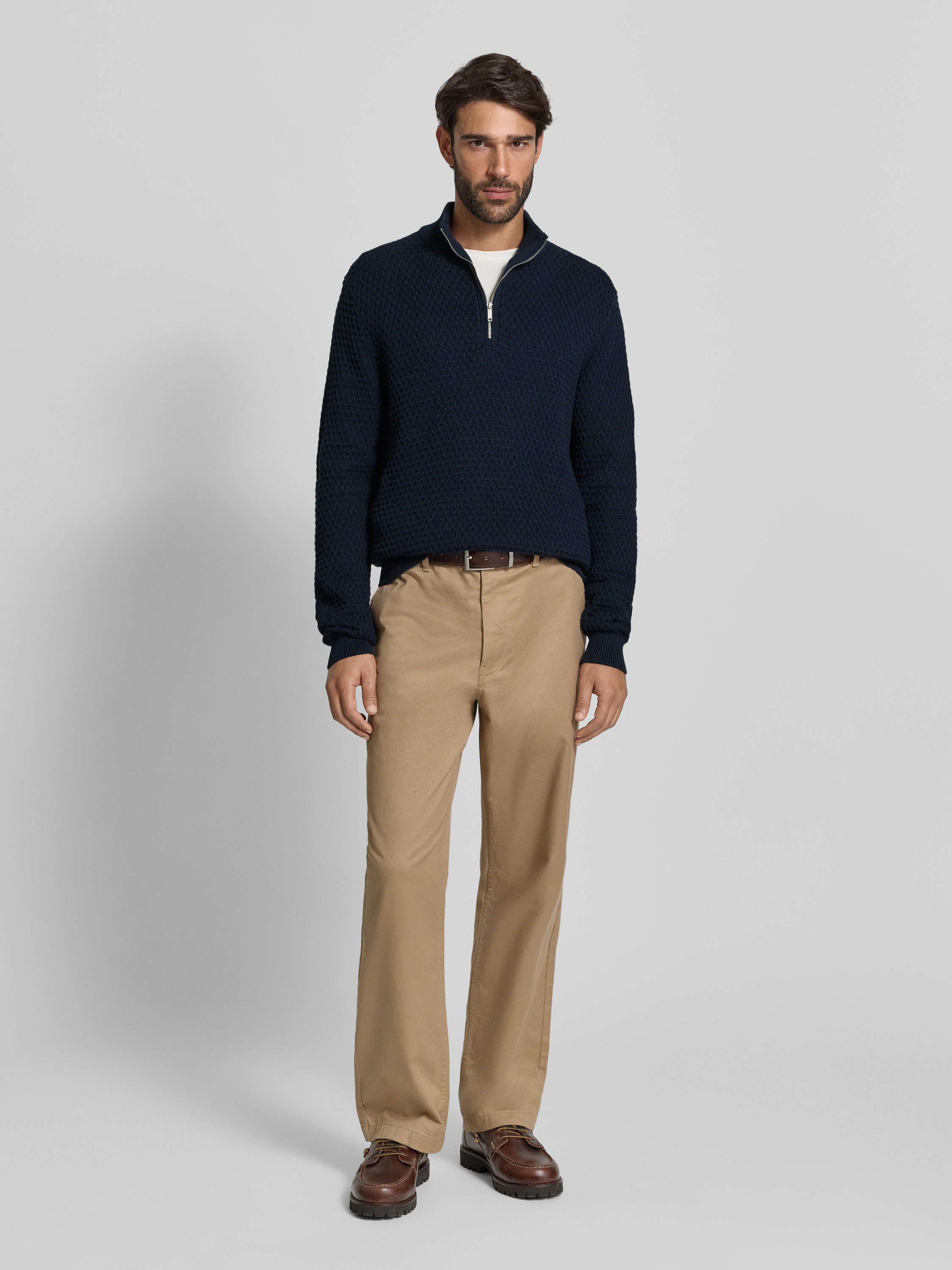 Der Herren Strickpullover von MCNEAL aus reiner Baumwolle schmiegt sich angenehm an und vermittelt ein entspanntes Tragegefühl. Durch den Regular Fit und den Stehkragen entsteht eine legere Silhouette, die vielseitig kombiniert werden kann. Dank gerippter Abschlüsse bleibt der Sitz auch bei Bewegung stets zuverlässig.