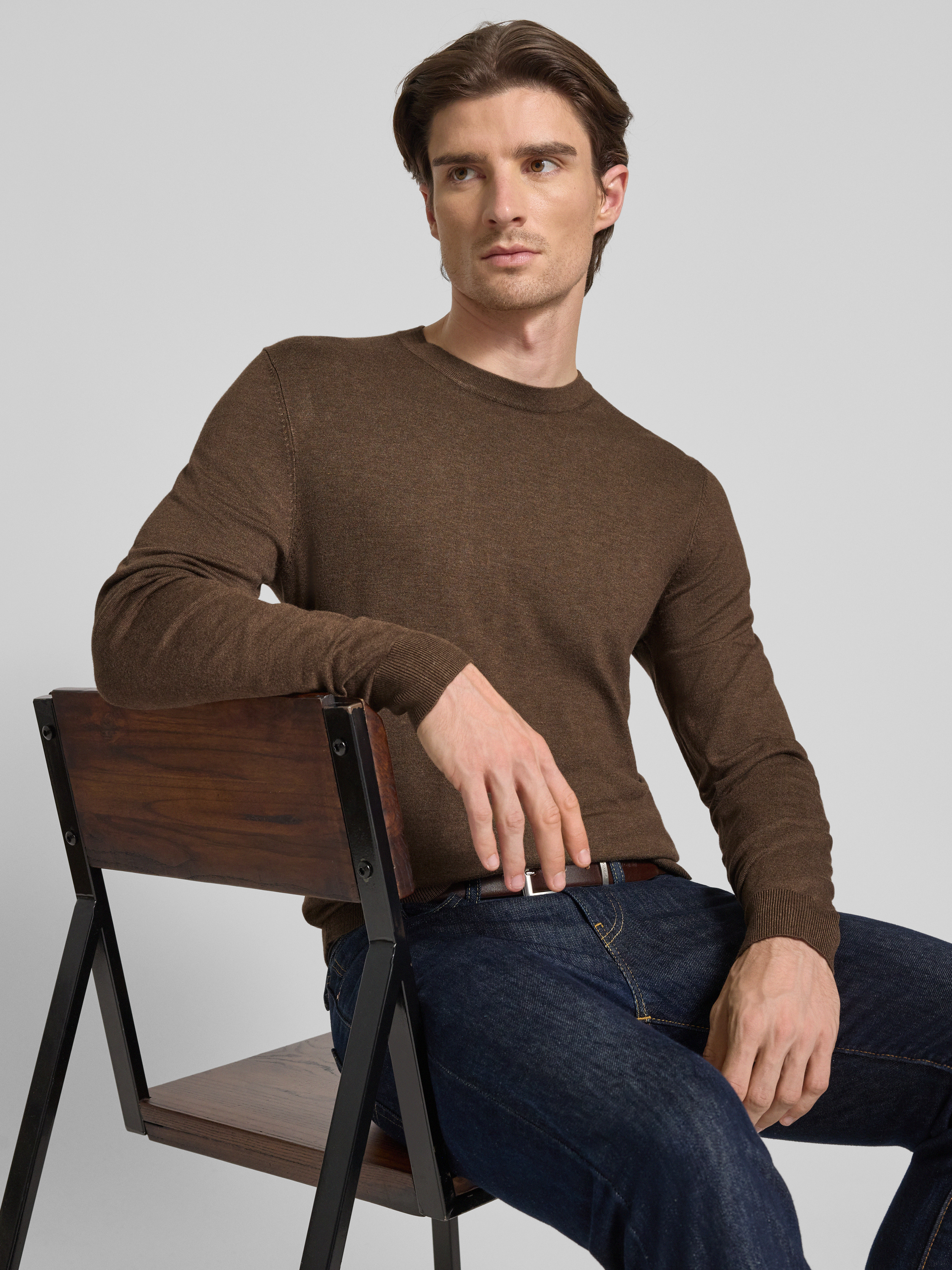 Der Herren Strickpullover von MCNEAL aus Viskose-Mix überzeugt durch seinen angenehmen Regular-Fit, der viel Bewegungsfreiheit im Alltag lässt. Gerippte Abschlüsse und der klassische Rundhalsausschnitt unterstreichen den zeitlosen Stil, während die hochwertige Verarbeitung für ein angenehmes Tragegefühl sorgt. Dank der pflegeleichten Materialmischung eignet sich das Modell besonders gut für unterschiedliche Anlässe.
