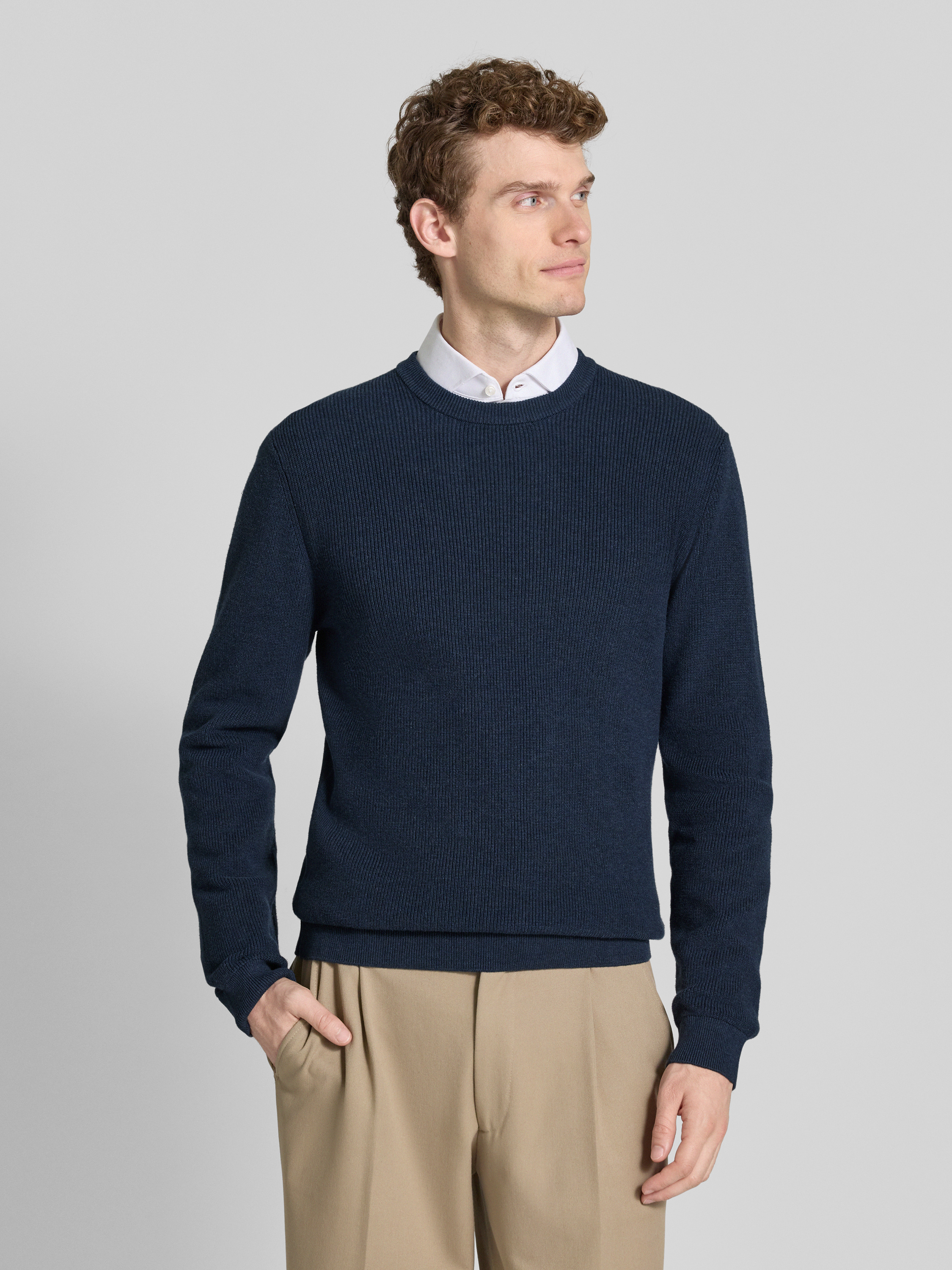 • MCNEAL Strickpullover mit gerippten Abschlüssen Marine Melange
