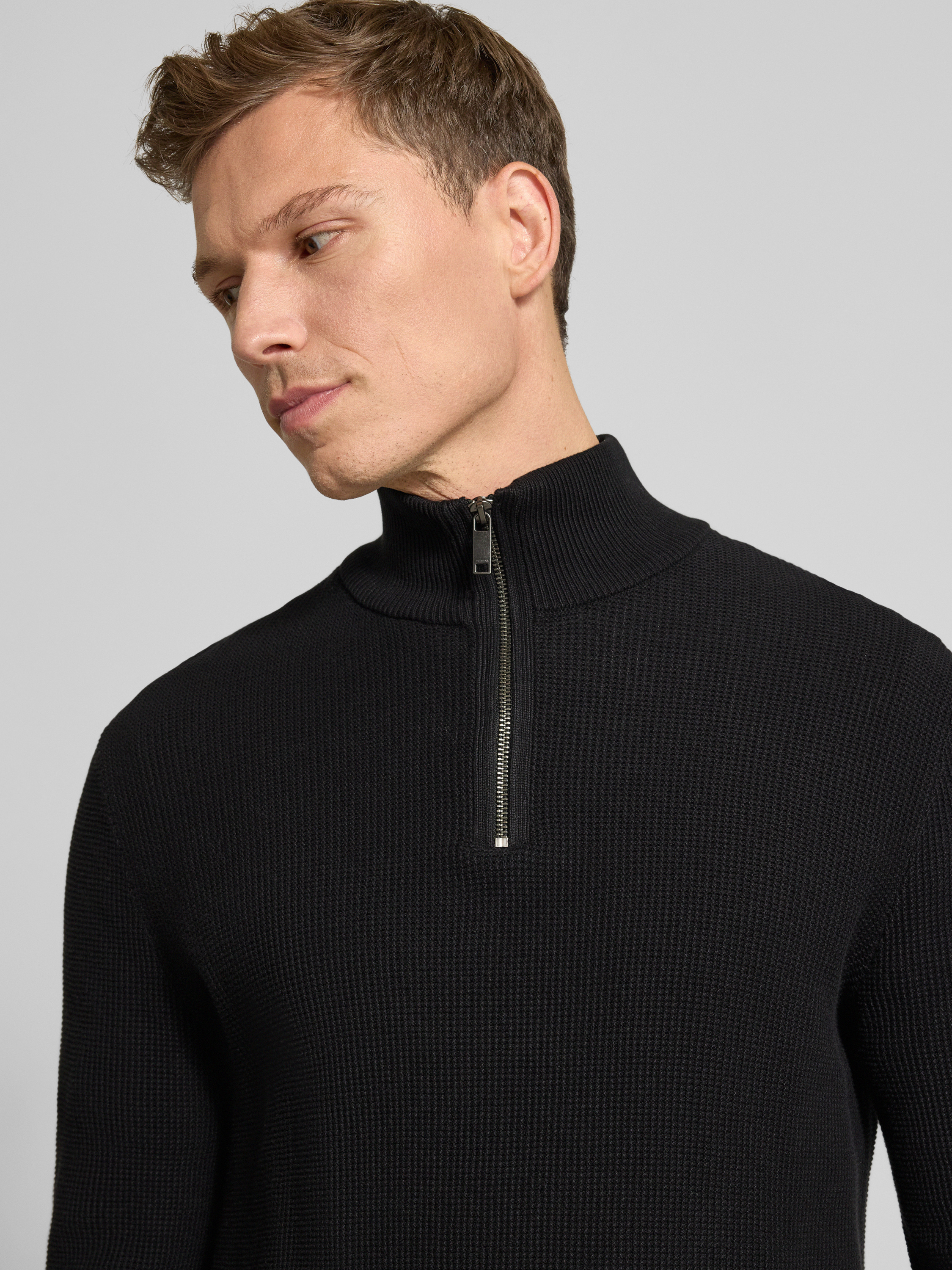 Der Herren Strickpullover von MCNEAL zeigt sich in einem schmalen Schnitt, der eine moderne Silhouette unterstützt und Bewegungsfreiheit lässt. Reine Baumwolle sorgt für ein angenehmes Tragegefühl im Alltag. Der Stehkragen verleiht dem Pullover einen dezenten, gepflegten Akzent.