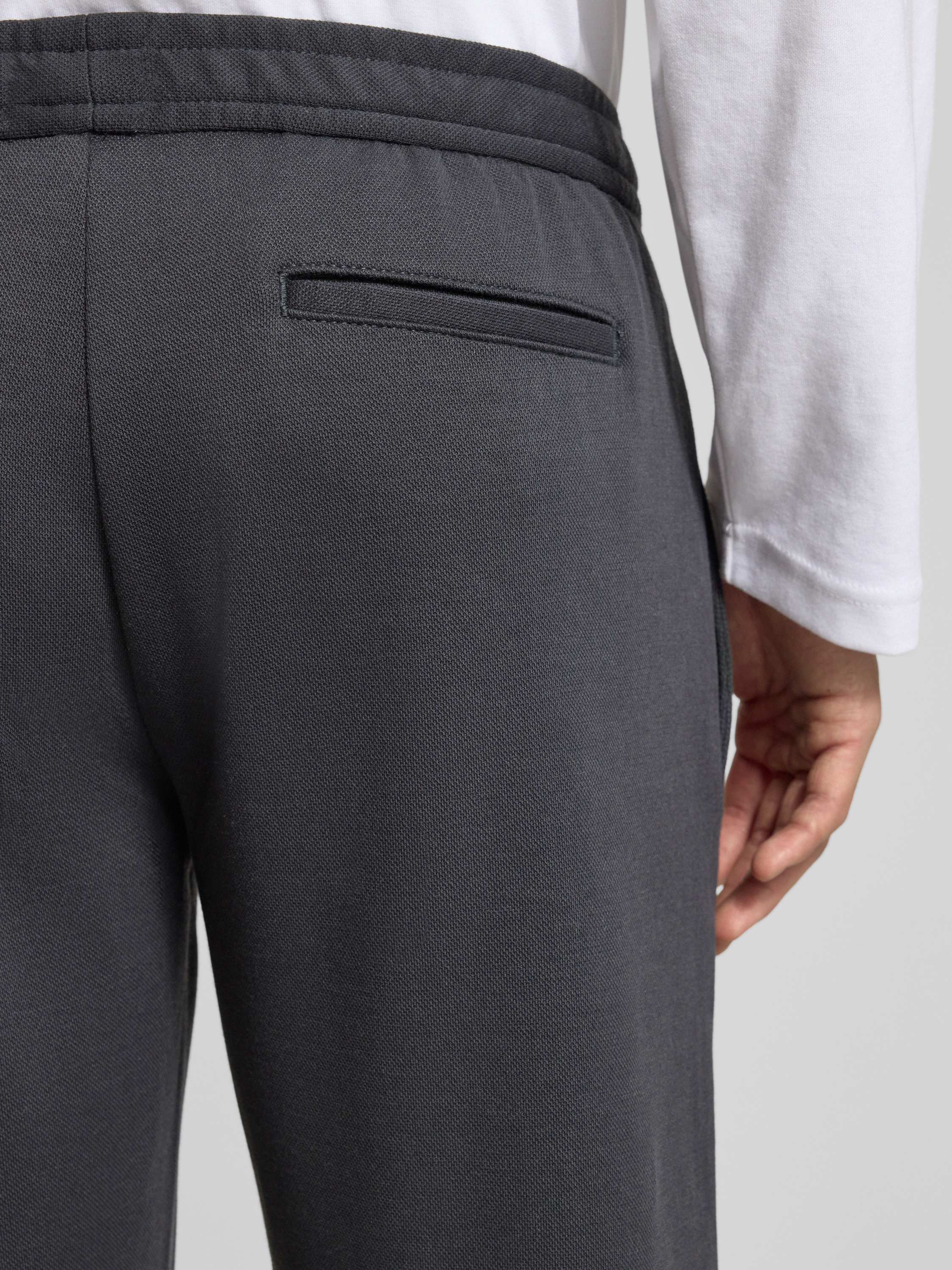 Die Herren Sweatpants von MCNEAL kombiniert einen Material-Mix mit Baumwoll-Anteil und lockeren Schnitt, wodurch sie angenehm auf der Haut liegt und Bewegungsfreiheit ermöglicht. Durch den elastischen Bund und Bundfalten passt sie sich unterschiedlichen Bedürfnissen an. Französische Eingrifftaschen und eine Gesäßtasche runden die Hose alltagstauglich ab.