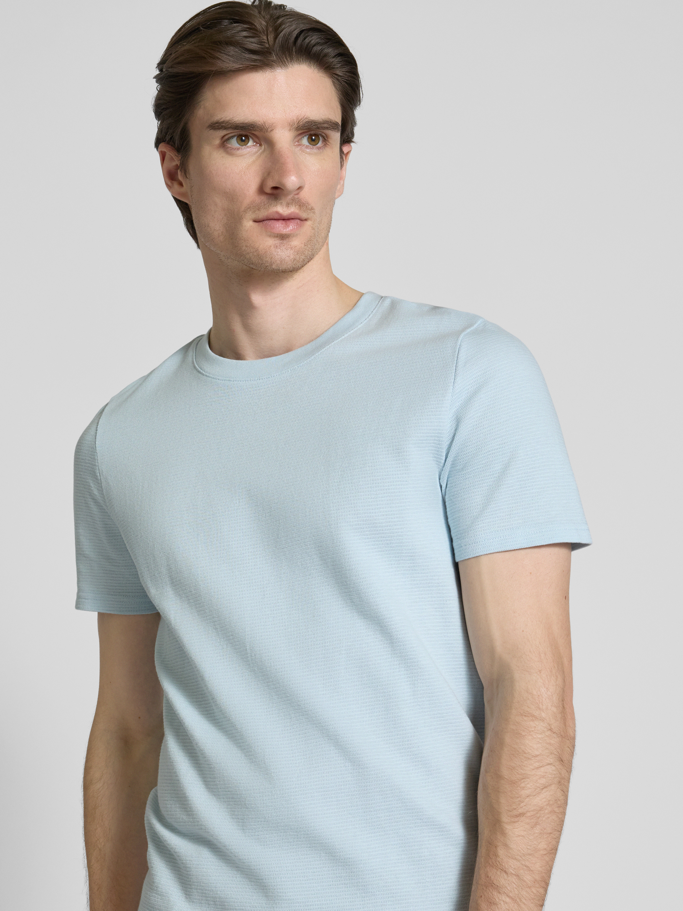 MCNEALT-Shirt mit geripptem Rundhalsausschnitt in hellblau