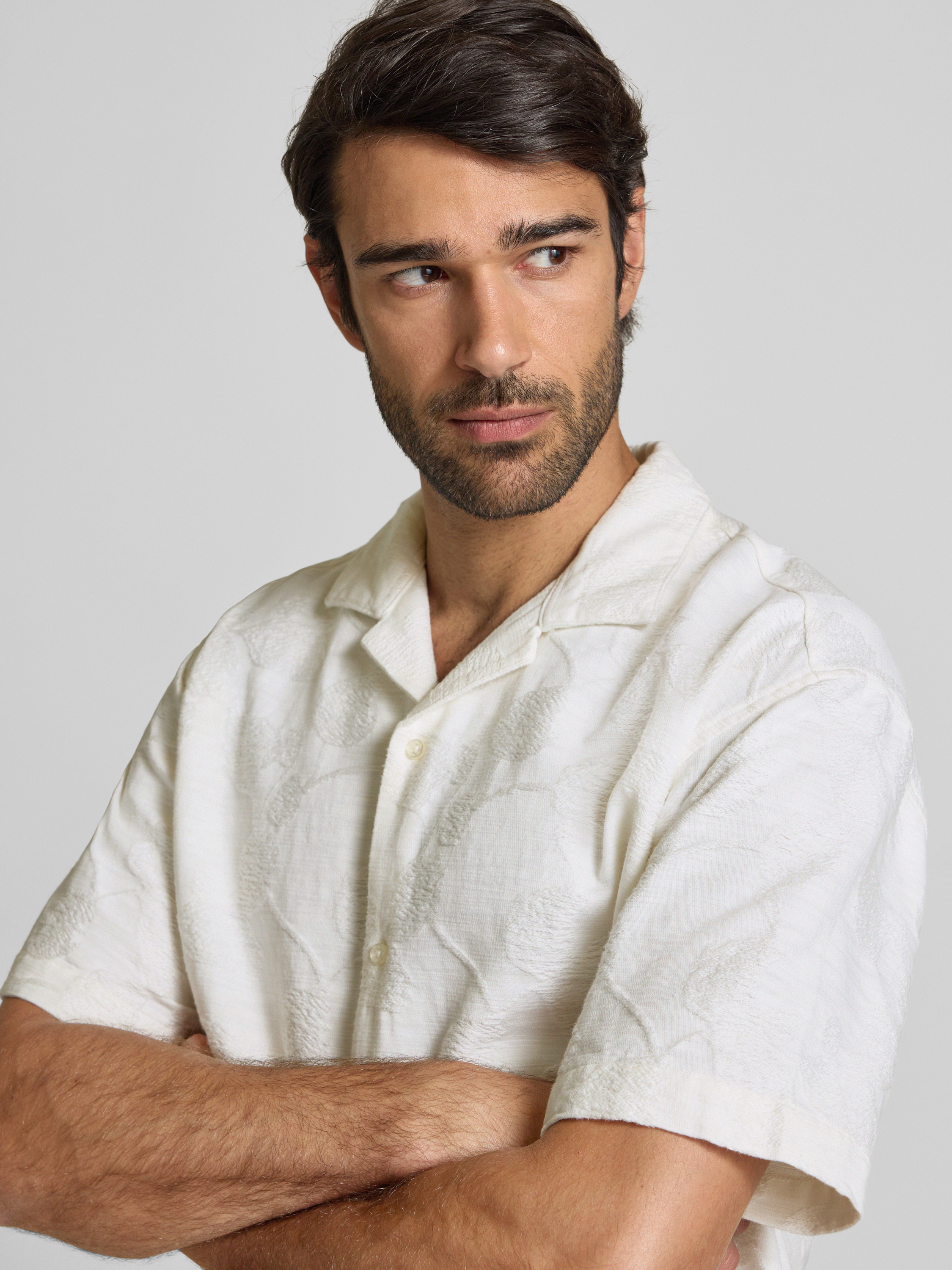 MCNEALTailored Fit Freizeithemd aus Baumwoll-Mix mit Leinen-Anteil in offwhite
