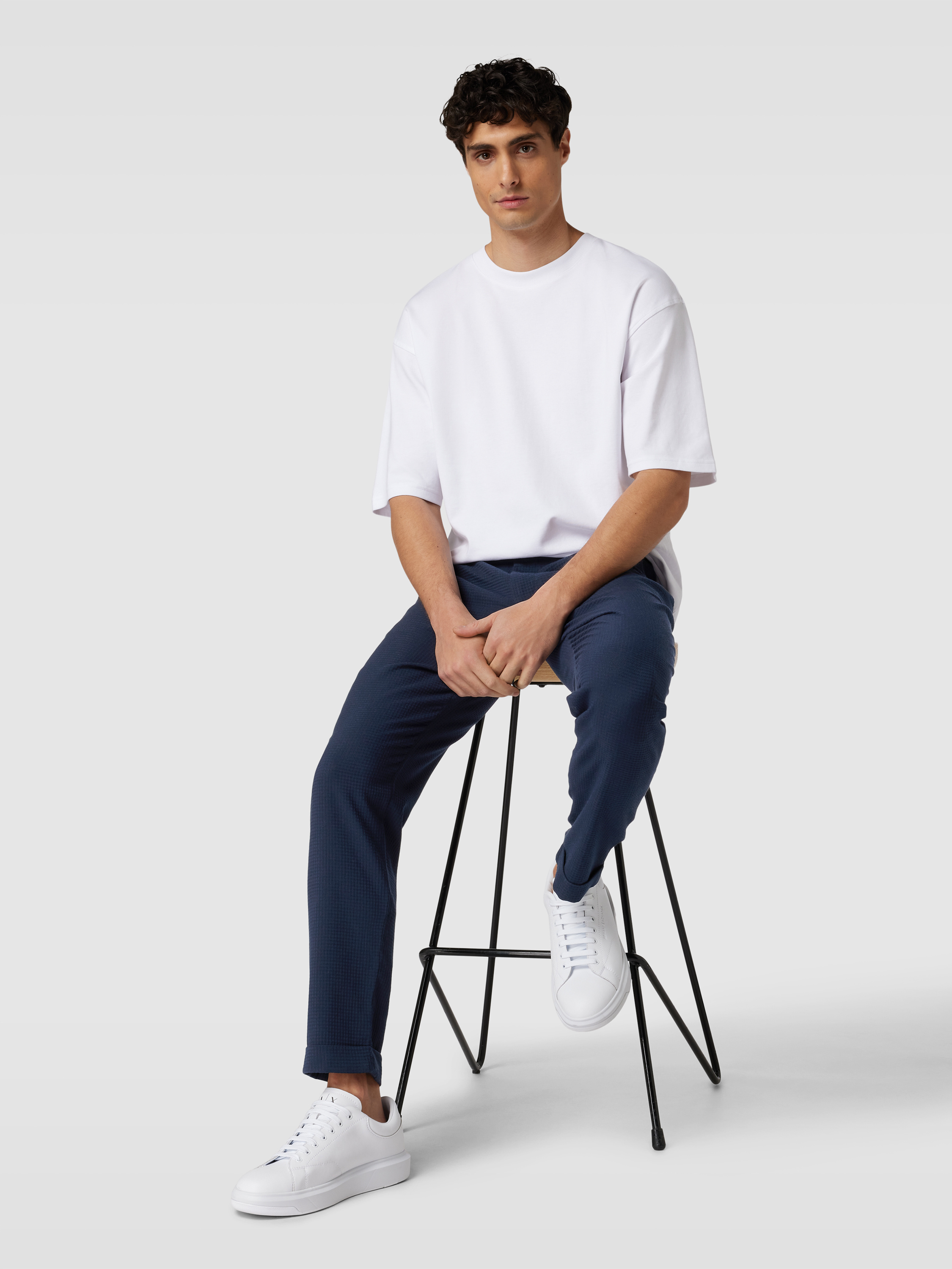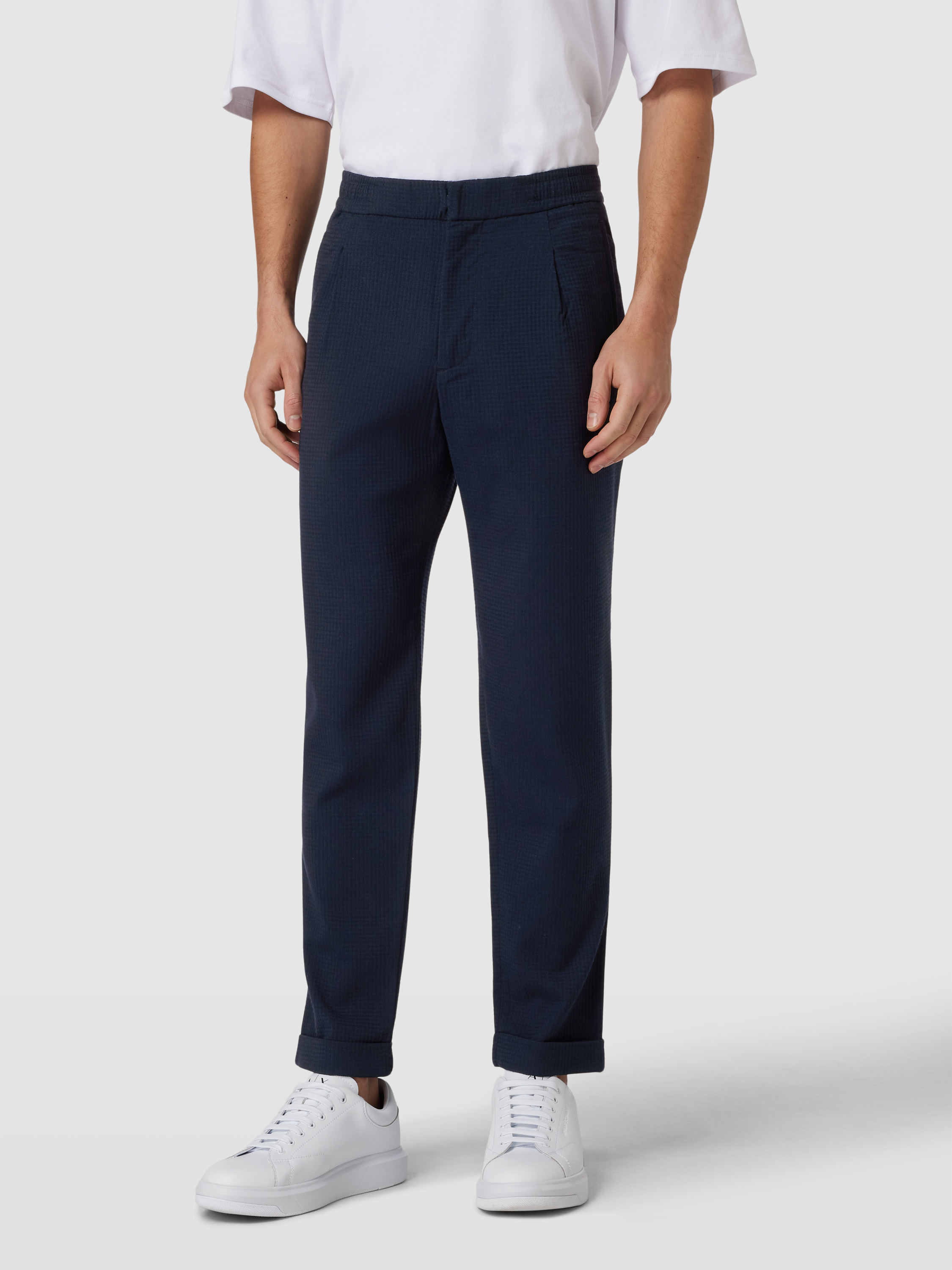 Tapered Fit Stoffhose mit Strukturmuster in marine