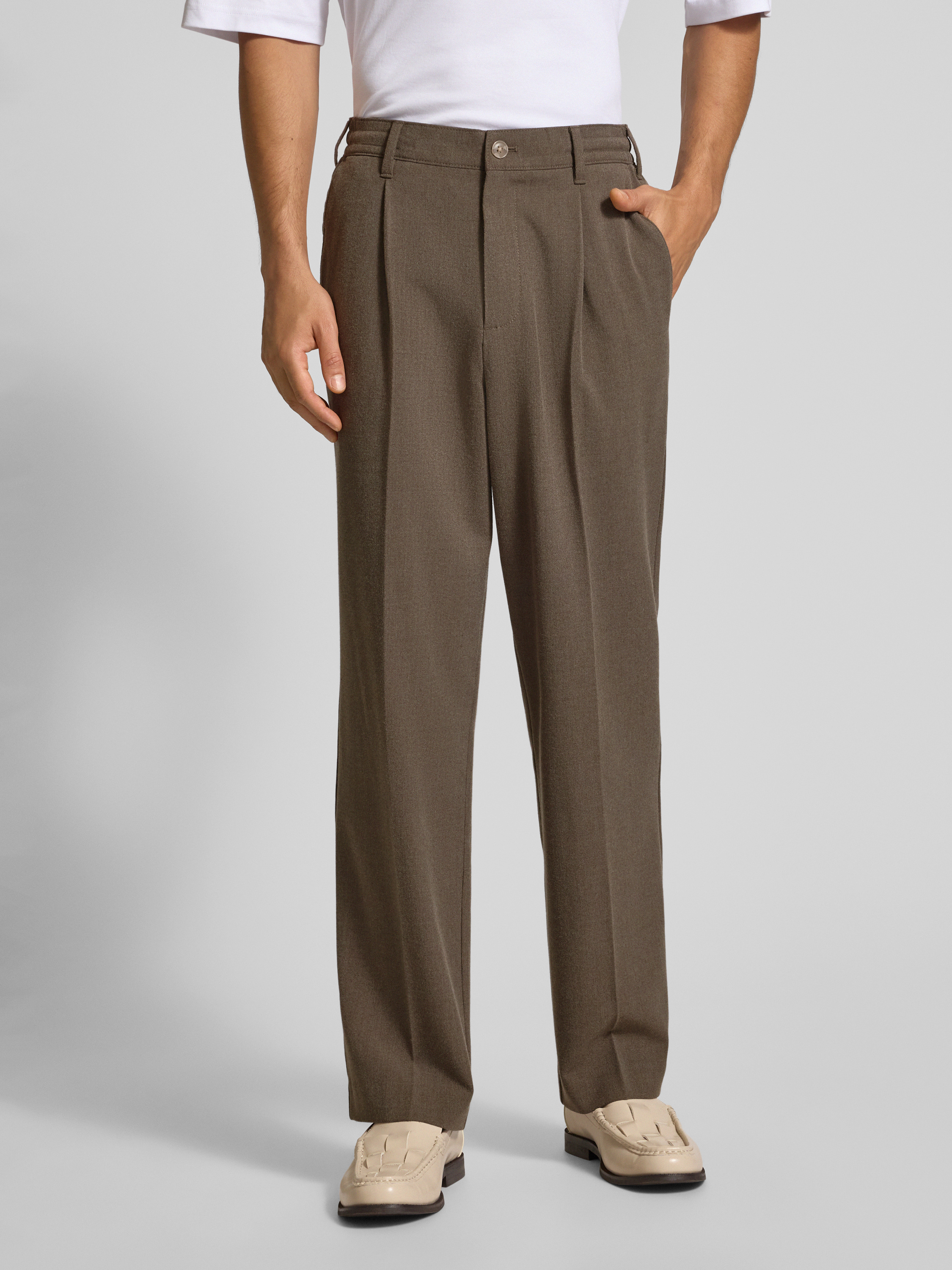 MCNEALWide Fit Stoffhose mit Bügelfalten in mittelbraun mel