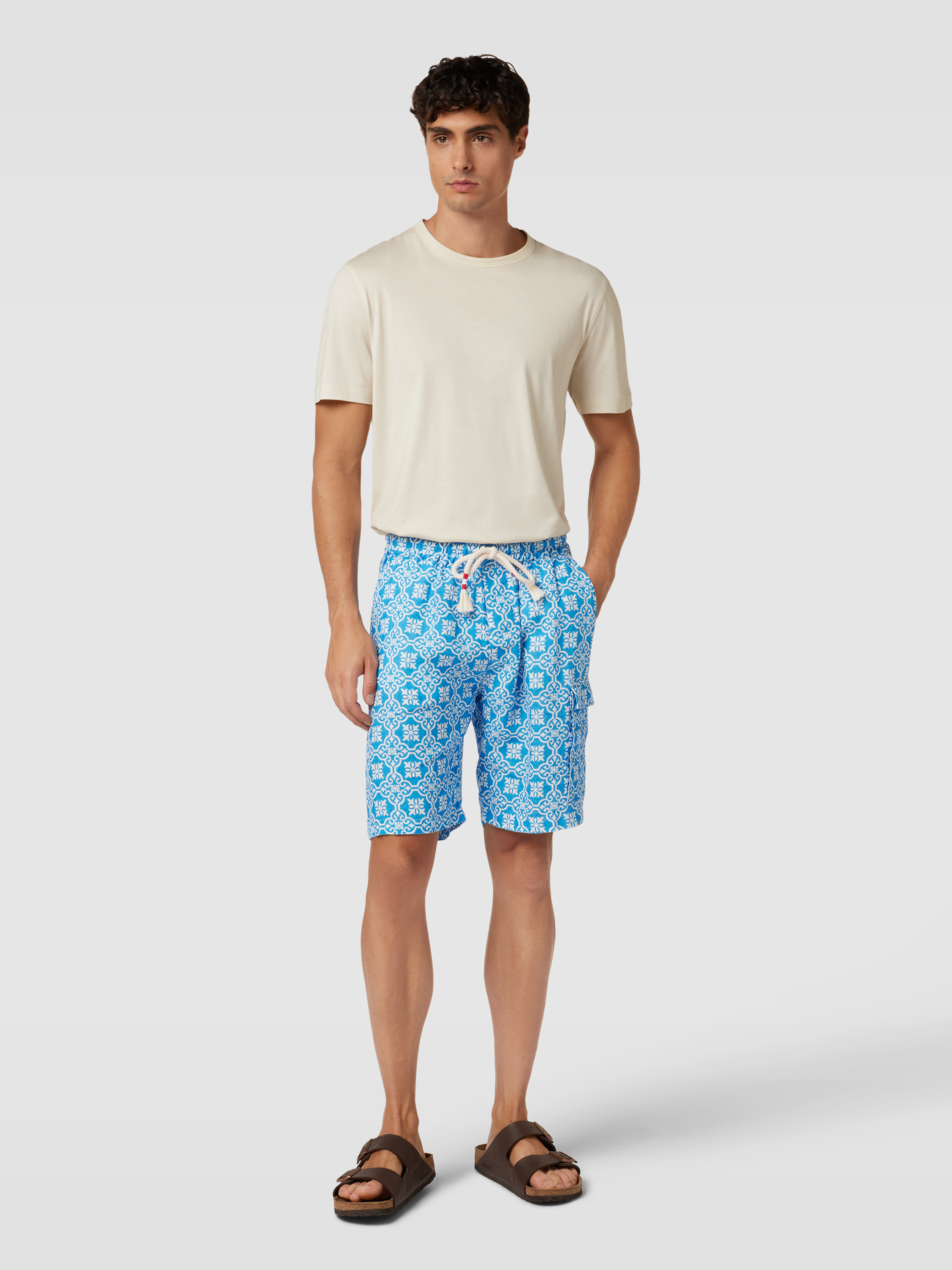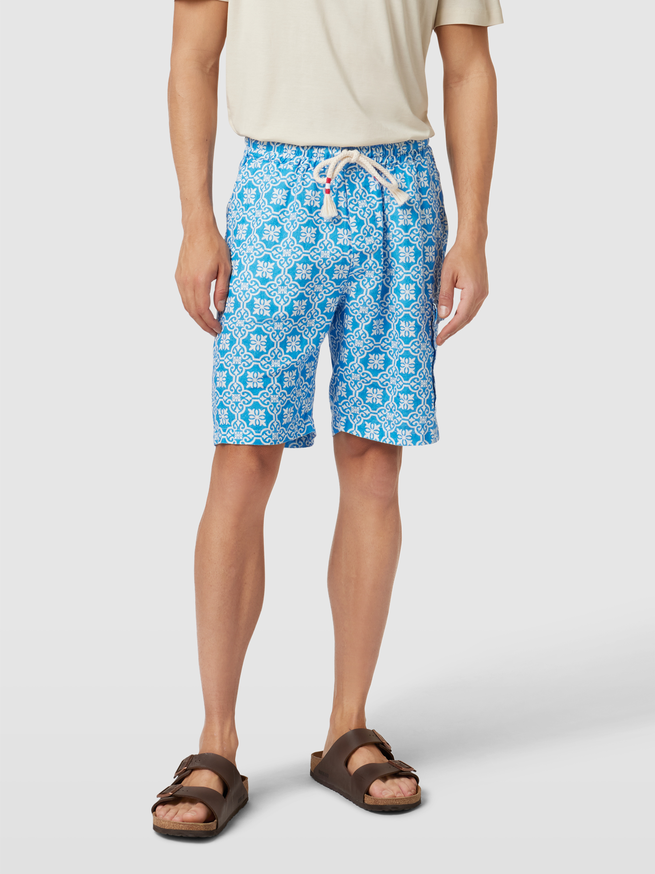Die Bermudas 'MARSEILLE' von MC2 Saint Barth vereinen die Leichtigkeit von reinem Leinen mit einer geraden Passform, die Komfort und Stil bietet. Dank des elastischen Bunds mit Tunnelzug passen sie sich flexibel an. Praktische Taschen runden das Design funktional ab.