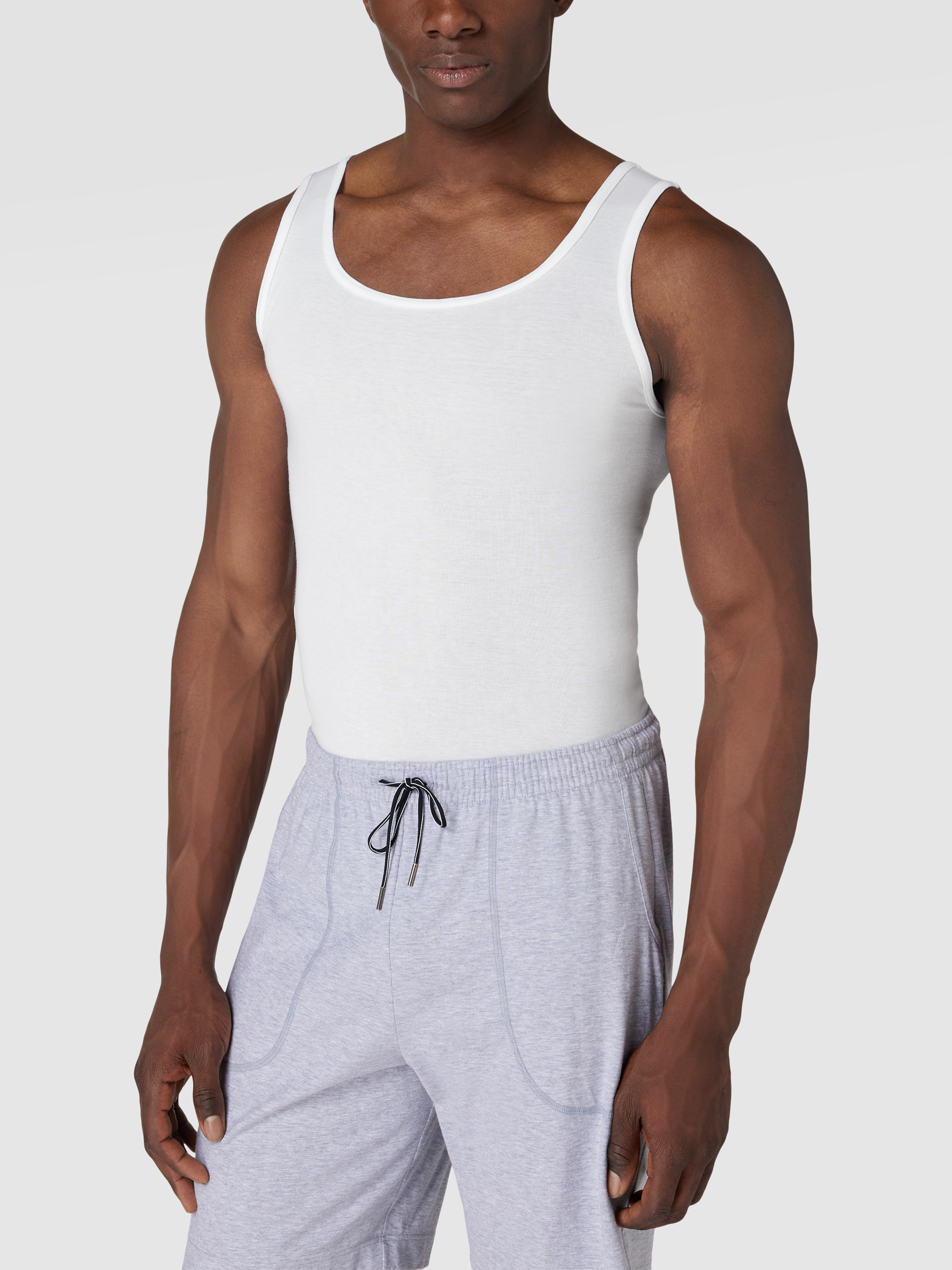 Das Herren Tanktop von Mey, gefertigt aus reiner Baumwolle, kombiniert angenehmen Tragekomfort mit einem schmalen Schnitt. Das unifarbene Design macht es vielseitig einsetzbar, während der gerippte Rundhalsausschnitt und die gerippten Ärmelabschlüsse für eine dezente Struktur sorgen. Ideal für entspannte und sportliche Aktivitäten.