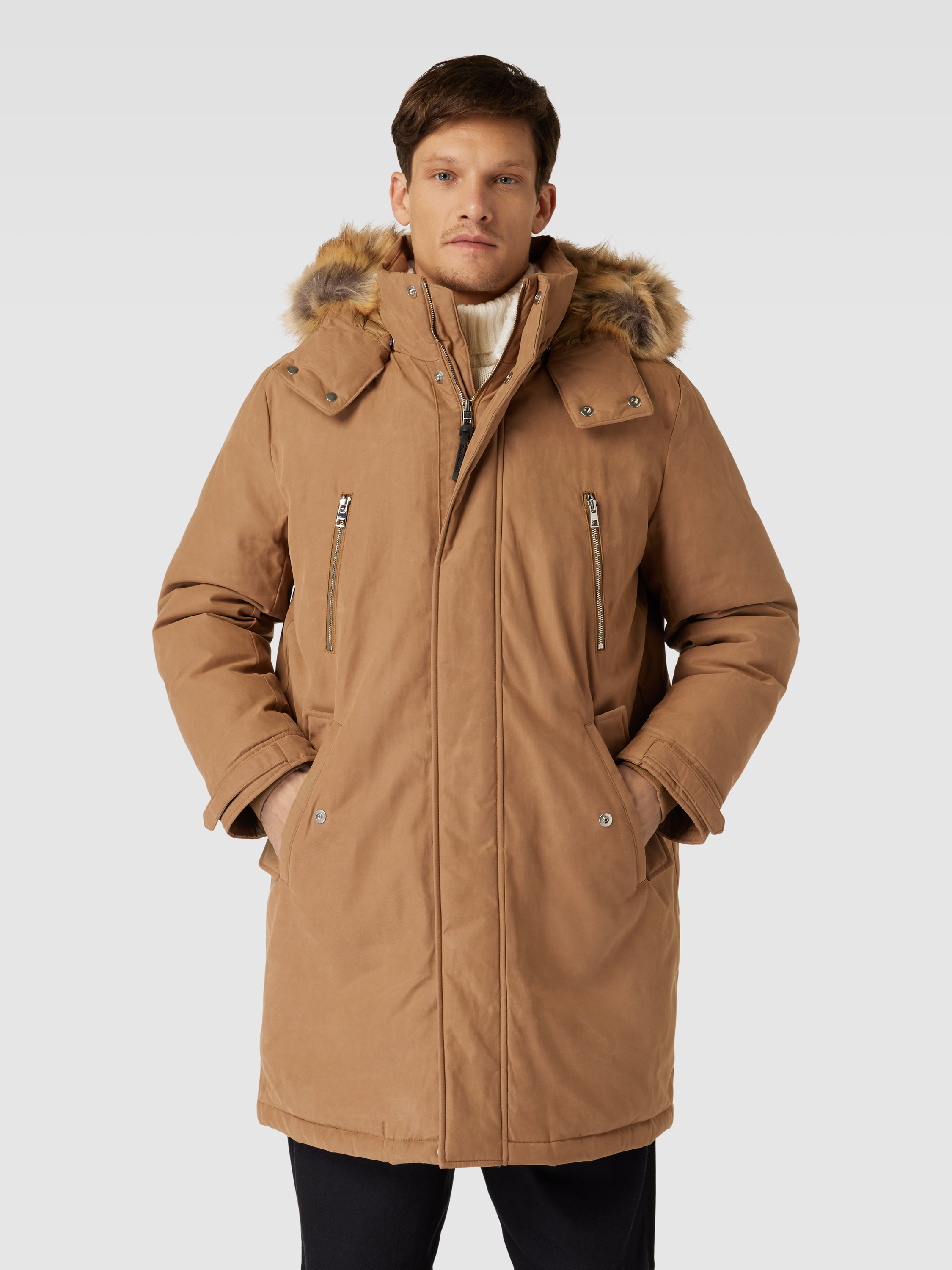 Der Herren-Parka von Michael Kors beeindruckt durch seinen geraden Schnitt und das unifarbene Design. Der Baumwoll-Mix sorgt für angenehmen Tragekomfort, während die Kapuze mit Kunstfell an kühleren Tagen wärmt. Praktische Details wie Brust- und Pattentaschen bieten ausreichend Stauraum.