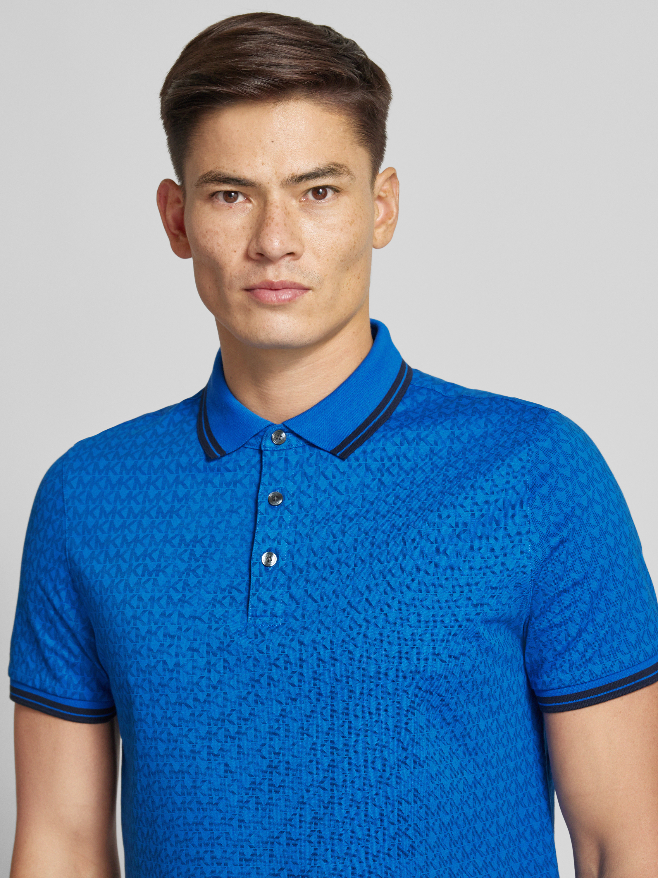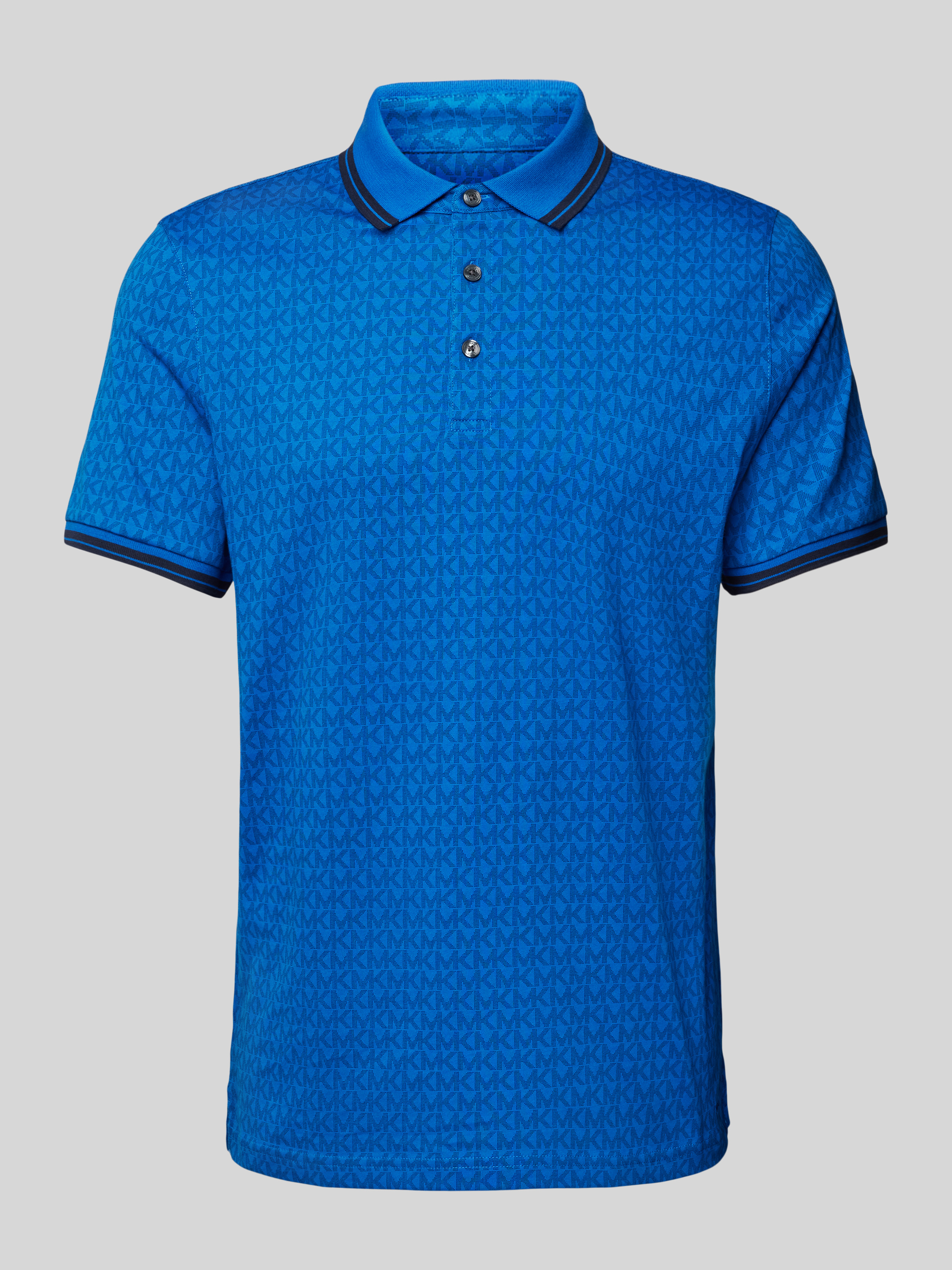 Michael KorsRegular Fit Poloshirt mit Allover-Label-Muster Modell 'GREENWICH' in blau