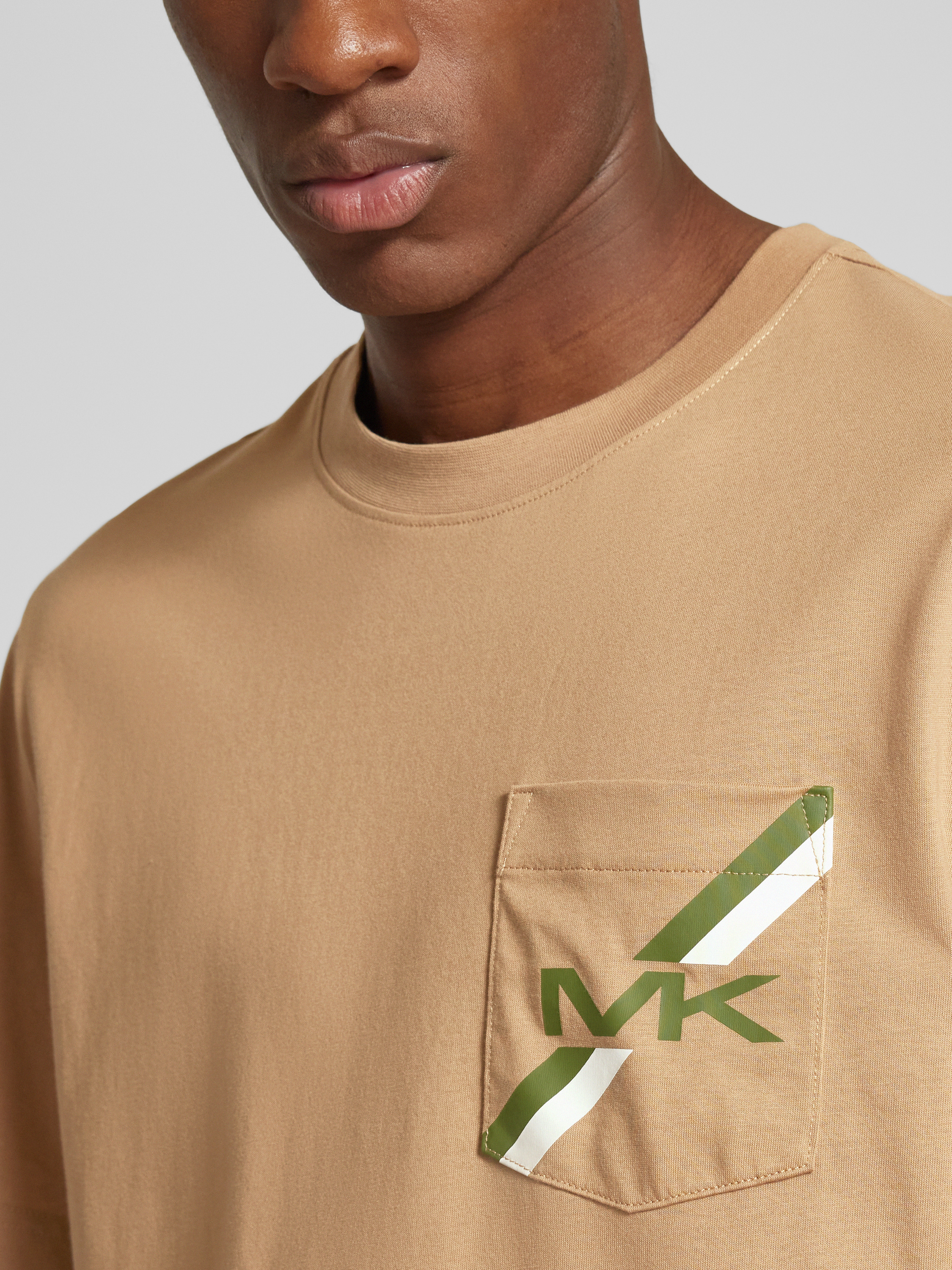 Das Herren T-Shirt von Michael Kors zeichnet sich durch seinen geraden Schnitt und den klassischen Rundhalsausschnitt aus, was es vielseitig einsetzbar macht. Die reine Baumwolle sorgt für ein angenehmes Tragegefühl, während die Brusttasche und der dezente Label-Print dezente Akzente setzen.