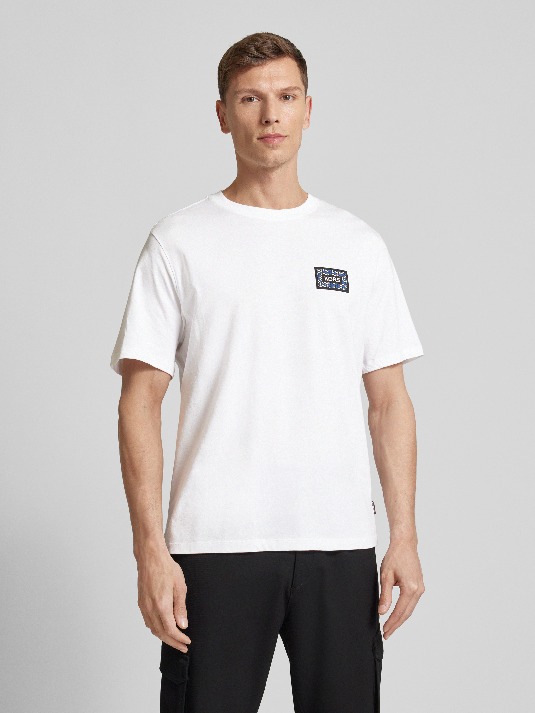Das Herren T-Shirt von Michael Kors, gefertigt aus reiner Baumwolle, kombiniert Komfort mit einem lässigen Regular Fit. Die subtilen Label-Details verleihen dem klassischen Rundhalsausschnitt eine besondere Note. Ideal für alle, die auf der Suche nach einem vielseitigen, angenehm zu tragenden Kleidungsstück sind.