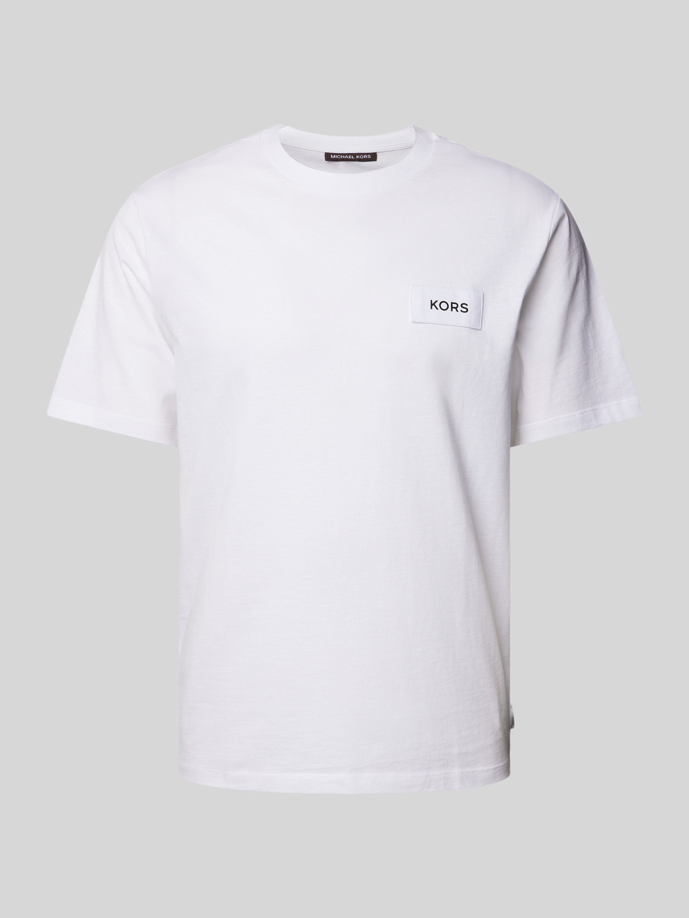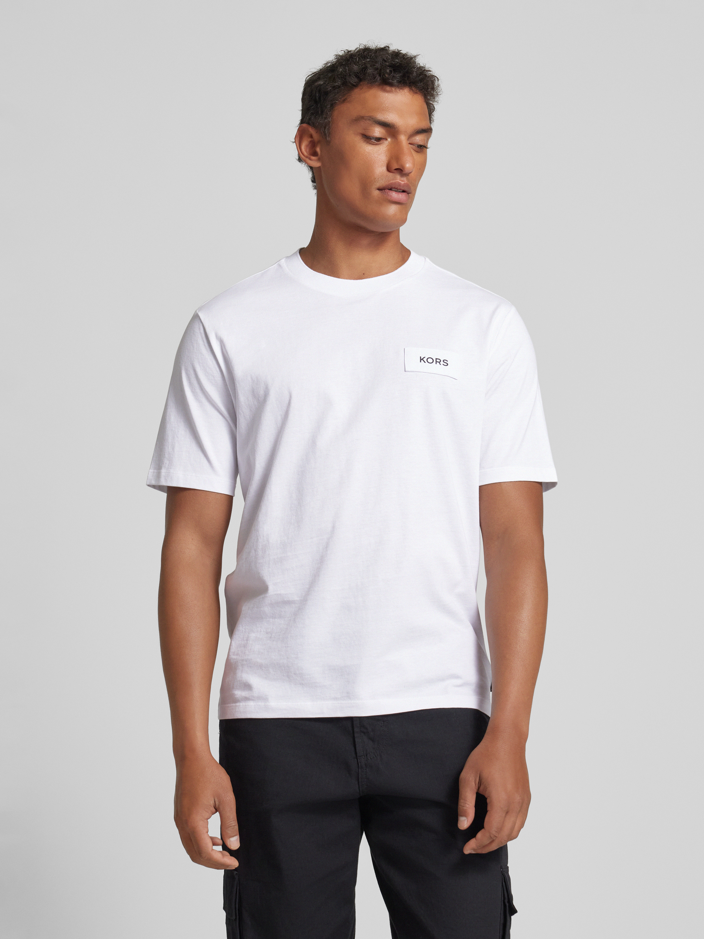 Das Herren T-Shirt von MICHAEL Michael Kors aus reiner Baumwolle bietet einen geraden Schnitt und ein unifarbenes Design, das vielseitig kombiniert werden kann. Der Stehkragen verleiht dem Look eine dezente Struktur, während der Label-Patch einen subtilen Markenakzent setzt. Ein komfortables Kleidungsstück für jede Gelegenheit.
