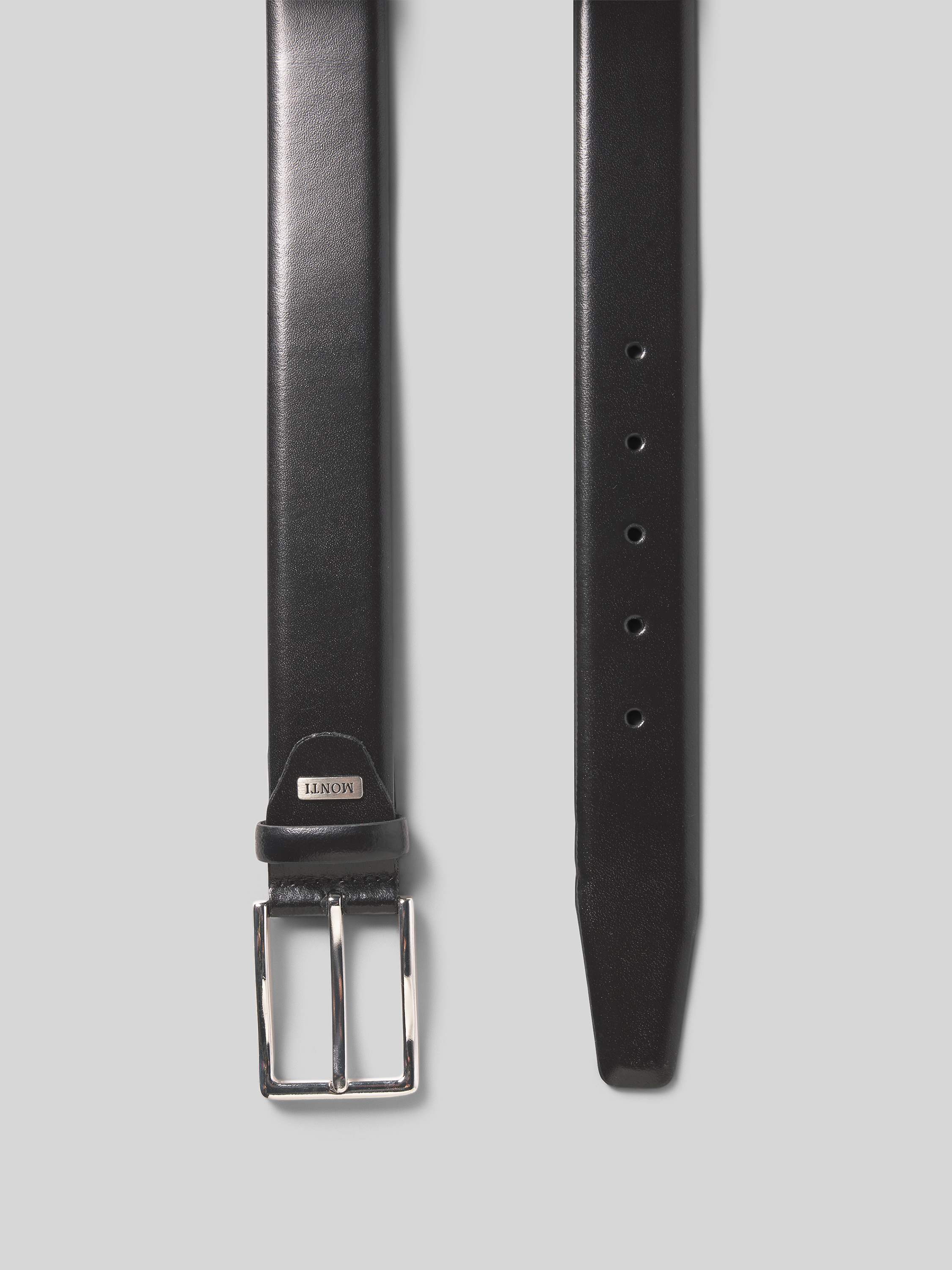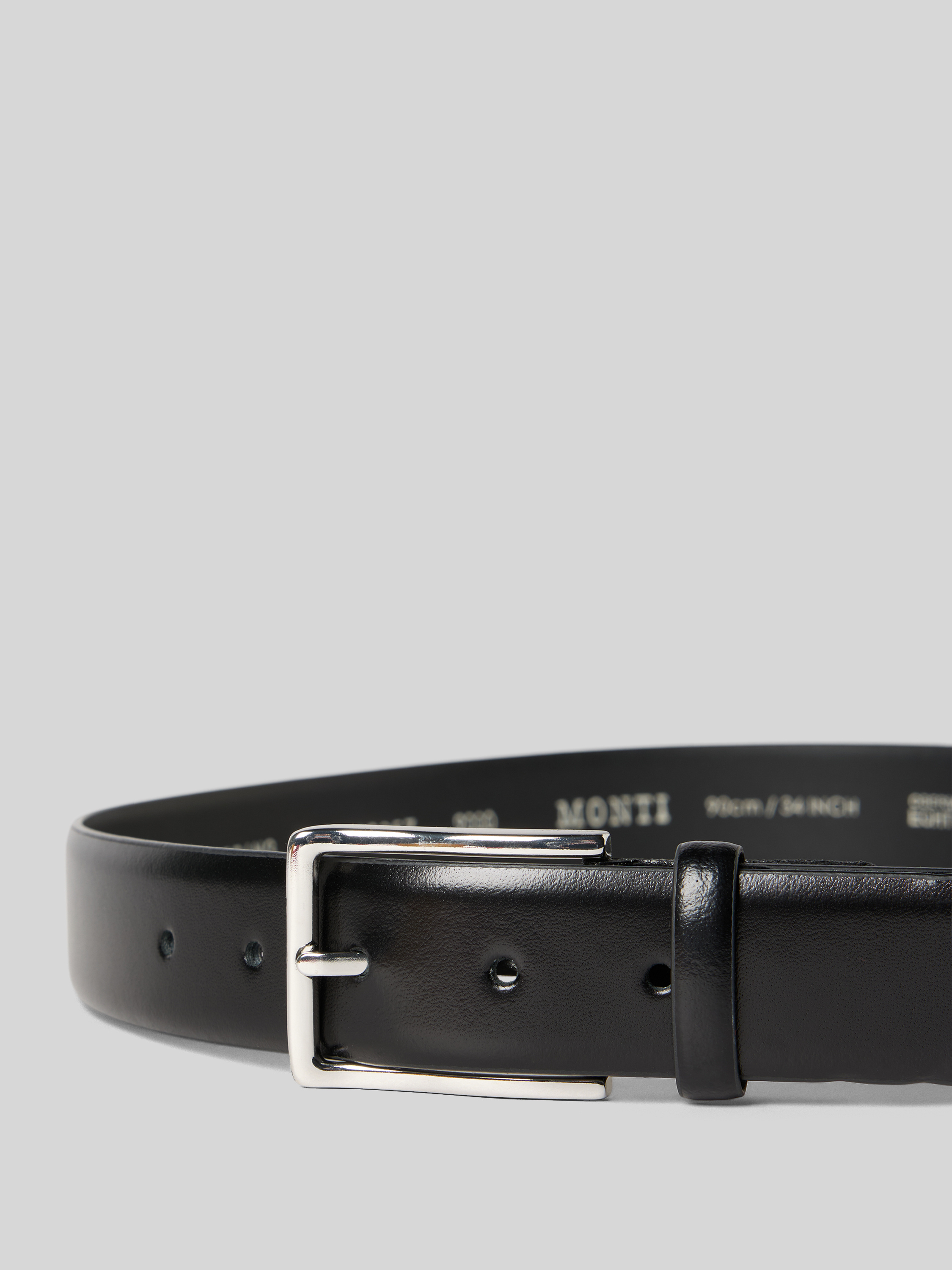Der Herrengürtel von Monti präsentiert sich in klassischer Passform und zeigt sich mit einem dezenten Label-Detail. Gefertigt aus glattem Leder, fühlt er sich angenehm an und liegt stabil in der Hand. Durch die schlichte Gestaltung lässt sich der Gürtel vielseitig kombinieren.